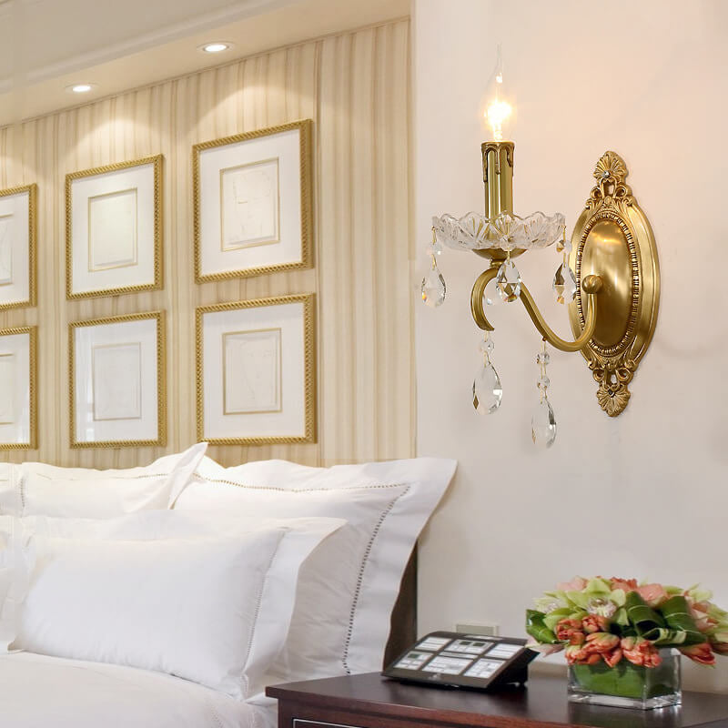 French Vintage Brass Crystal Candle Shade 1/2 Light Wall Sconce