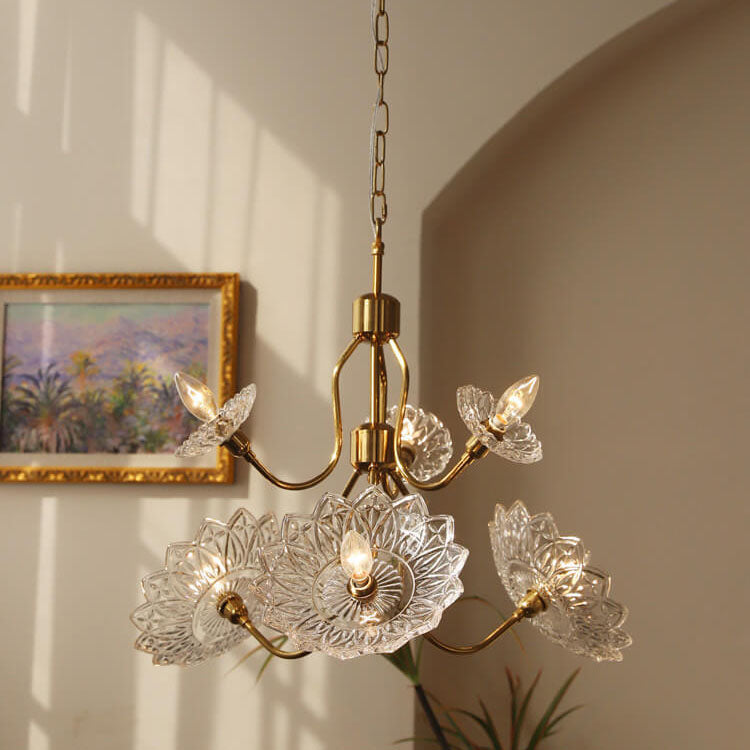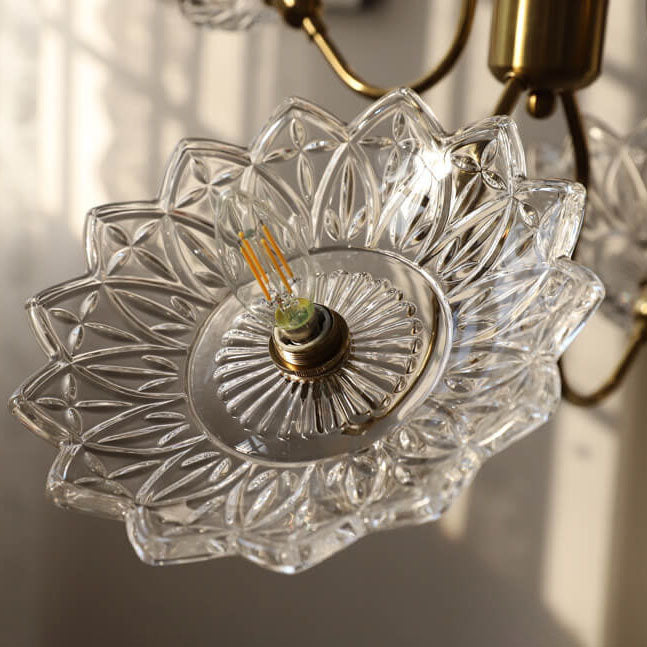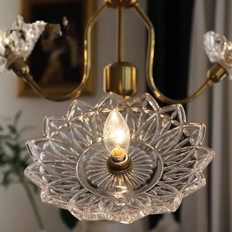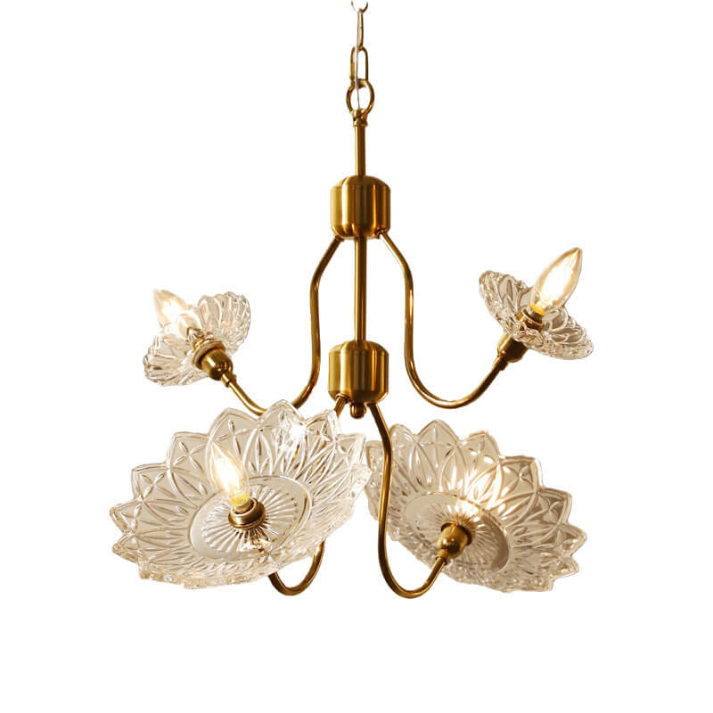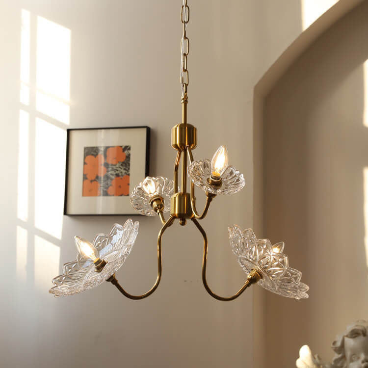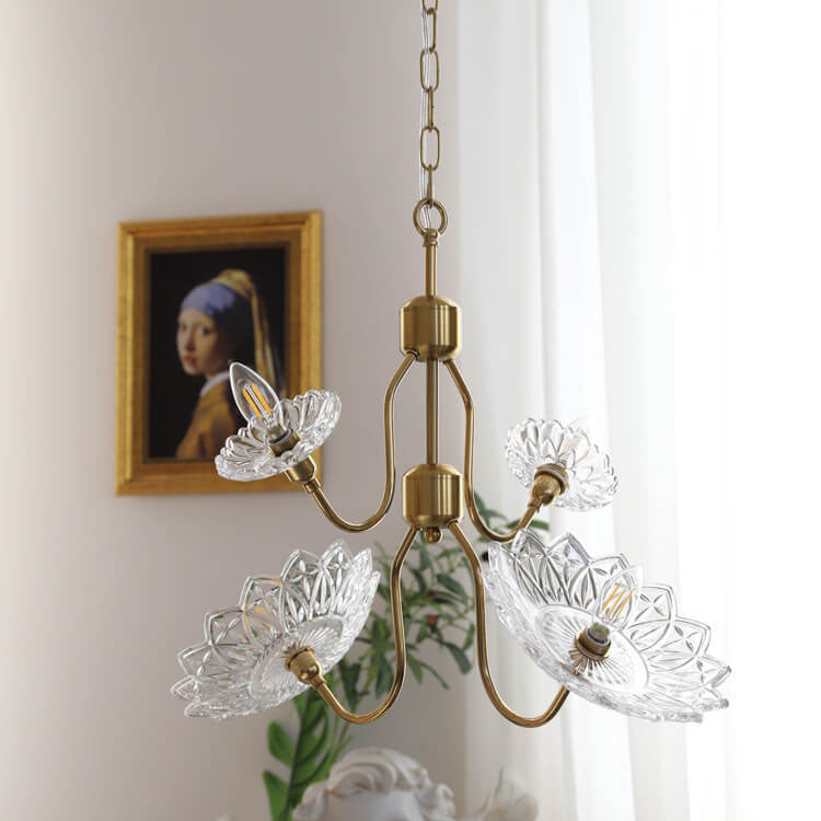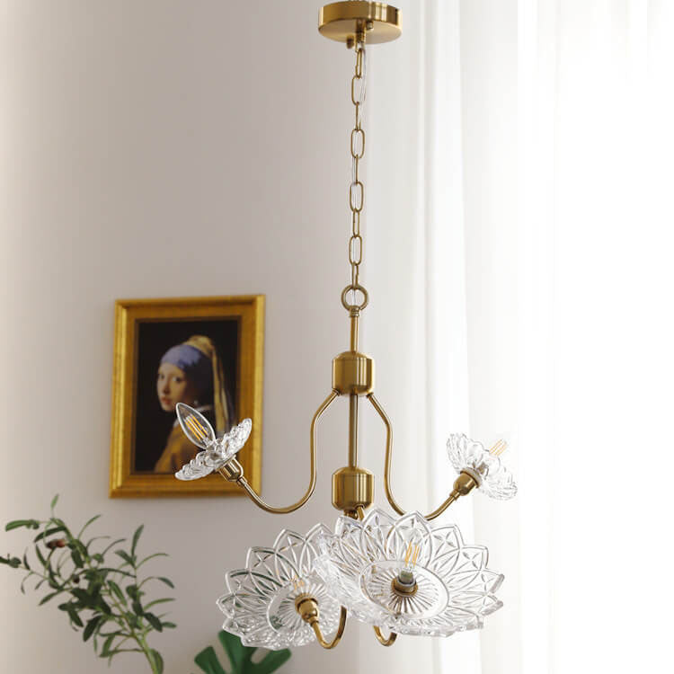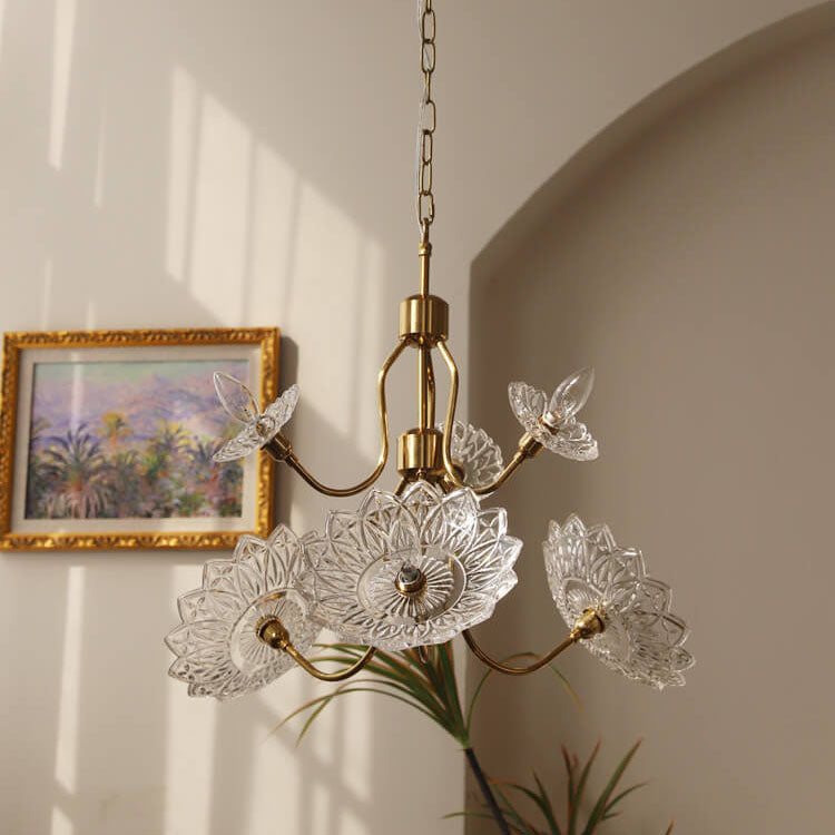 French Vintage Flower Butterfly Glass 4/6 Light Chandelier