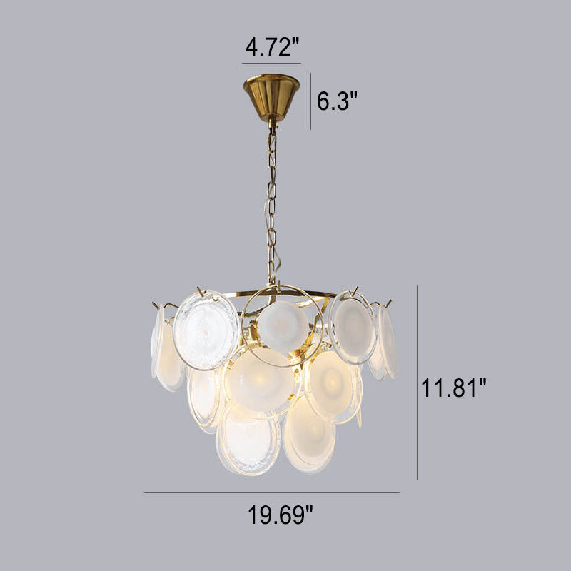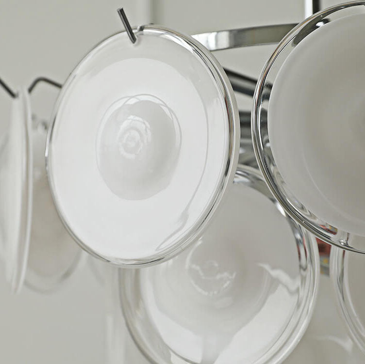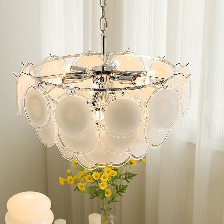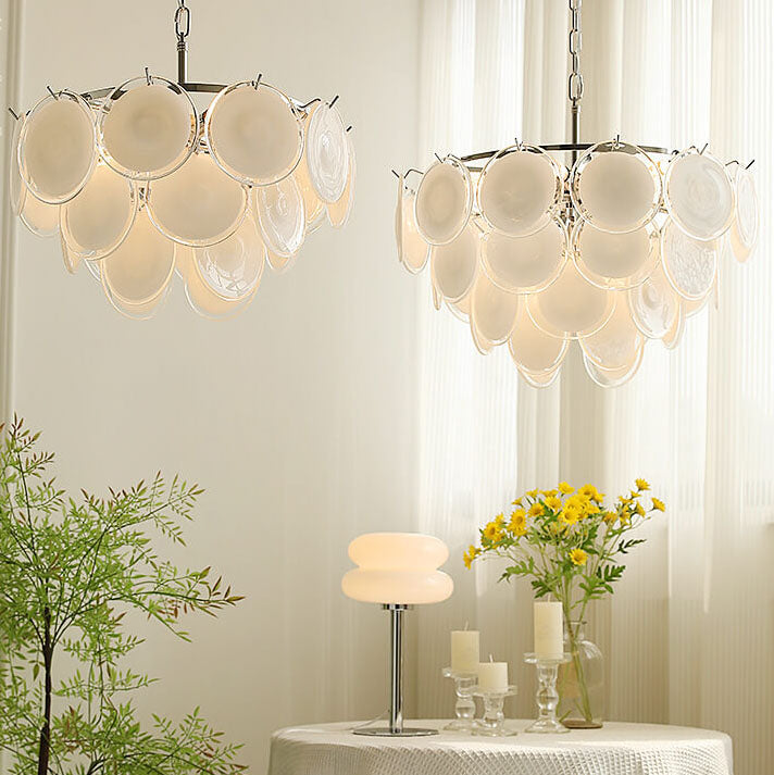French Vintage White Glass Round Shell 5 Light Chandelier
