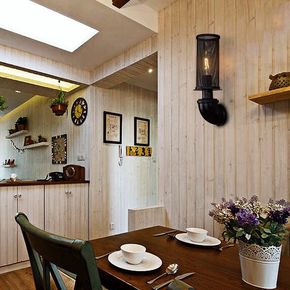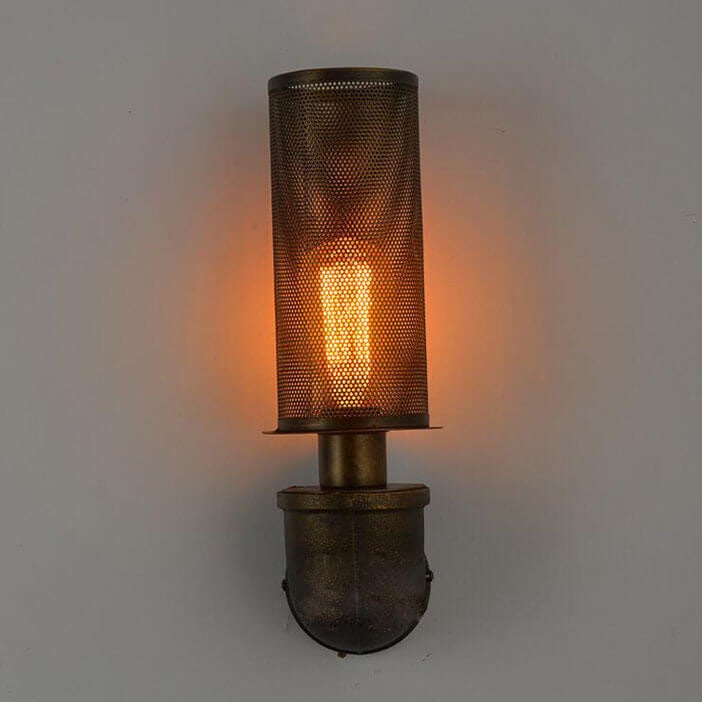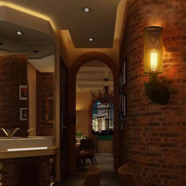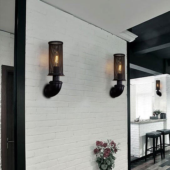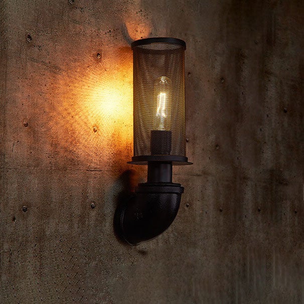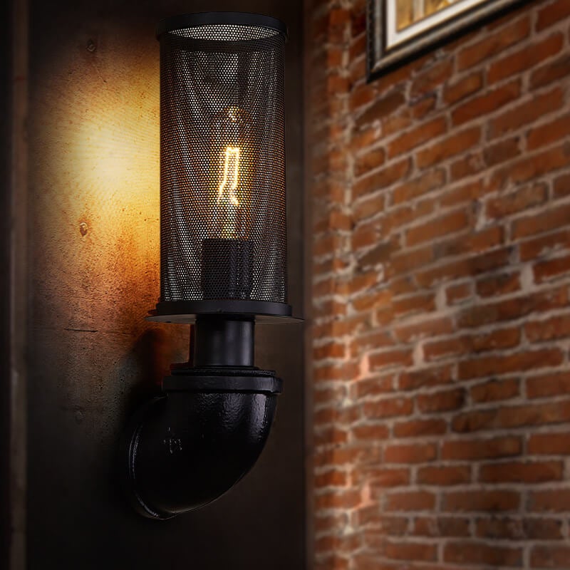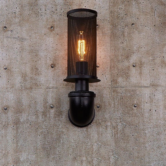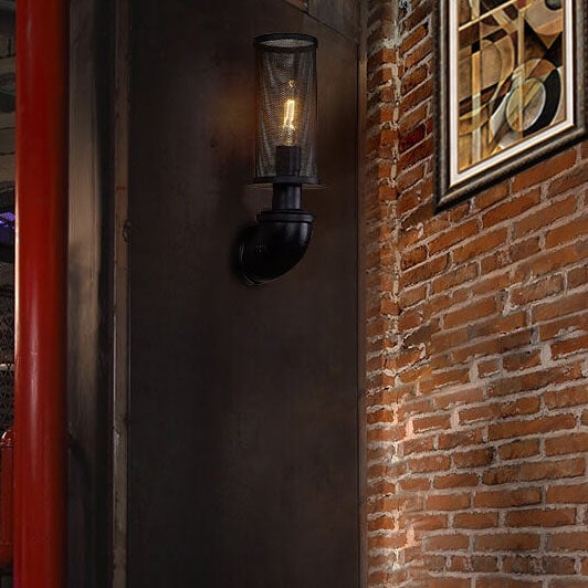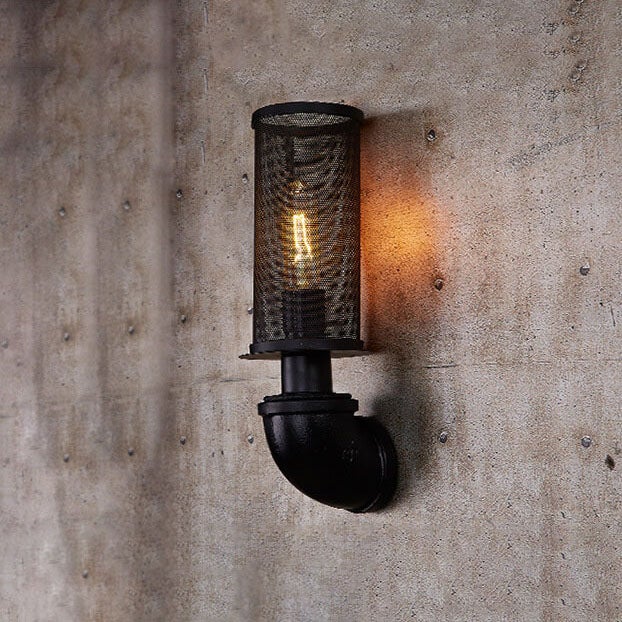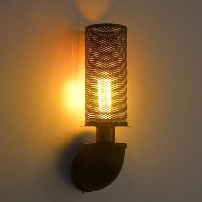 Industrial Vintage Cylinder Pipe Metal Mesh 1-Light Wall Sconce Lamp