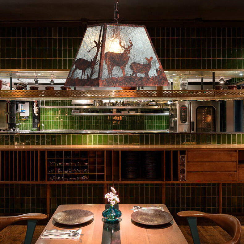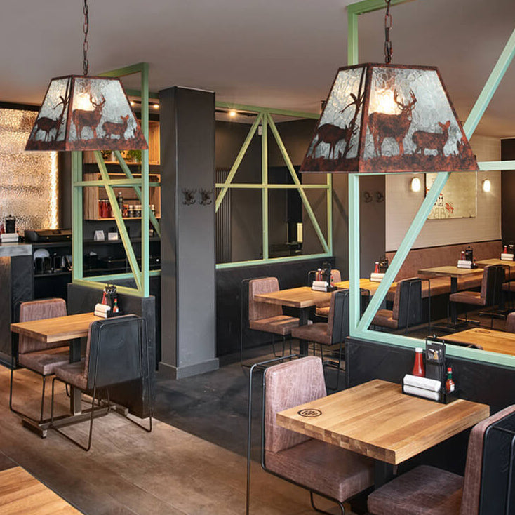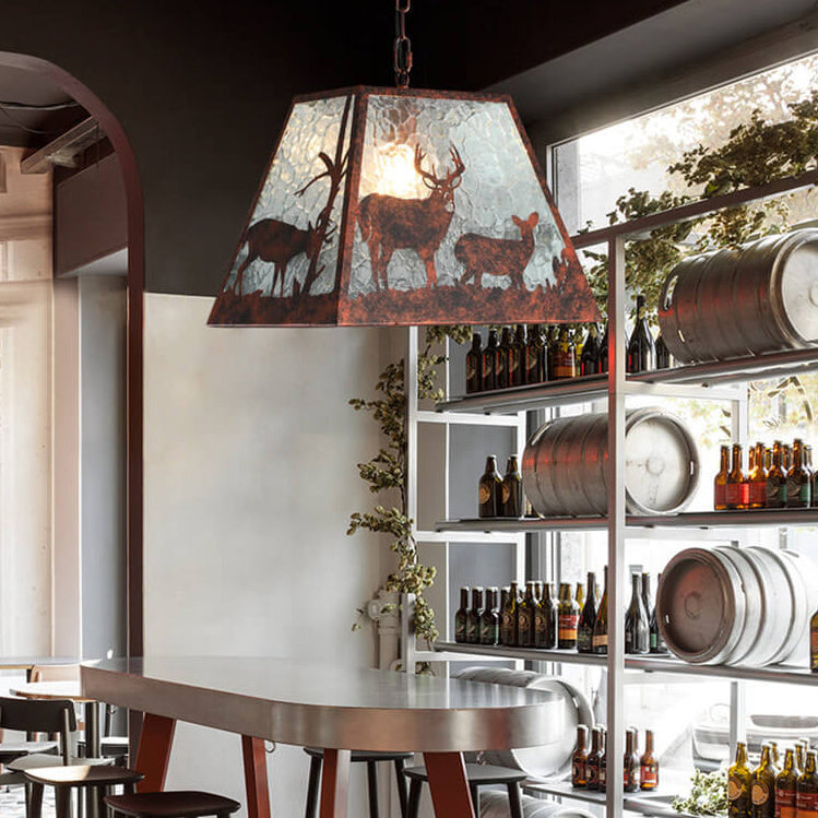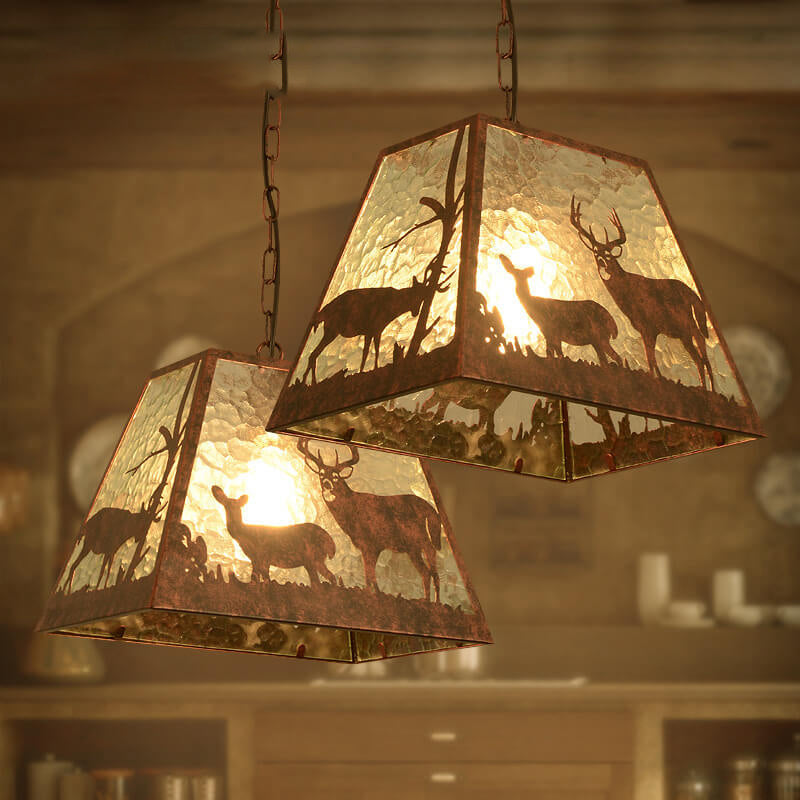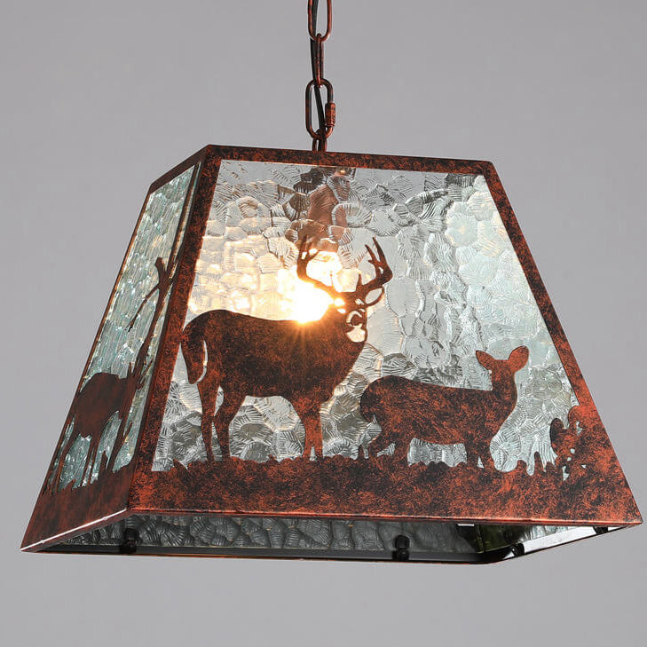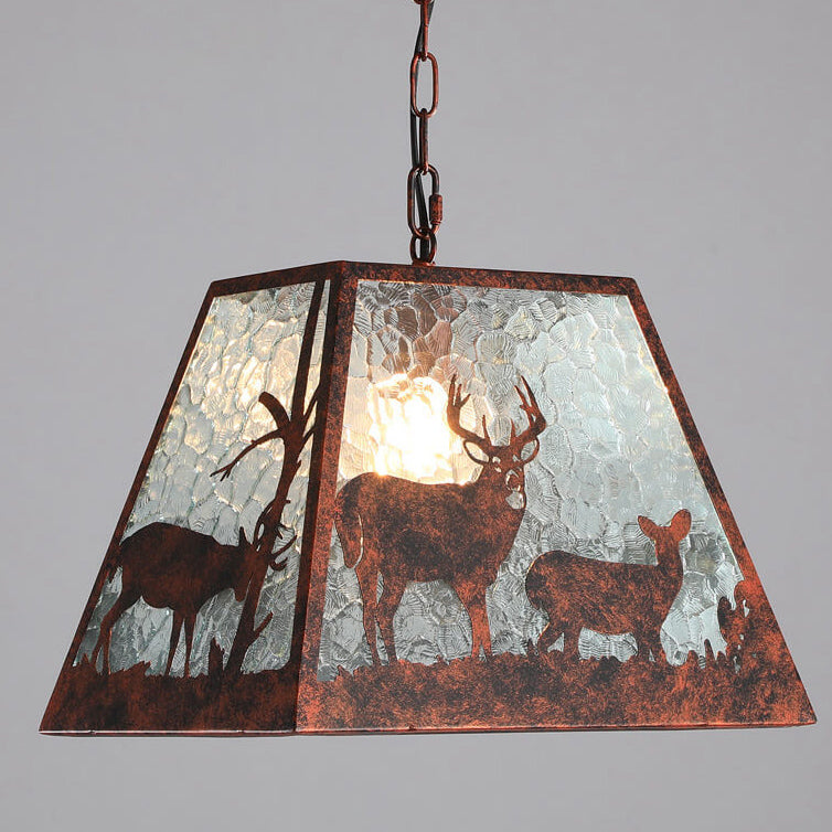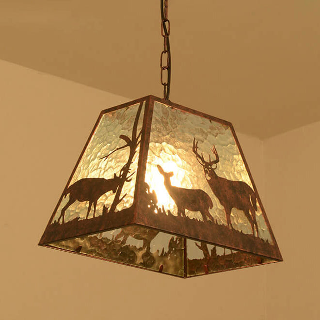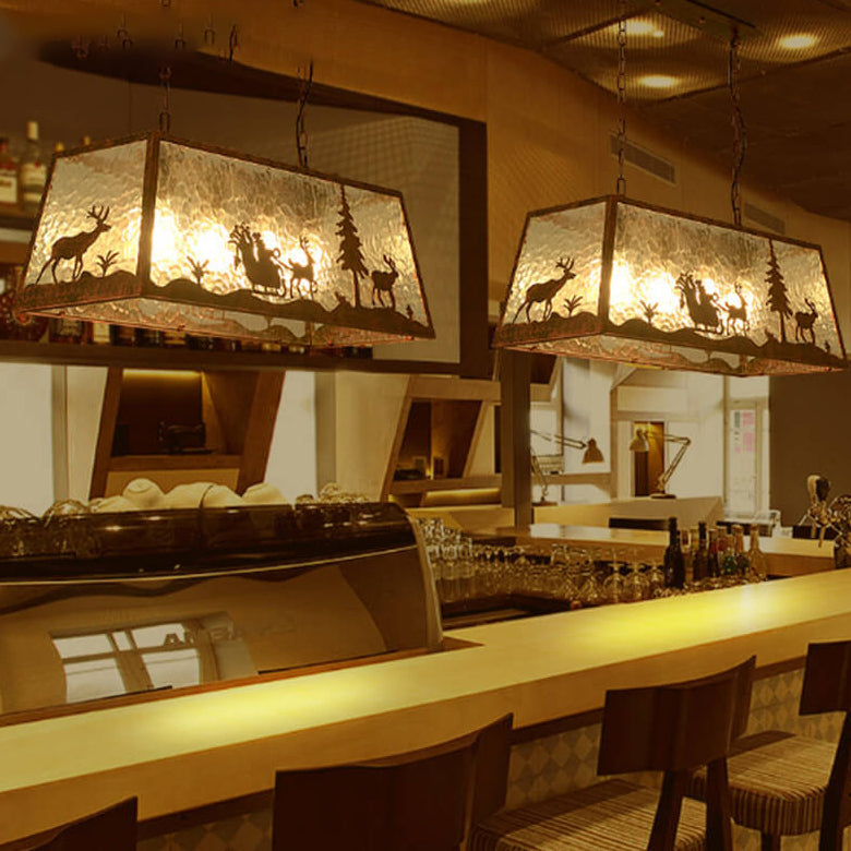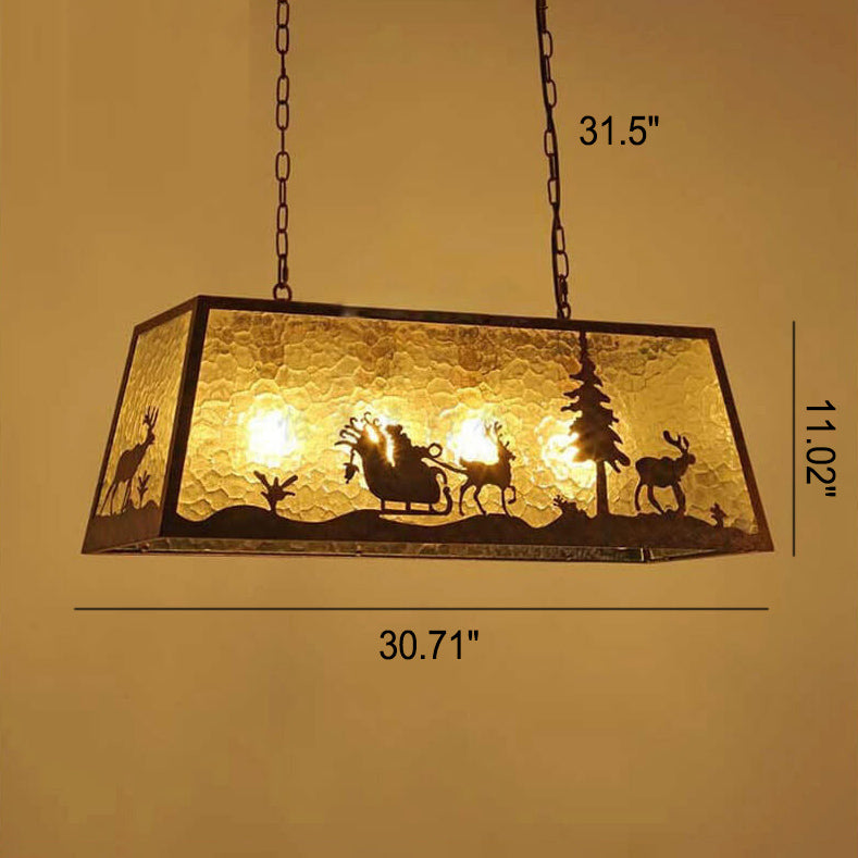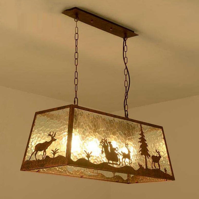 Industrial Vintage Water Pattern Glass Elk Sleigh Design 1/4 Light Chandelier