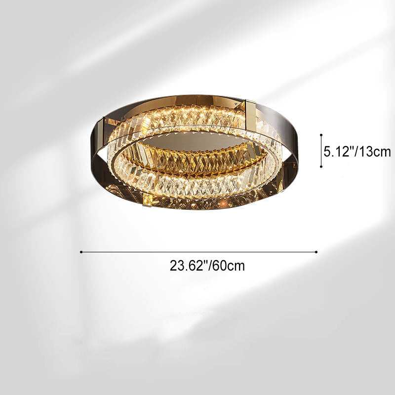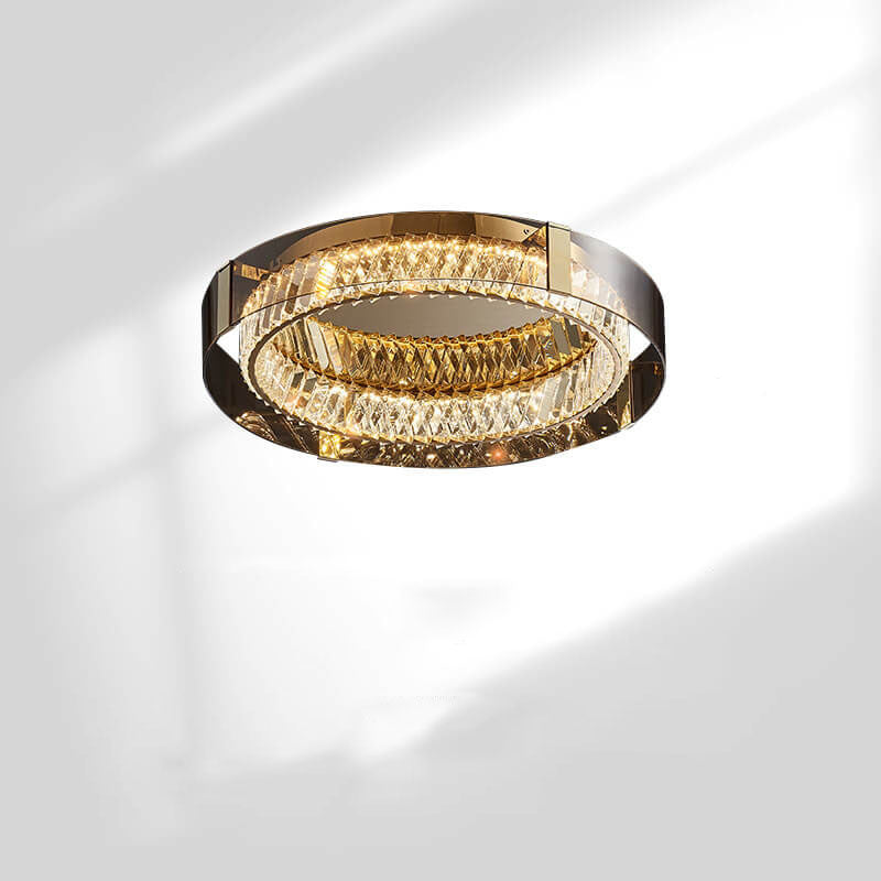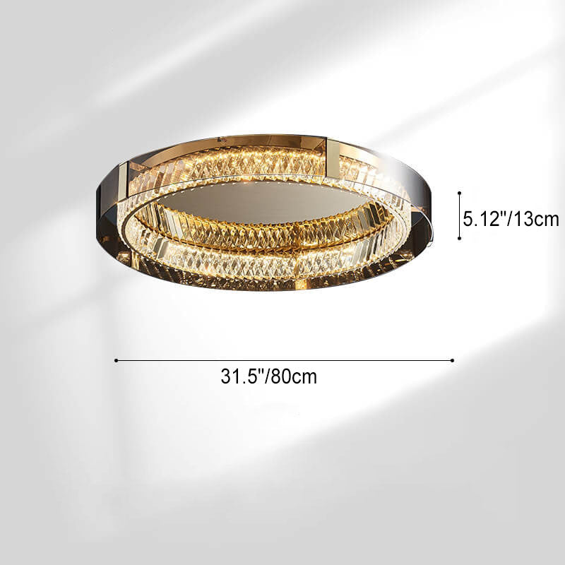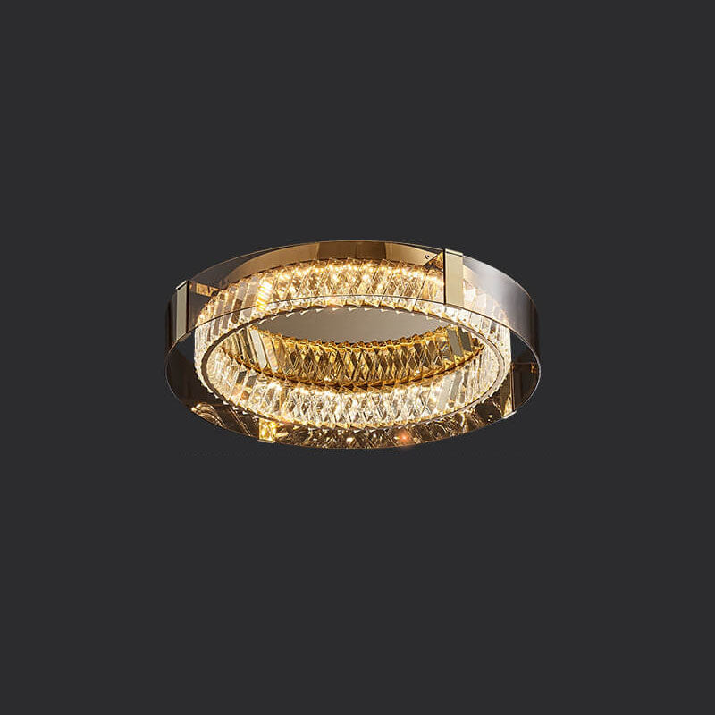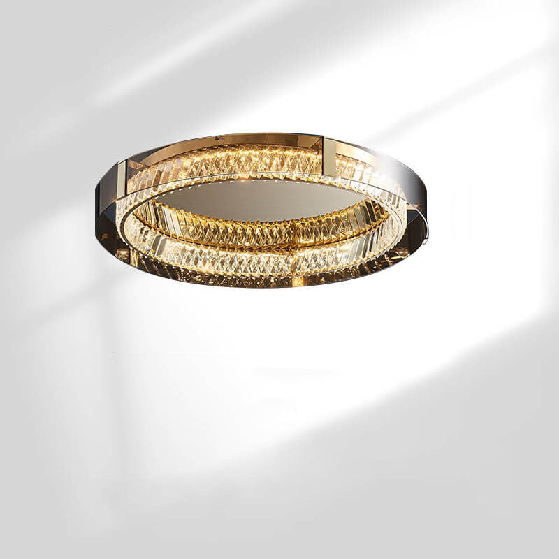 Italian Light Luxury Crystal Circle Plating LED Flush Mount Ceiling Light