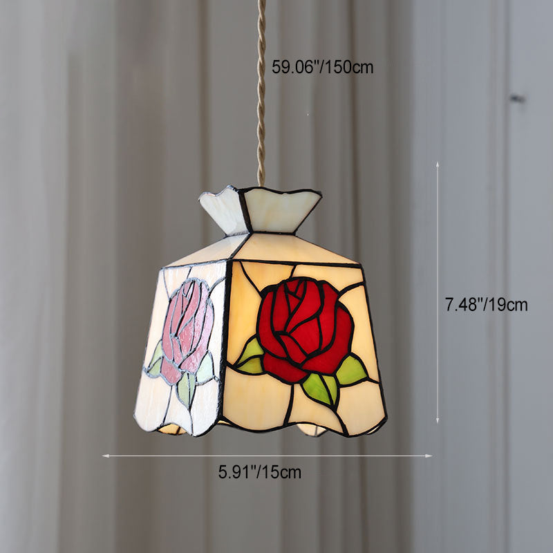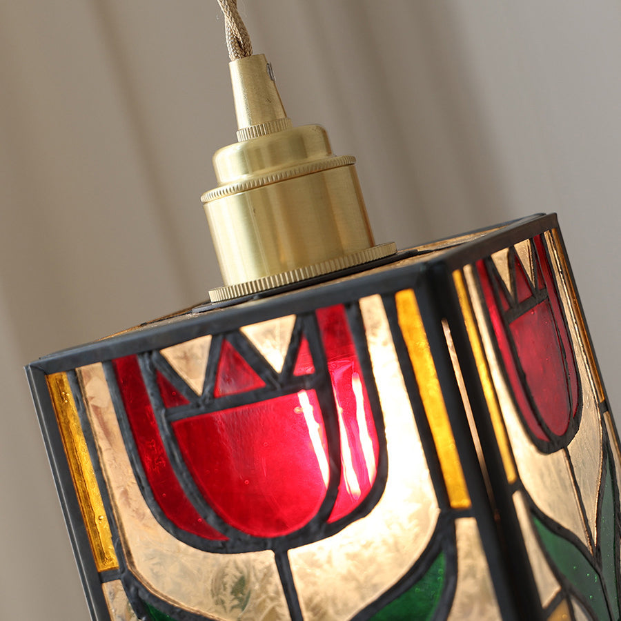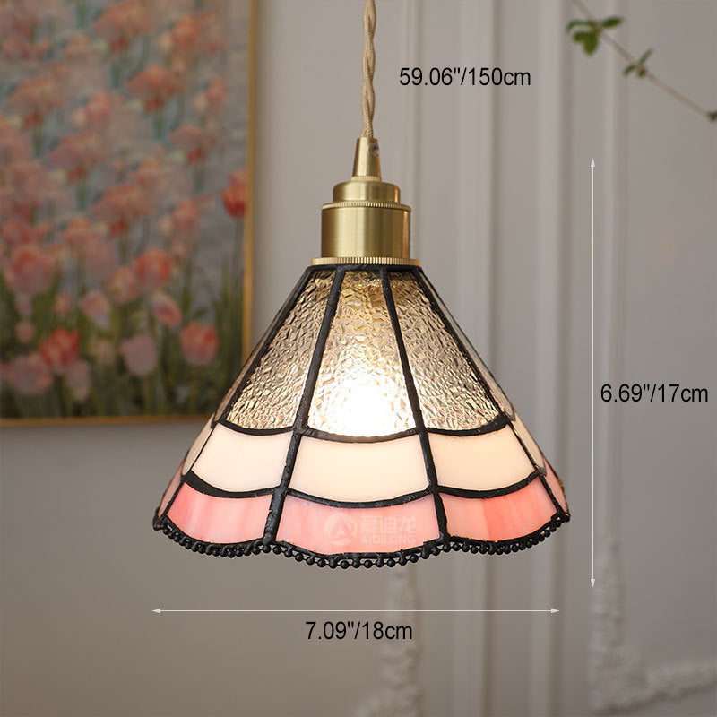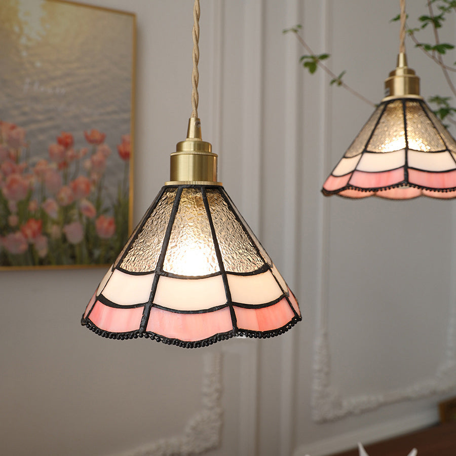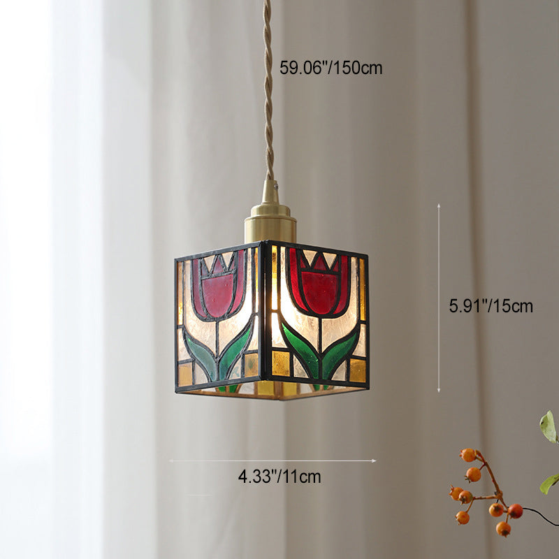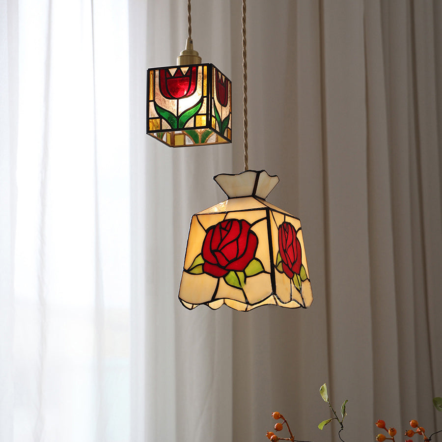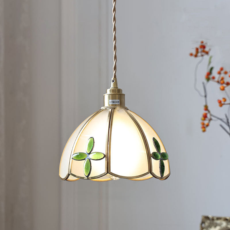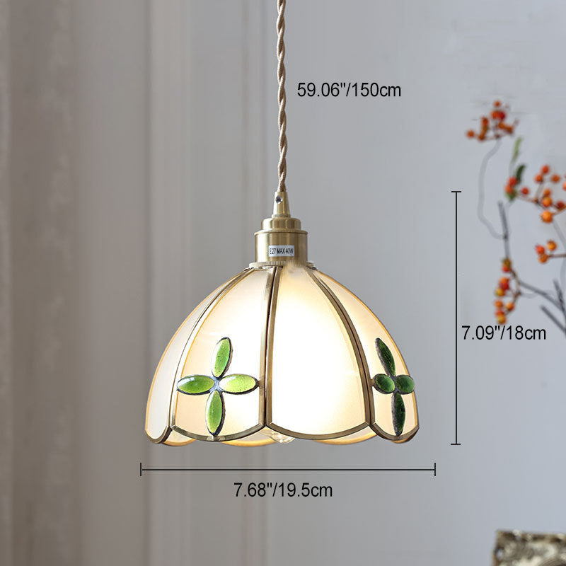 Modern Art Deco Clover Tulip Rose Round Square Cone Copper Glass 1-Light Pendant Light For Bedroom