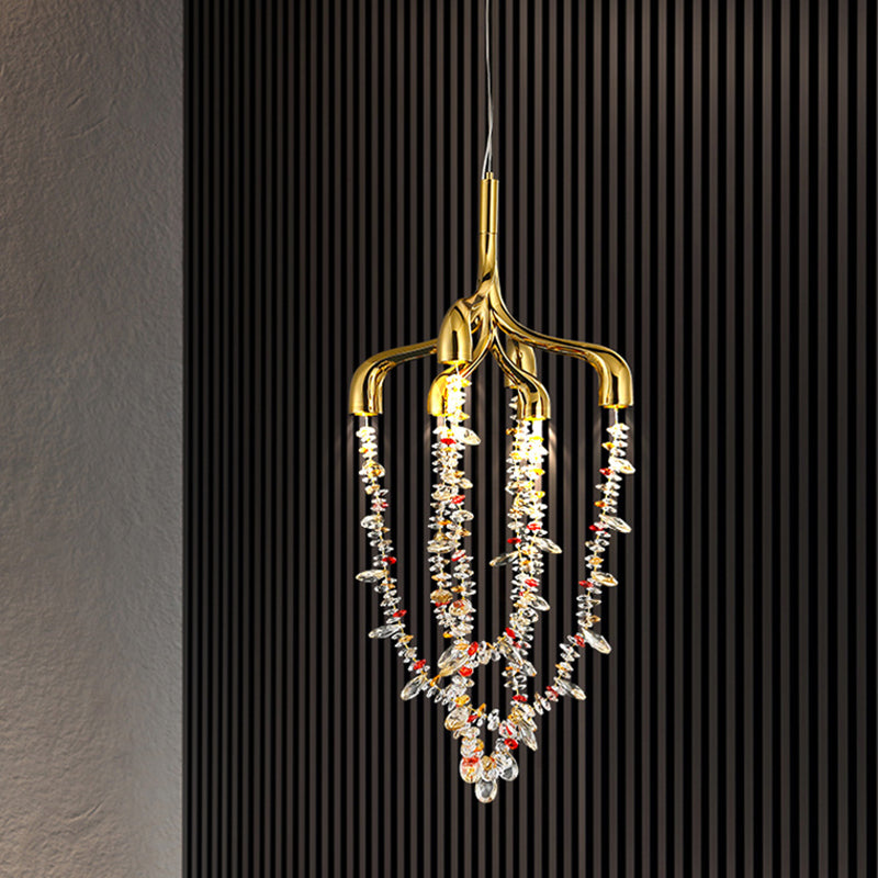 Modern Art Deco Copper Crystal Pendant Beads 6-Light Chandeliers For Dining Room