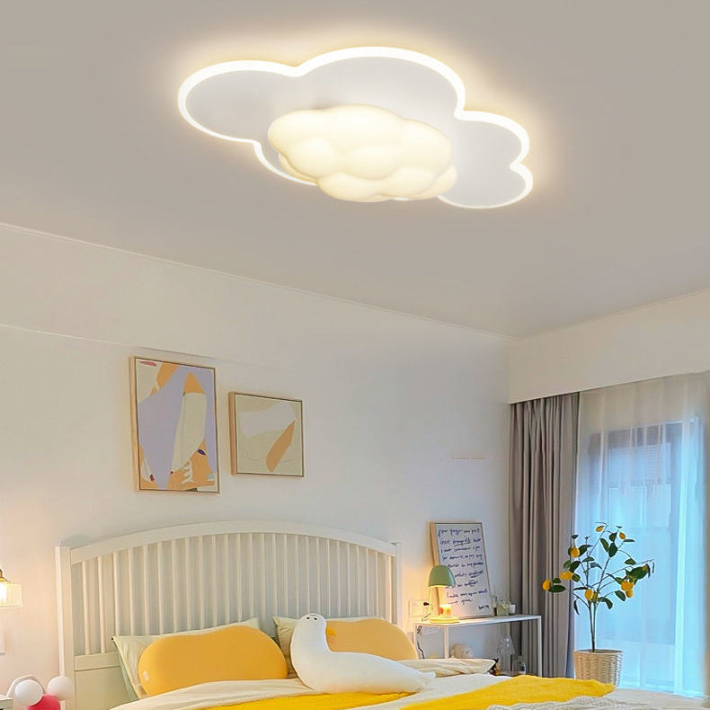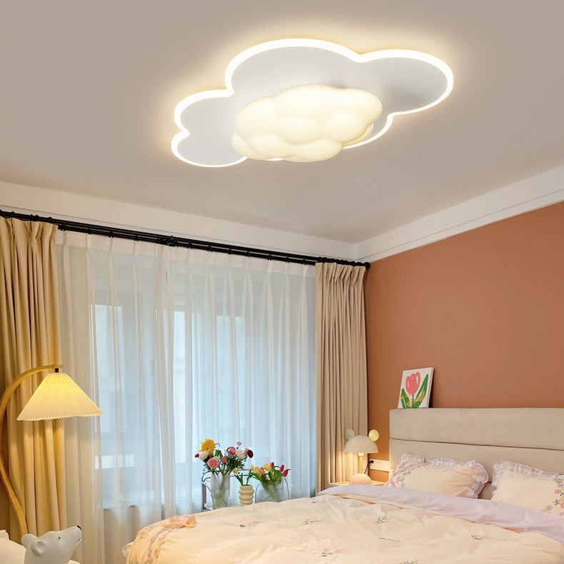 Modern Art Deco Cream Clouds Plastic Iron LED Flush Mount Ceiling Light For Living Room