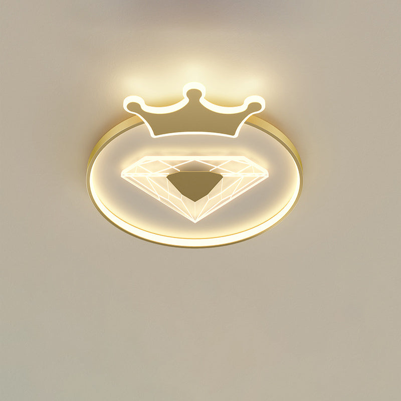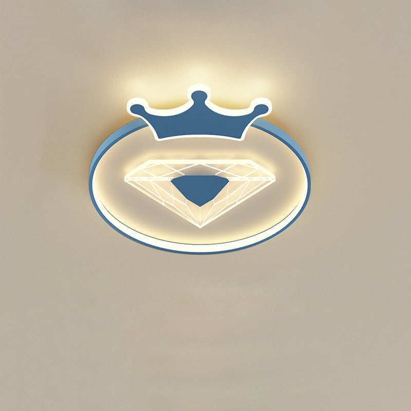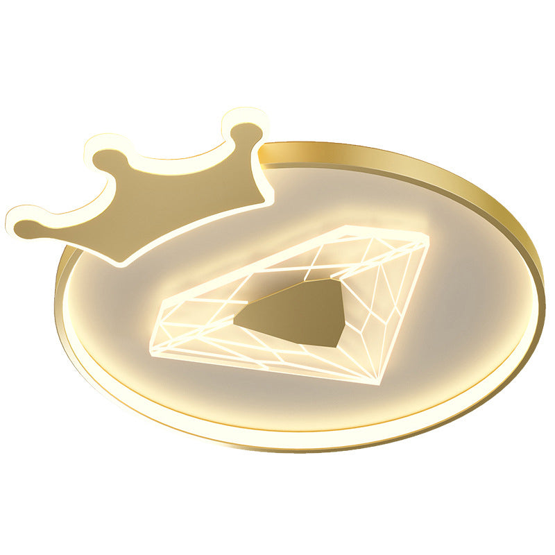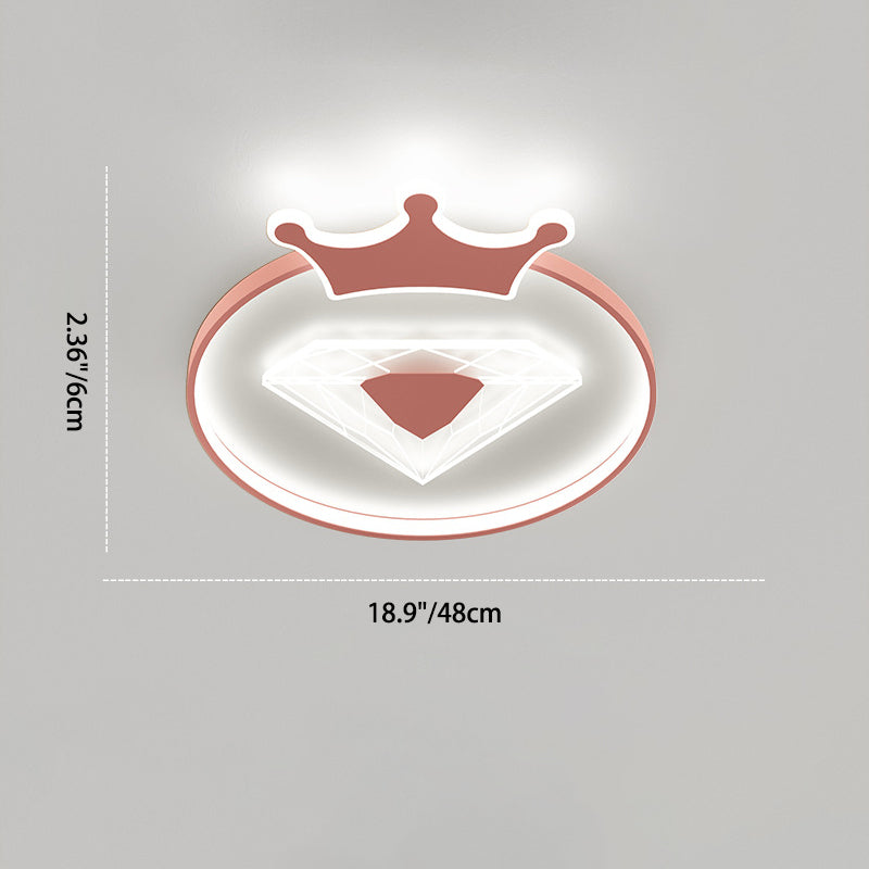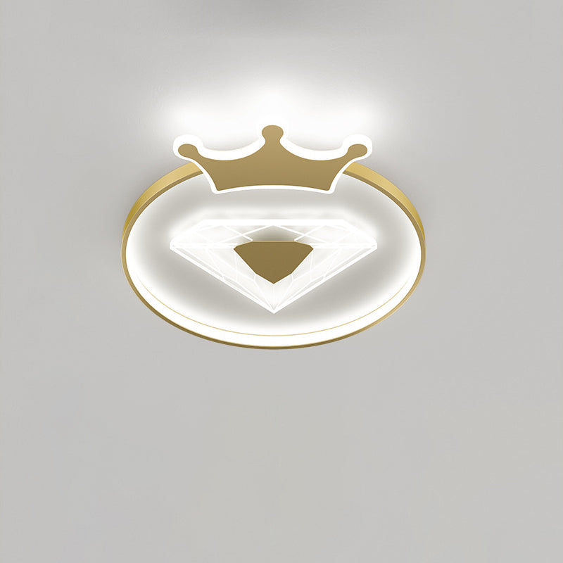 Modern Art Deco Crown Diamond Round Acrylic Iron LED Flush Mount Ceiling Light For Bedroom