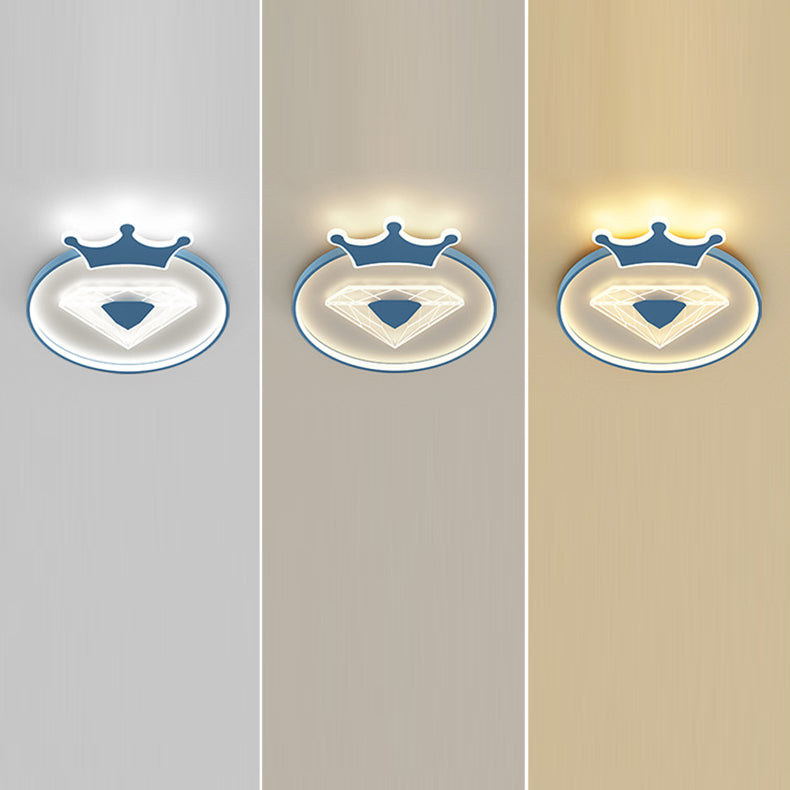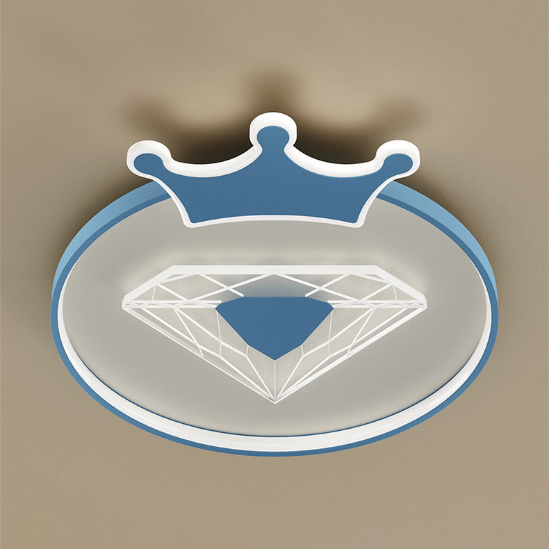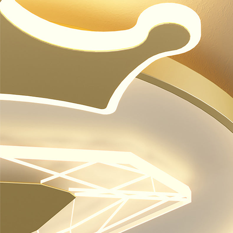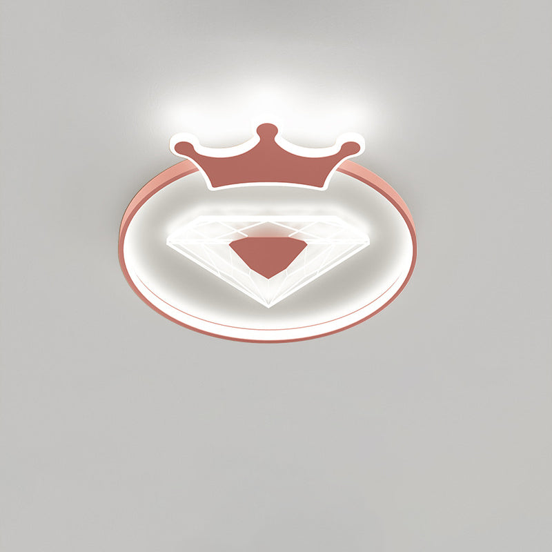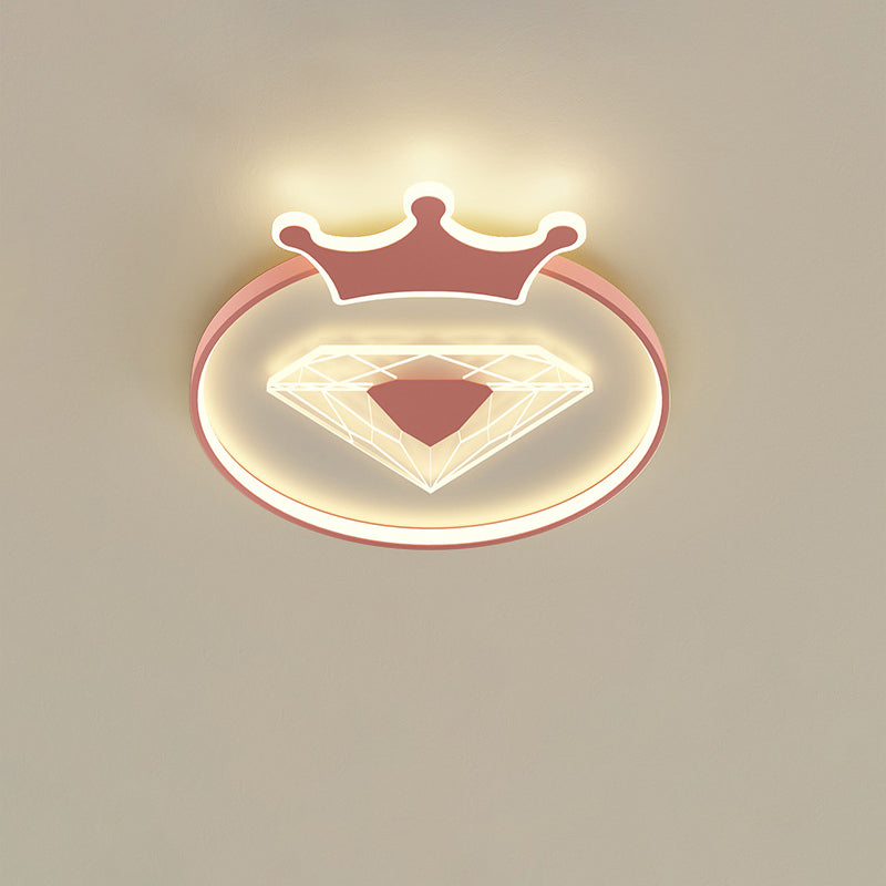Modern Art Deco Crown Diamond Round Acrylic Iron LED Flush Mount Ceiling Light For Bedroom