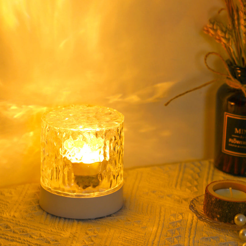Modern Art Deco Cylinder Projection Acrylic LED Table Lamp For Bedroom