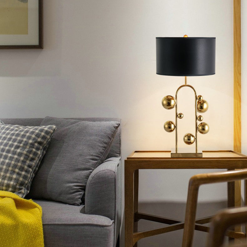 Modern Art Deco Fabric Round Shade Iron Globe Ball 1-Light Table Lamp For Home Office