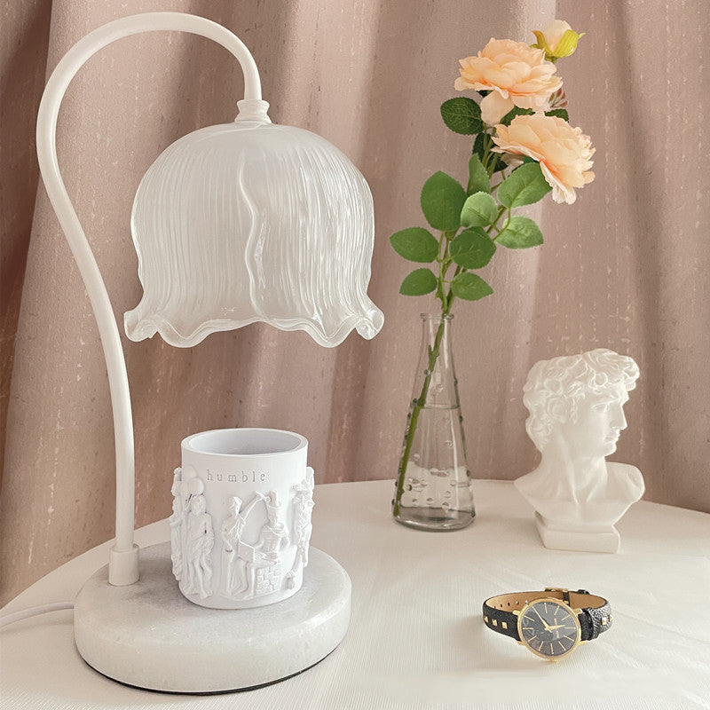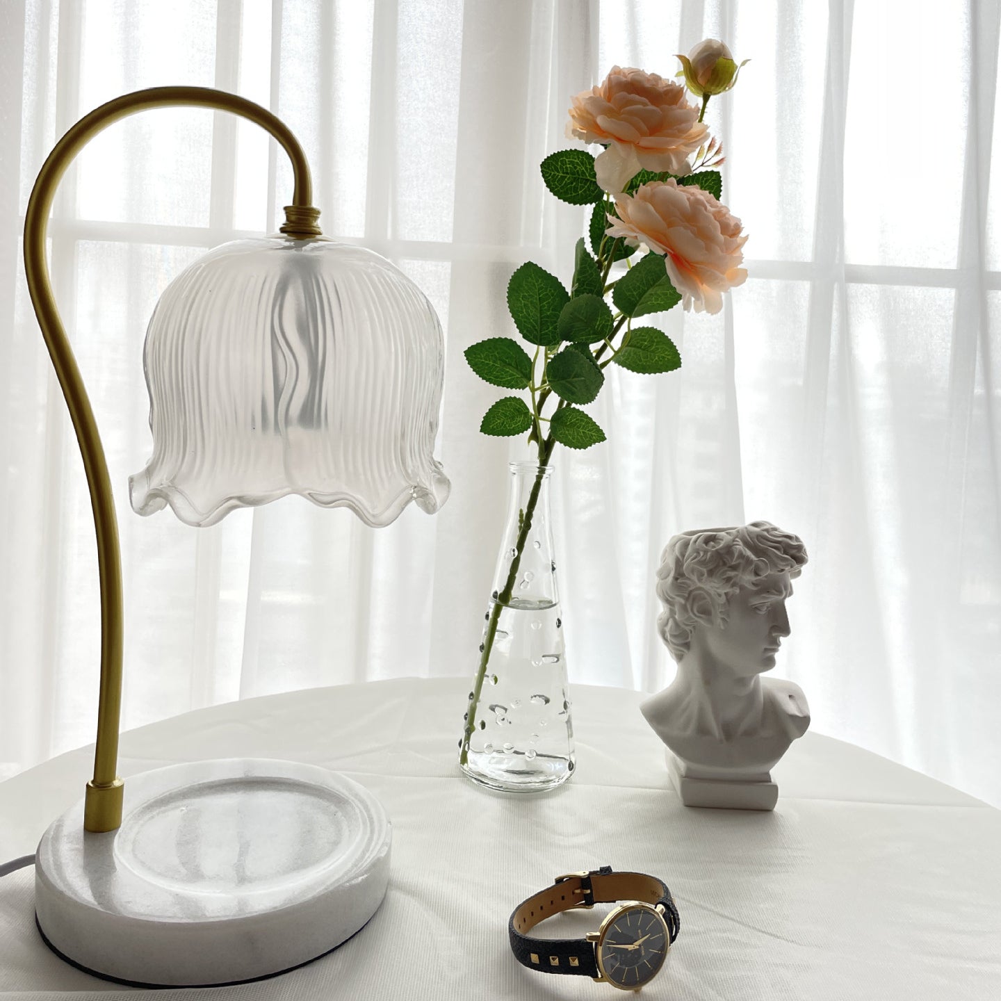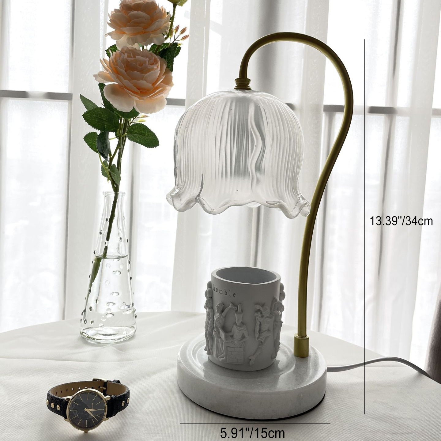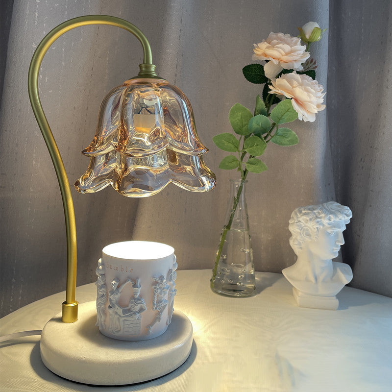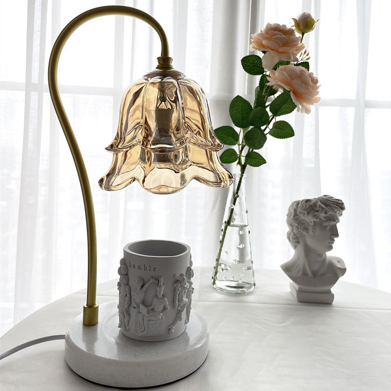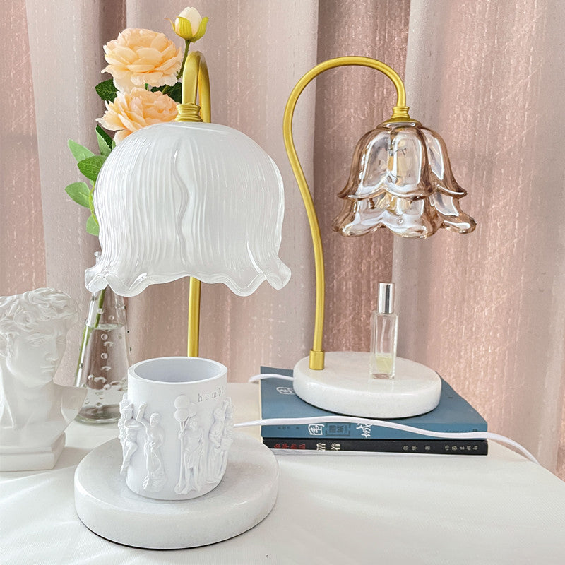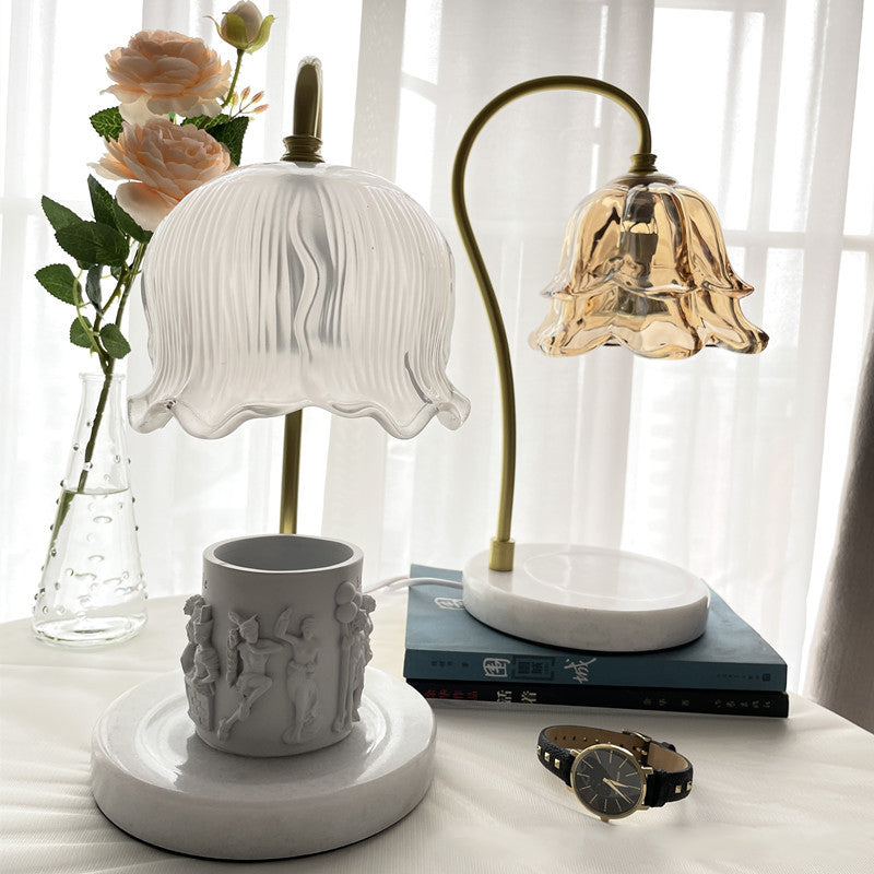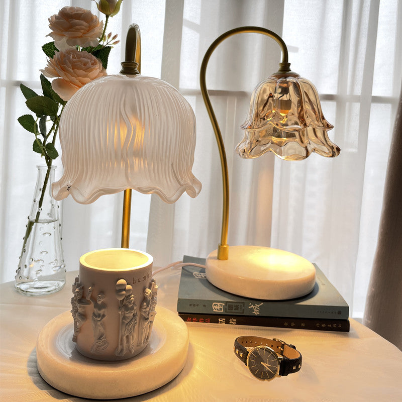 Modern Art Deco Flower Glass Shade Marble Base 1-Light Melting Wax Table Lamp For Bedroom