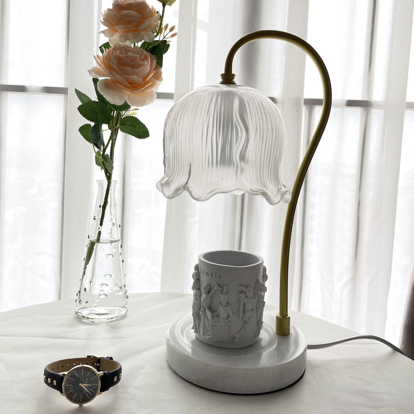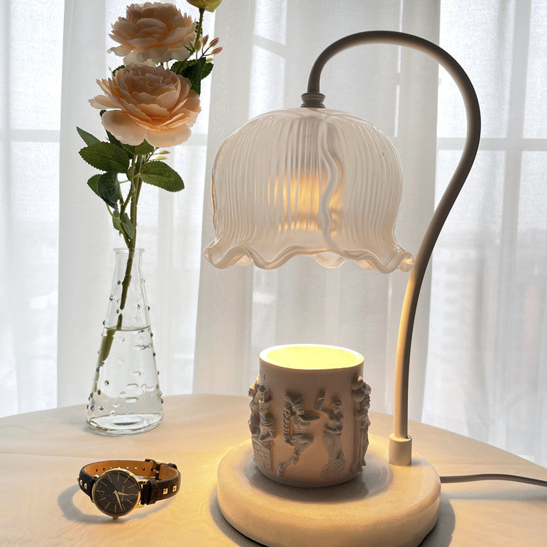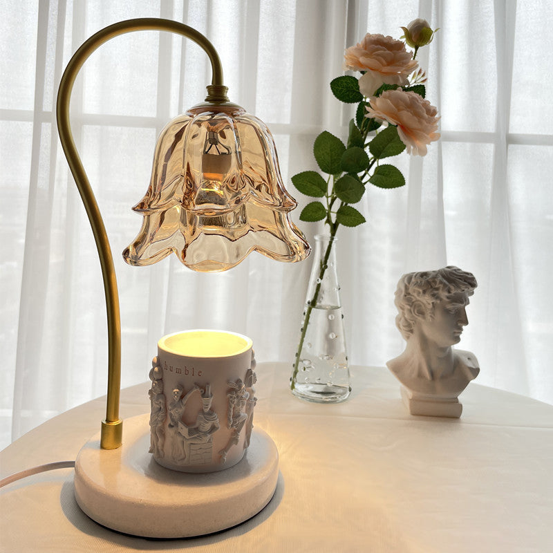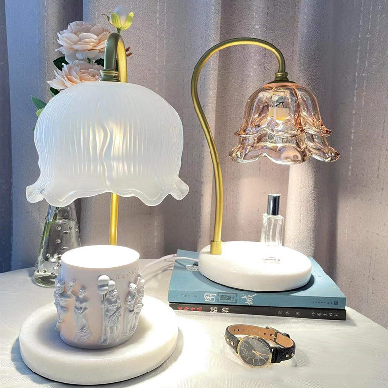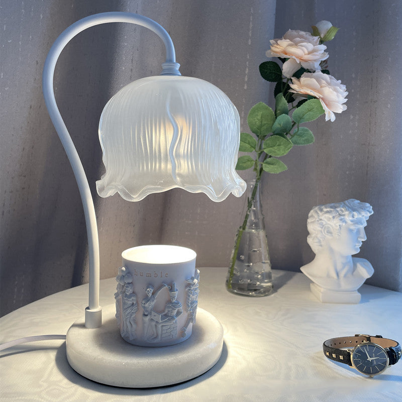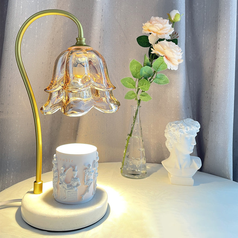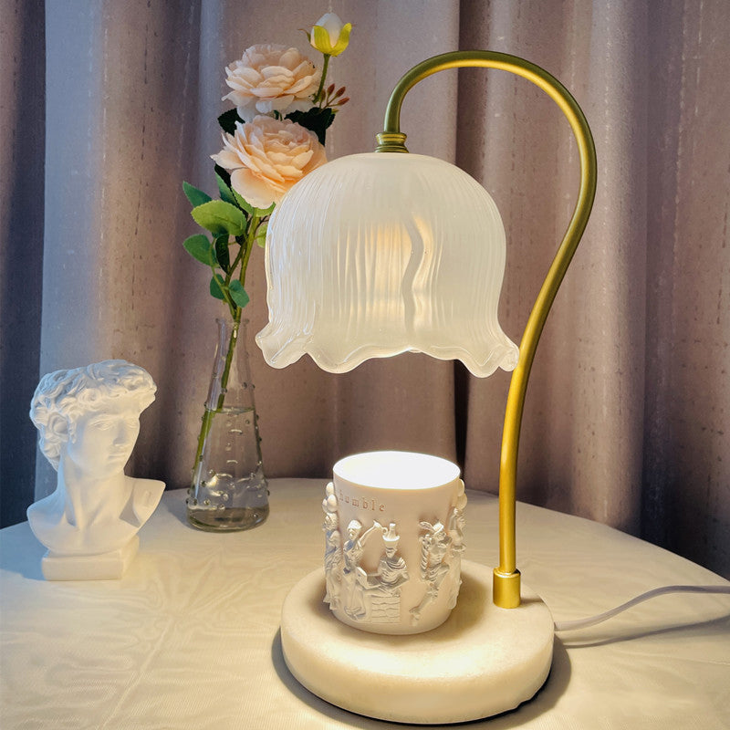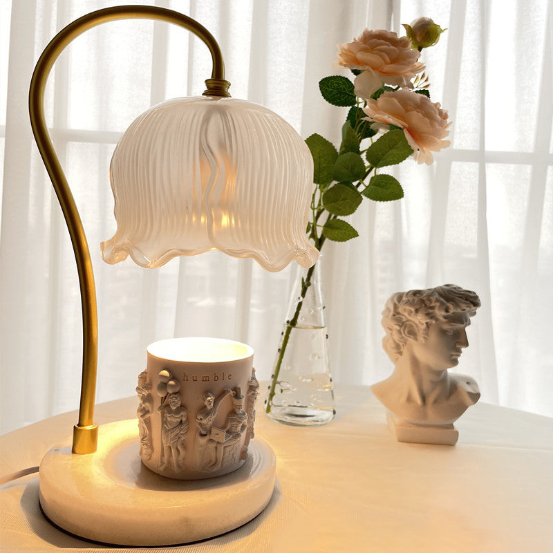 Modern Art Deco Flower Glass Shade Marble Base 1-Light Melting Wax Table Lamp For Bedroom