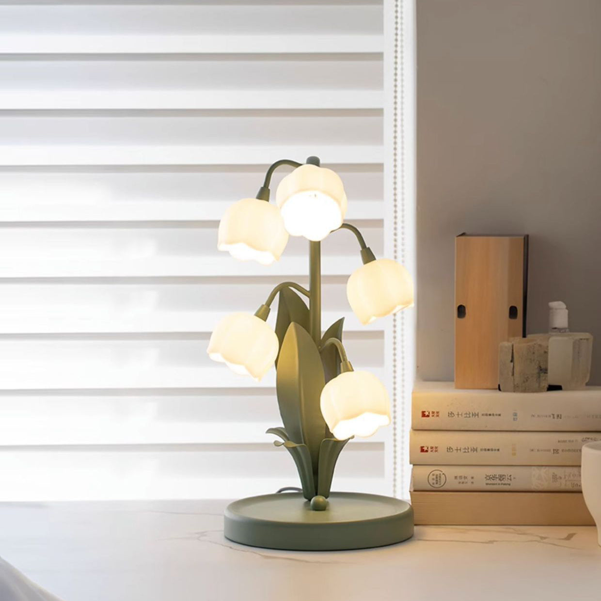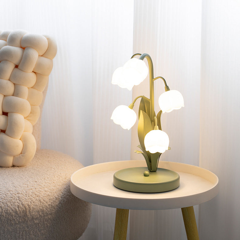 This sturdy, oxidation-resistant table lamp boasts high light transmittance, enhancing any living room or bedroom with its modern Art Deco style. The elegant floral design and round base add a touch of greenery and rustic charm to your home decor.