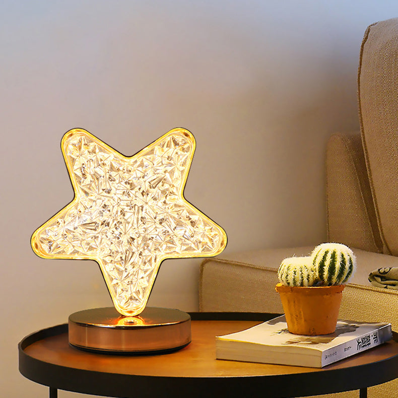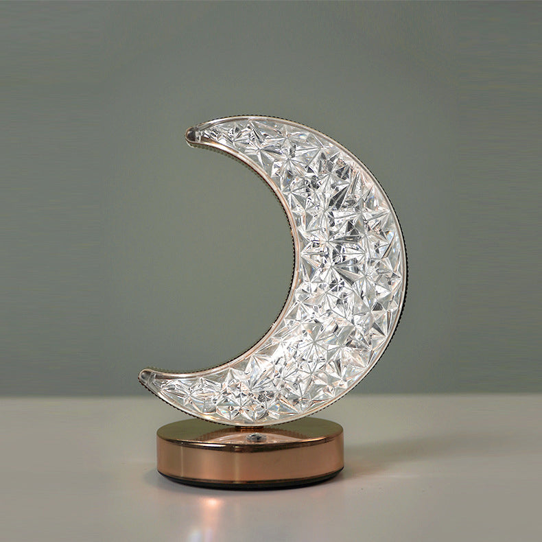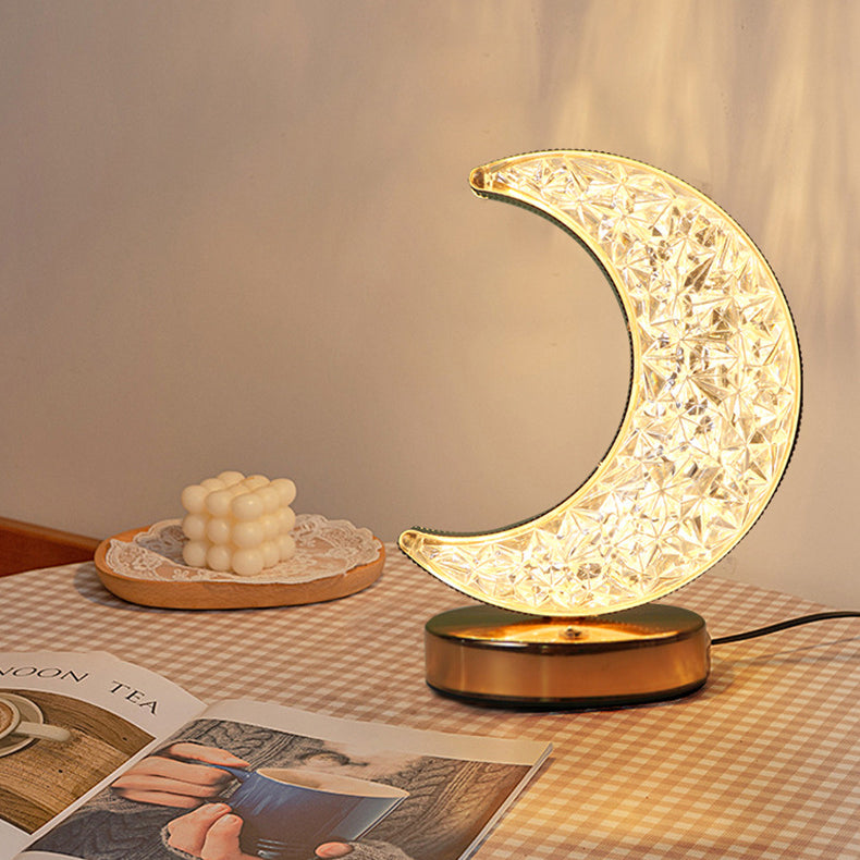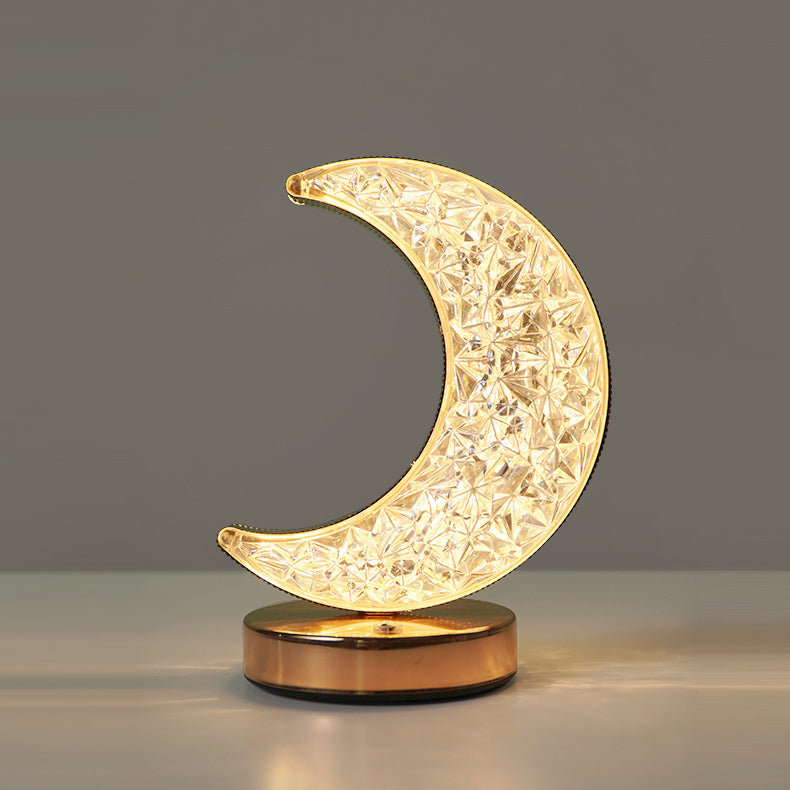 Modern Art Deco Metal Crystal Star Moon LED Table Lamp For Bedside