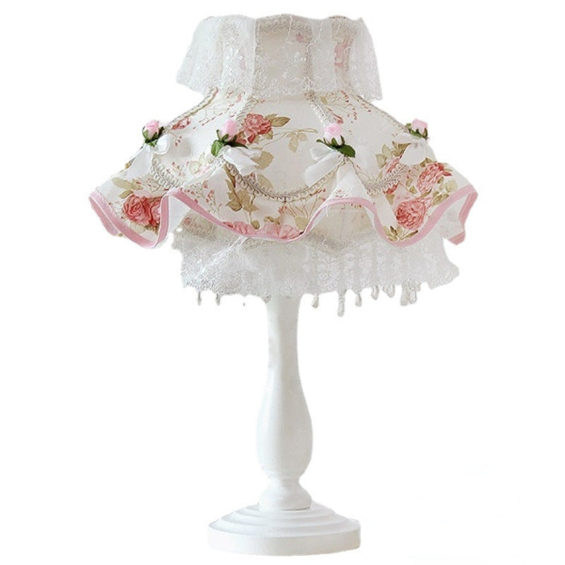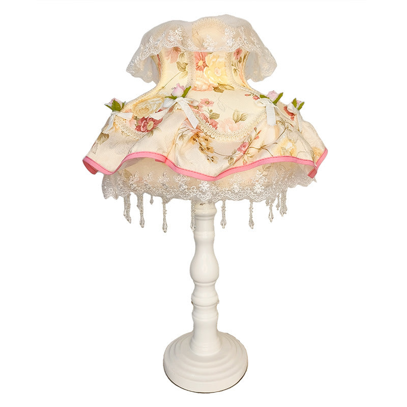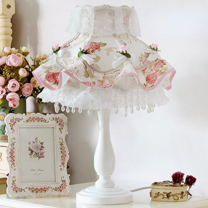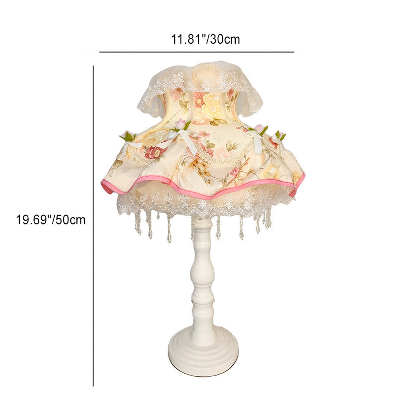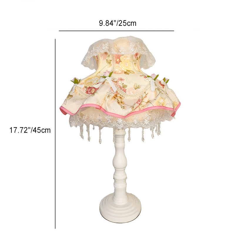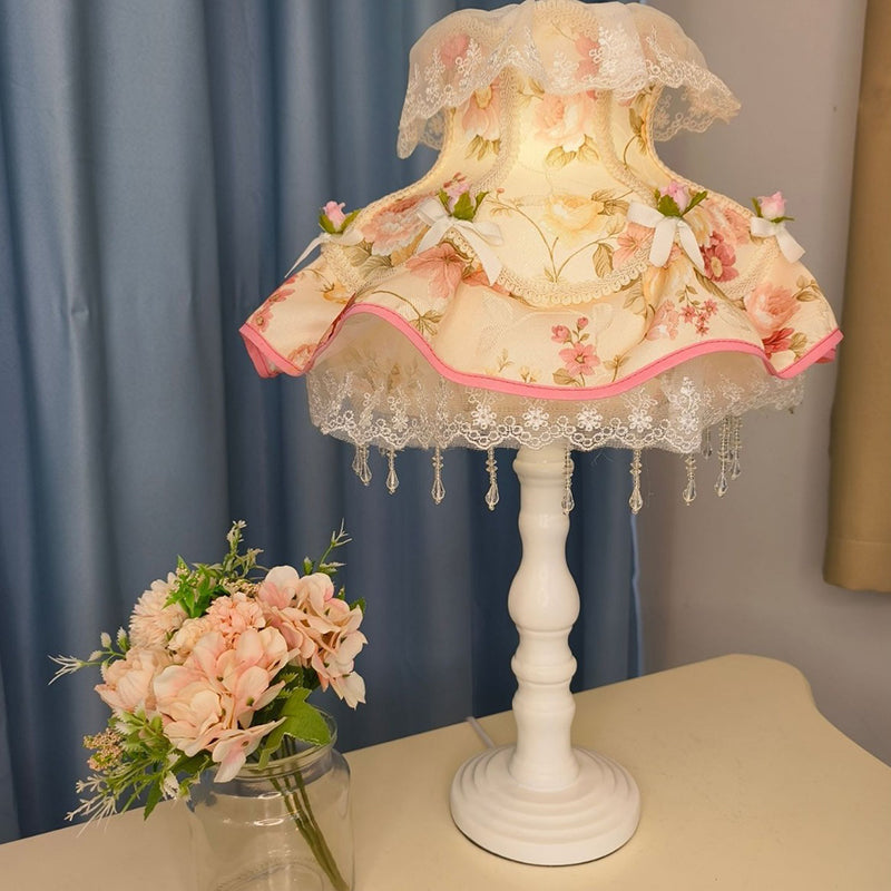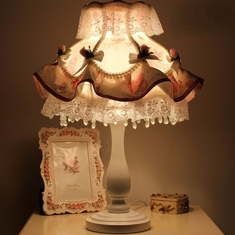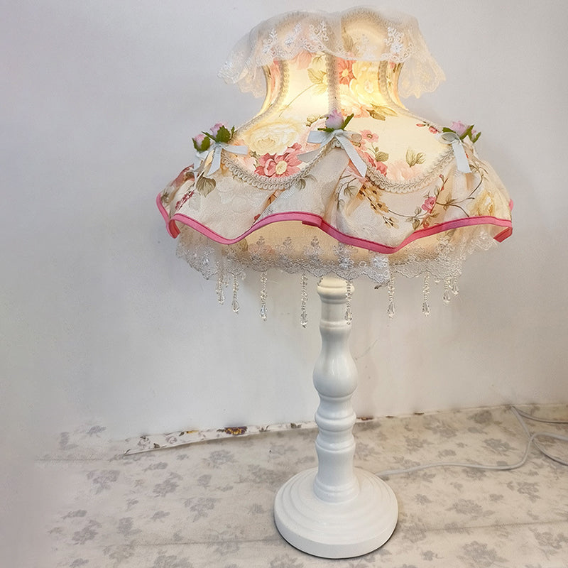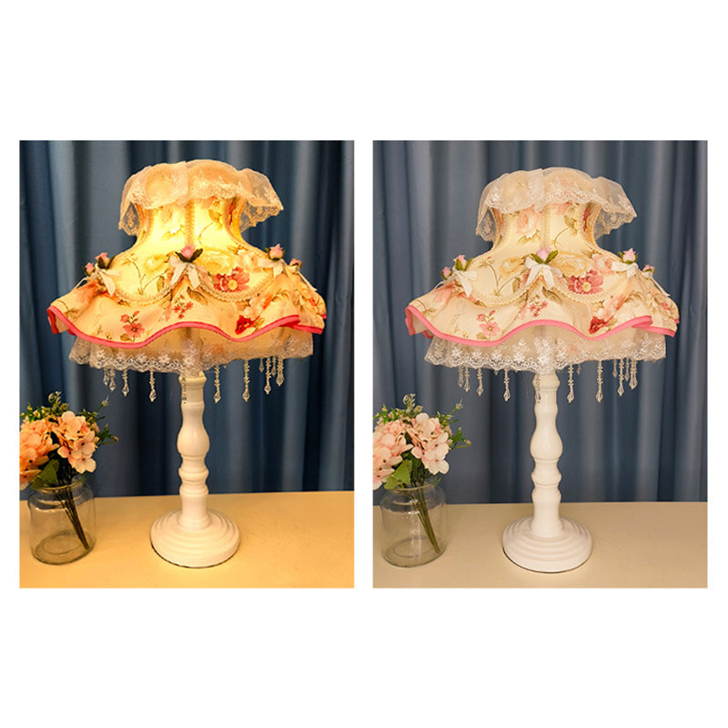 Modern Art Deco Round Lace Fabric Plastic 1-Light Table Lamp For Bedroom
