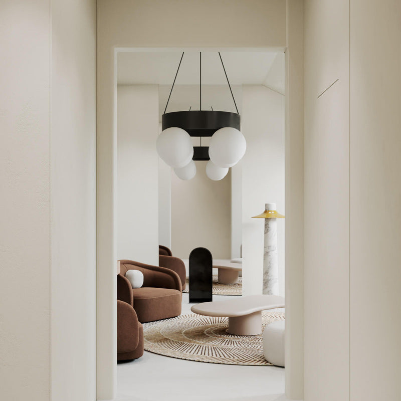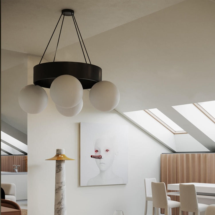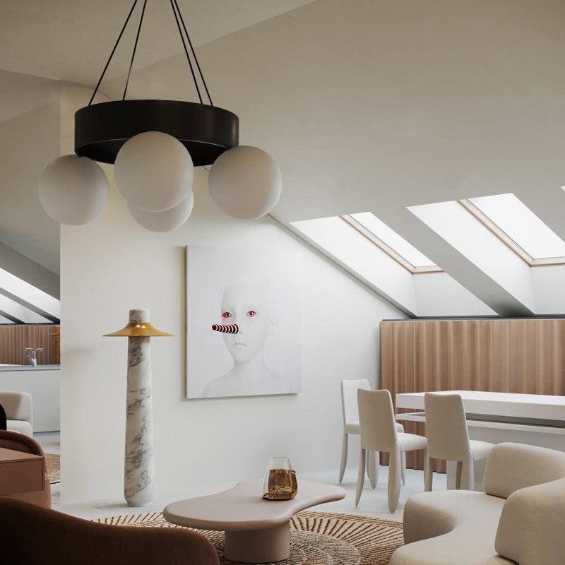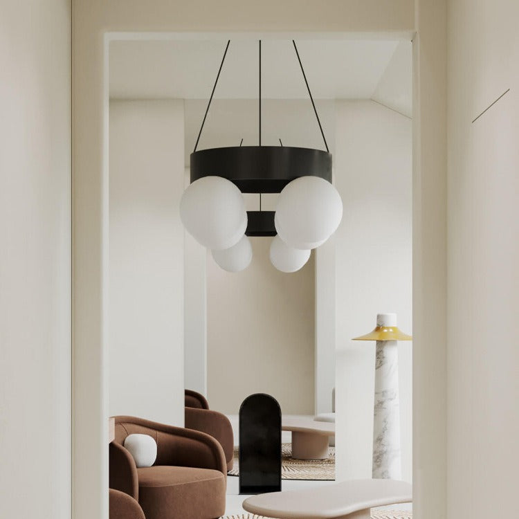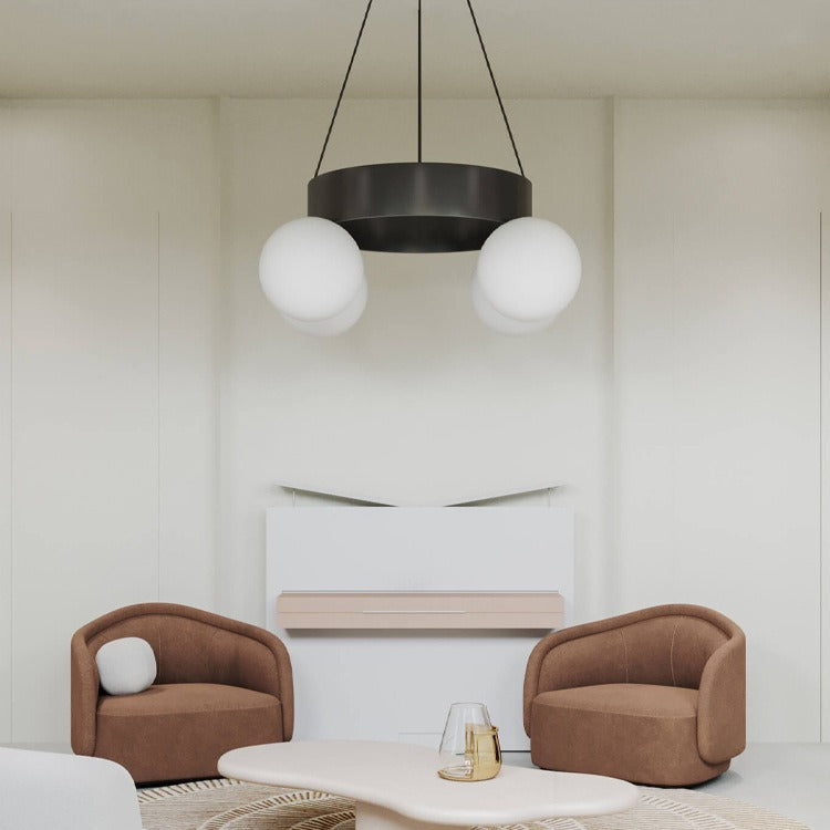 Modern Art Deco Round Orbs Iron Glass Lampshade 4 - Light Chandeliers For Living Room