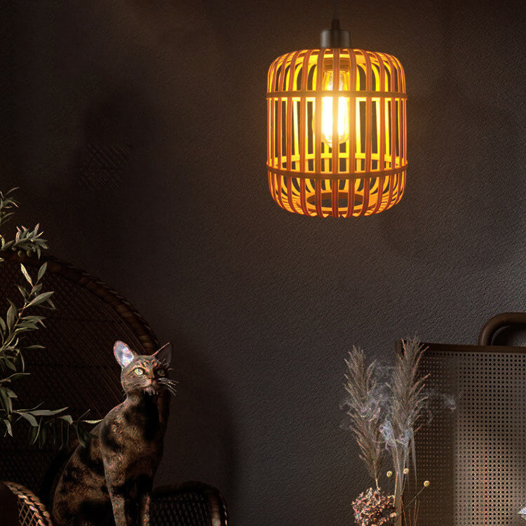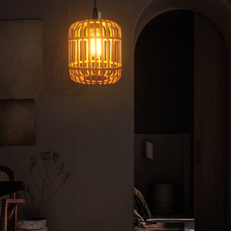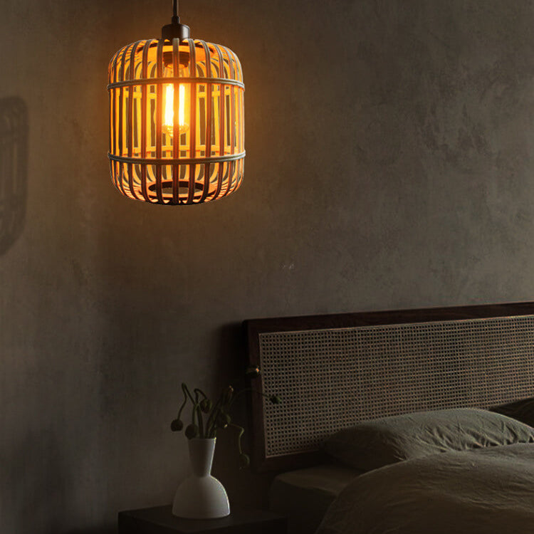 Modern Bamboo And Rattan Weaving Hollow Birdcage Design 1-Light Pendant Light