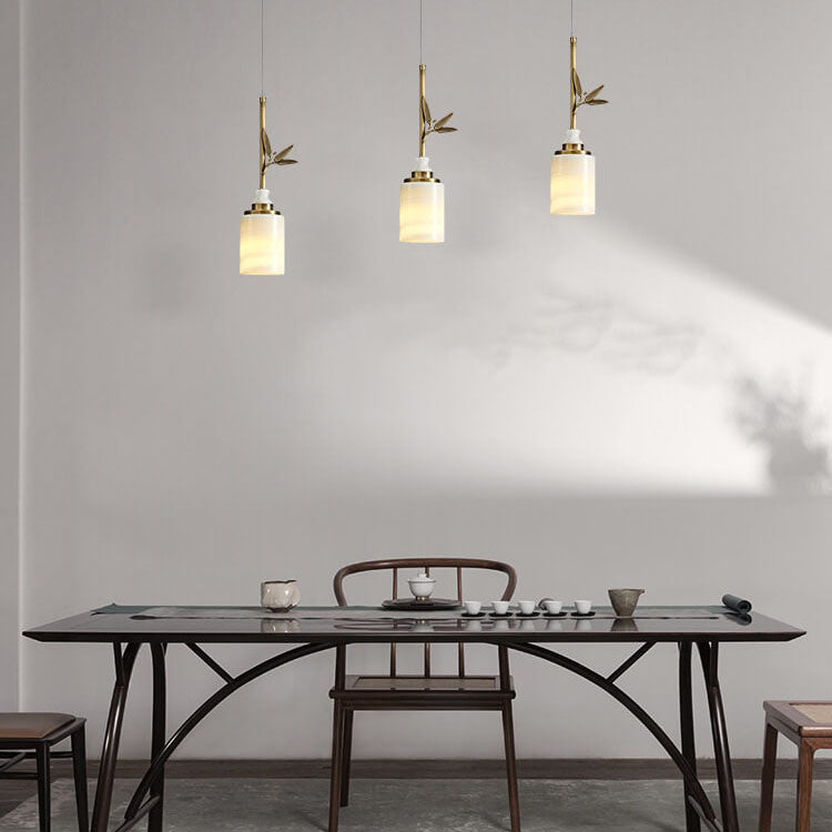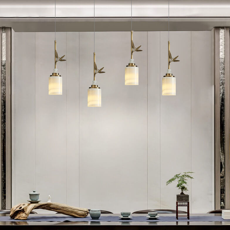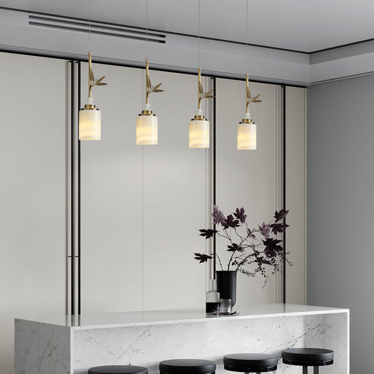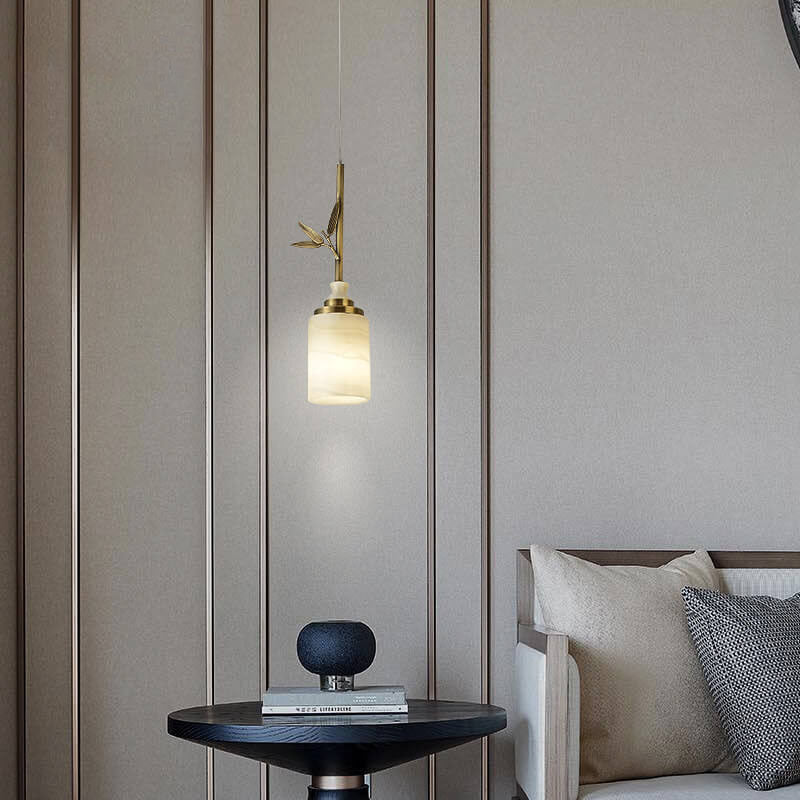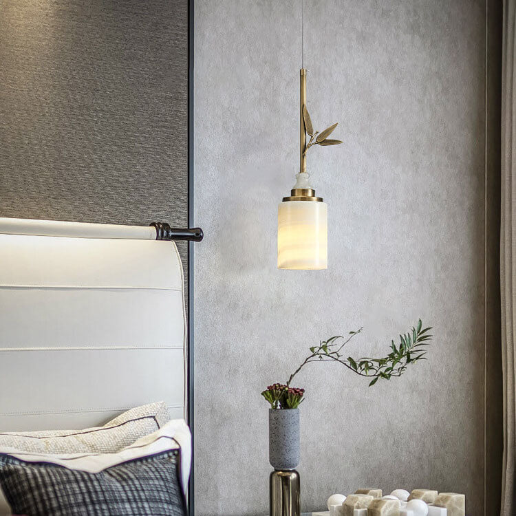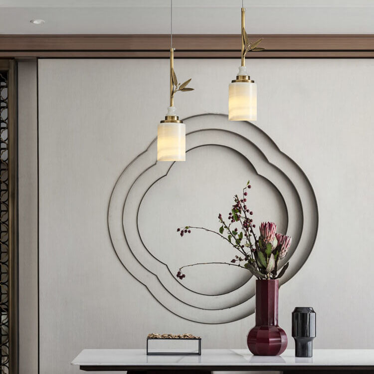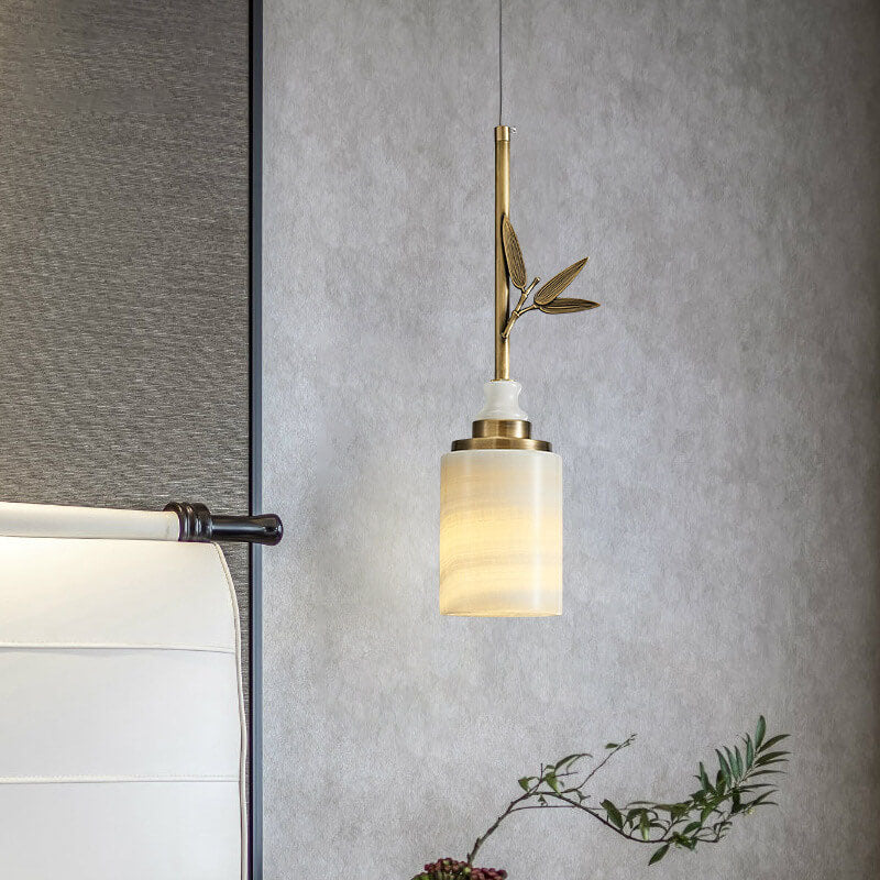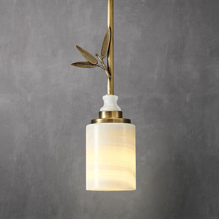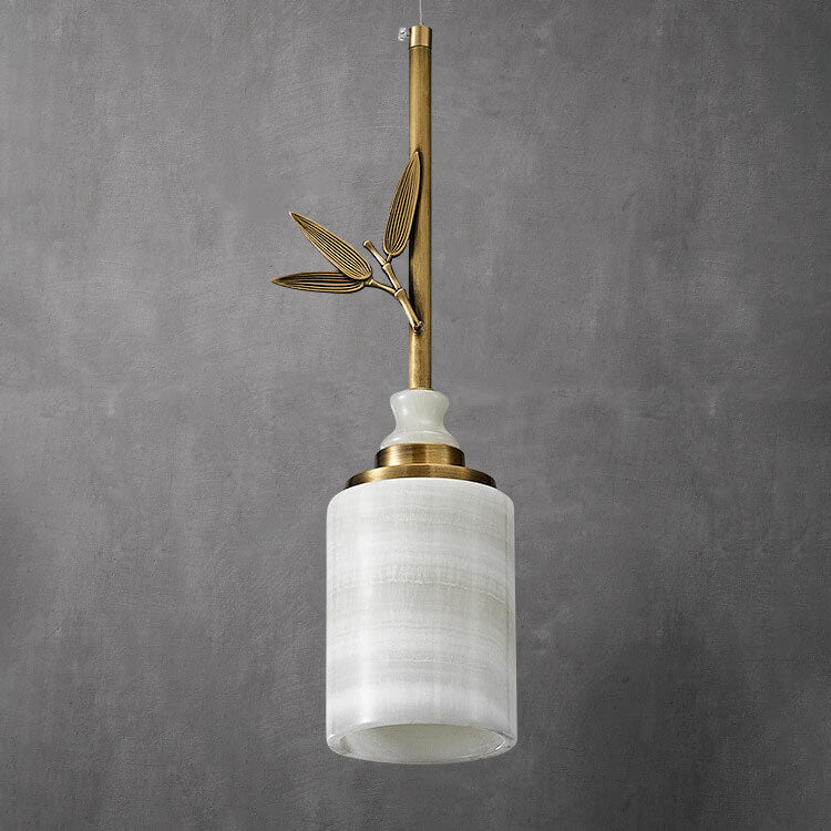 Modern Chinese Marble Column Brass 1-Light Pendant Light