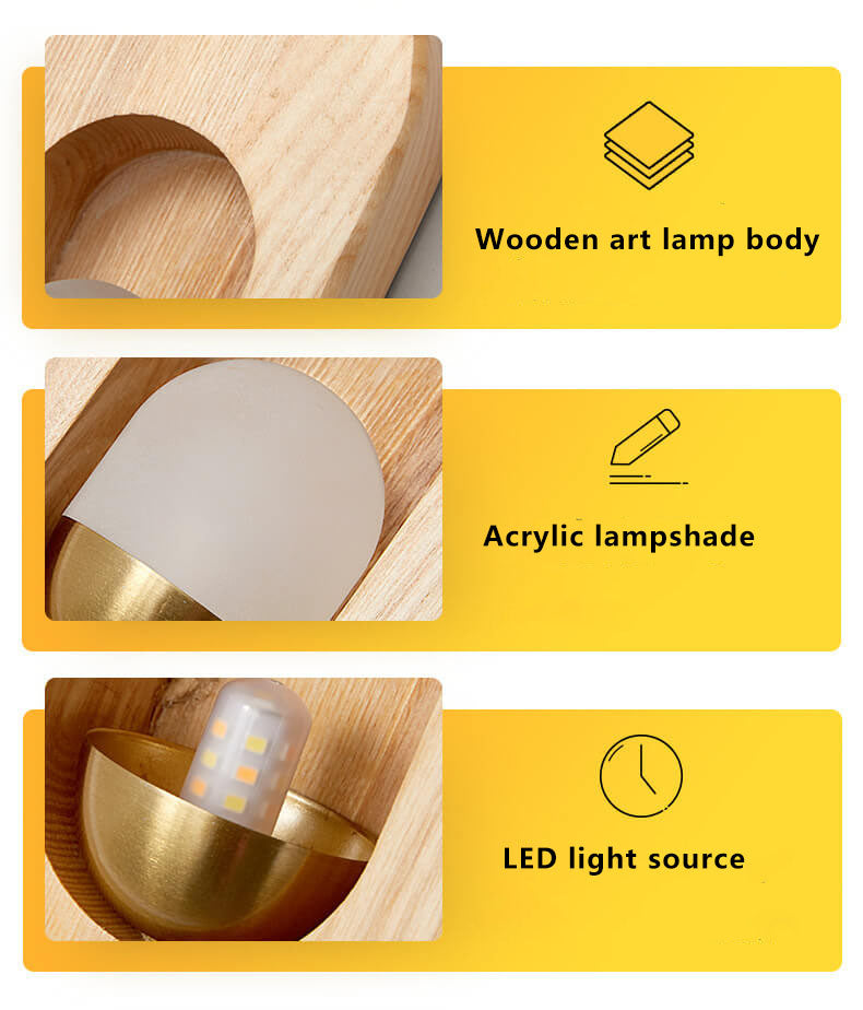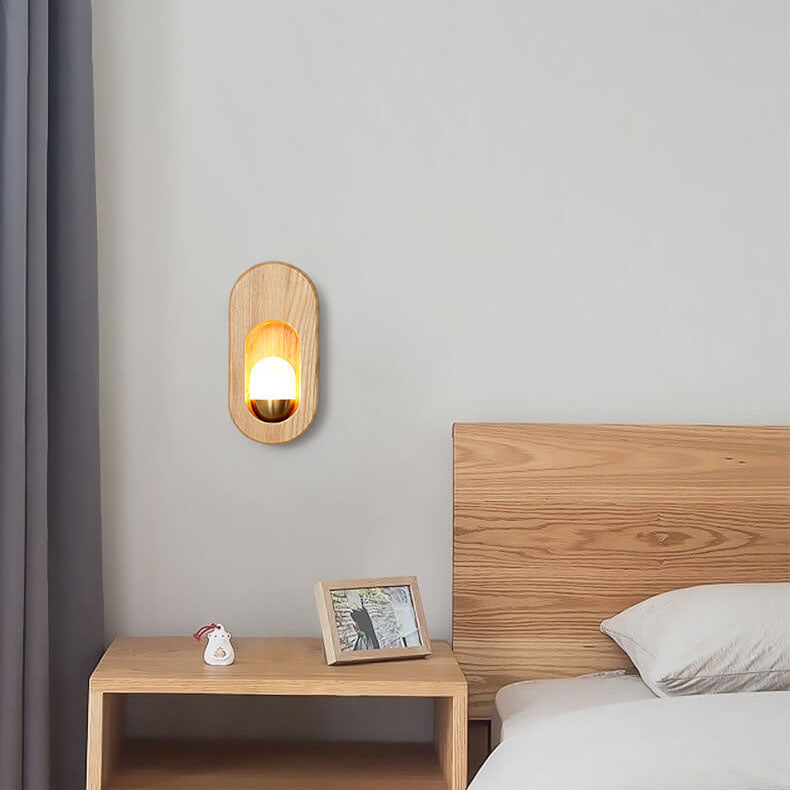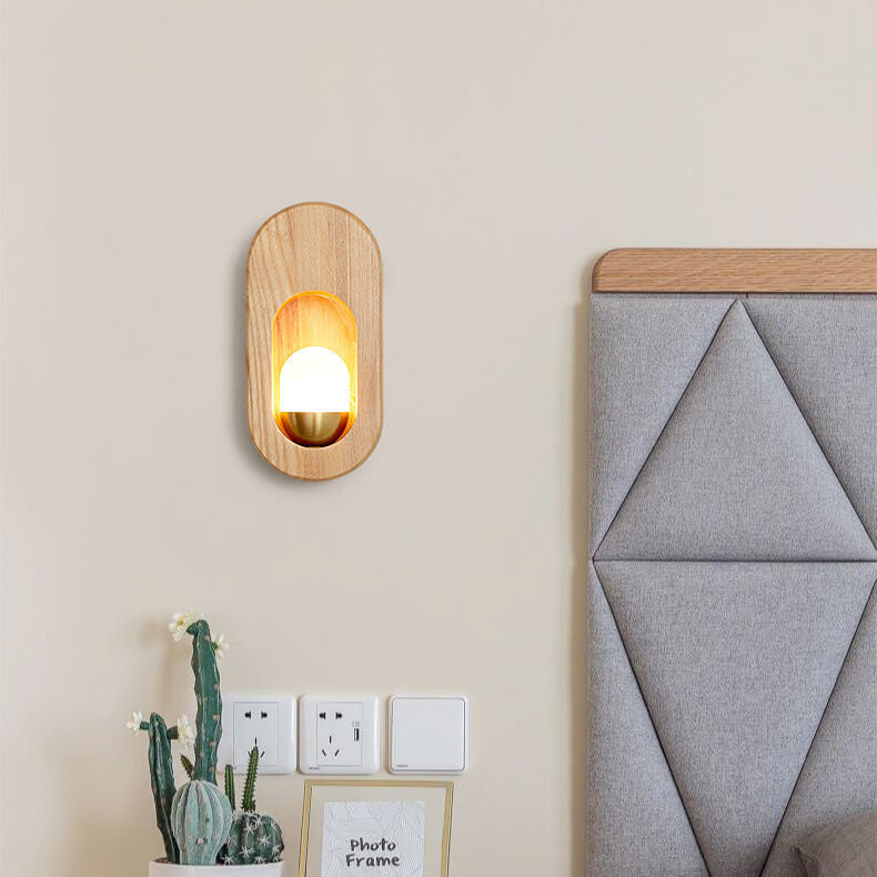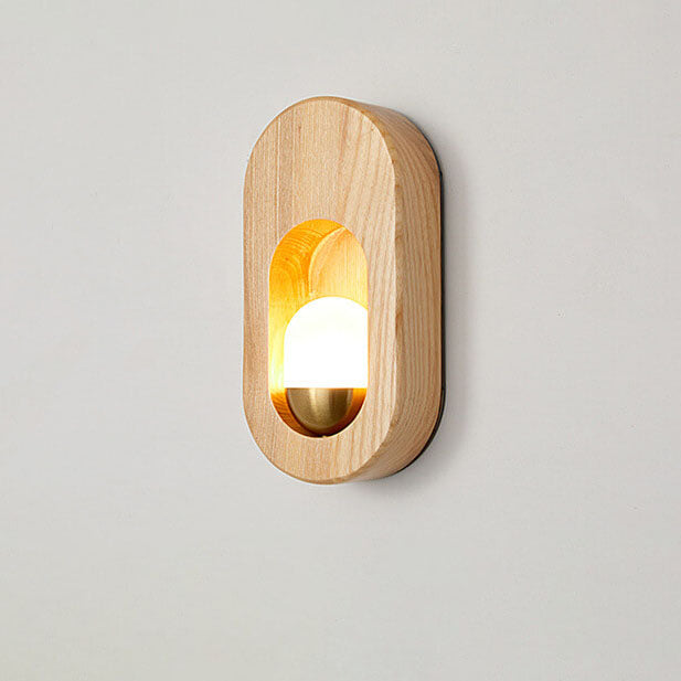 Modern Circle Ring Solid Wood 1-Light Wall Sconce Lamp