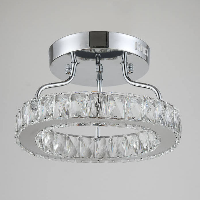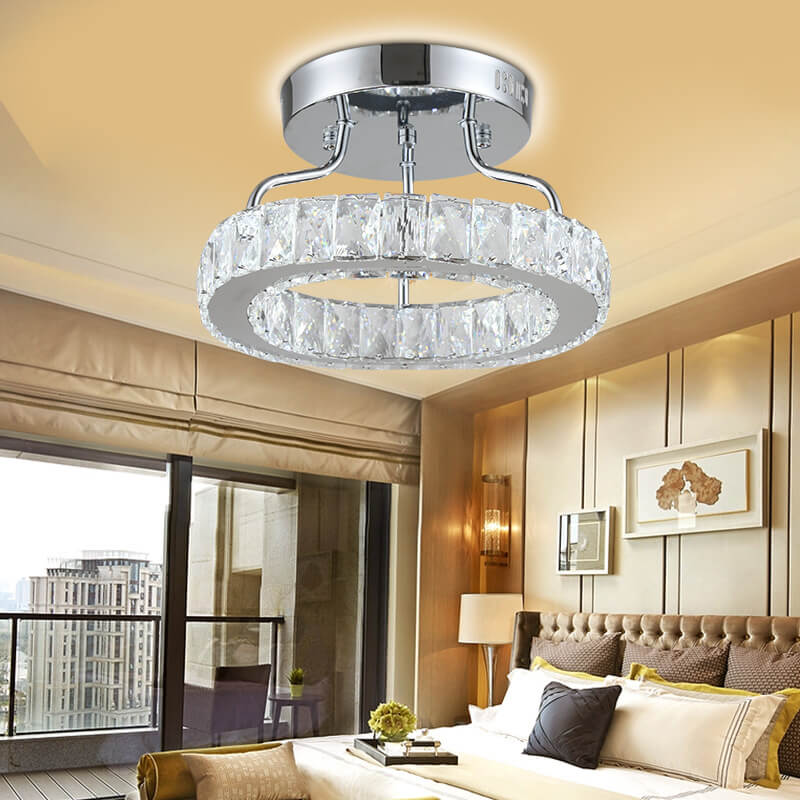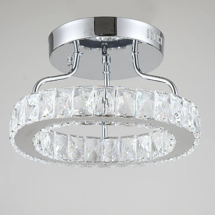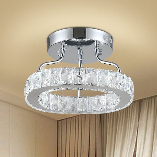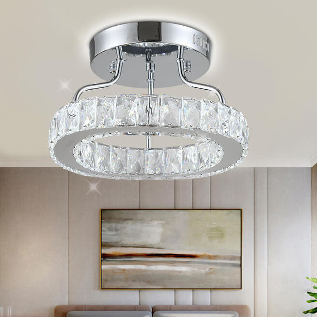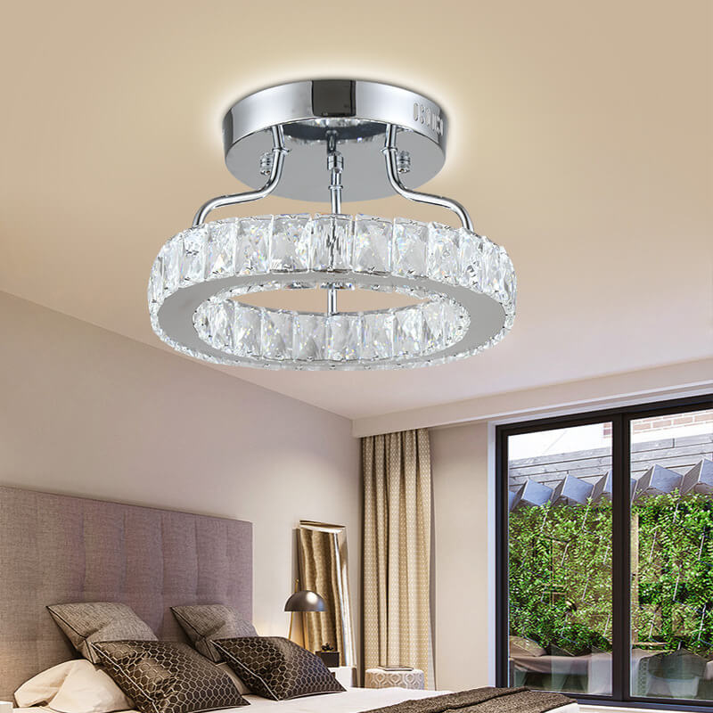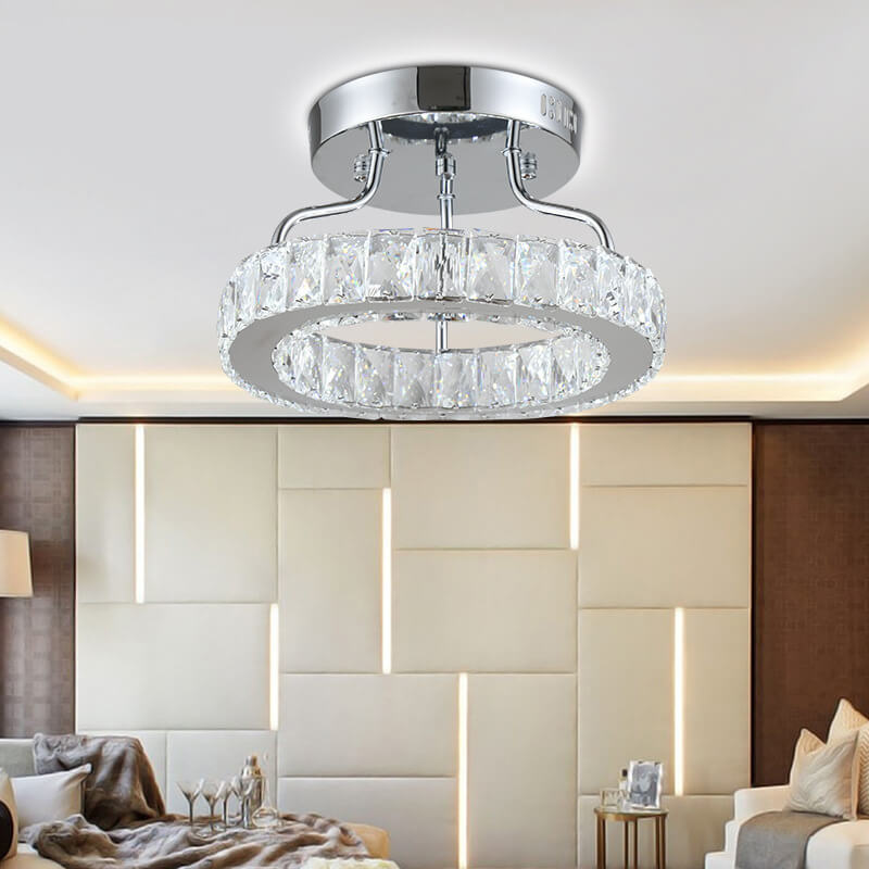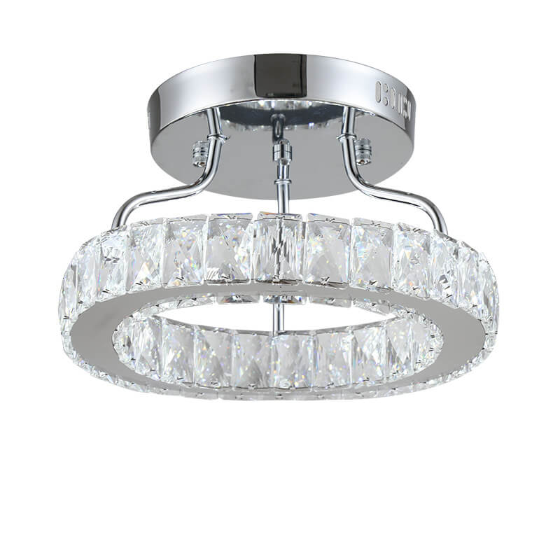 Modern Classic Crystal Round Chrome LED Semi-Flush Mount Ceiling Light