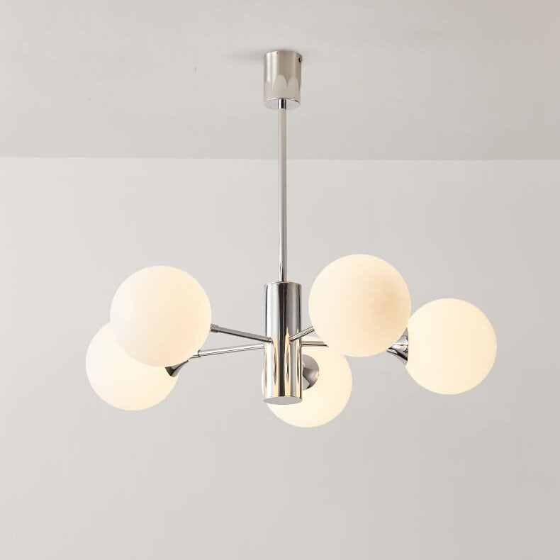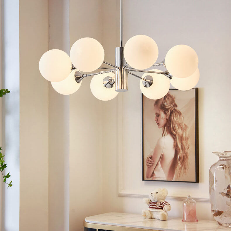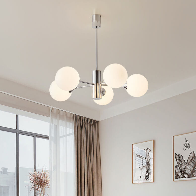 Modern Creative Magic Bean Milk White Glass Ball Chrome 3/5/8 Light Chandelier