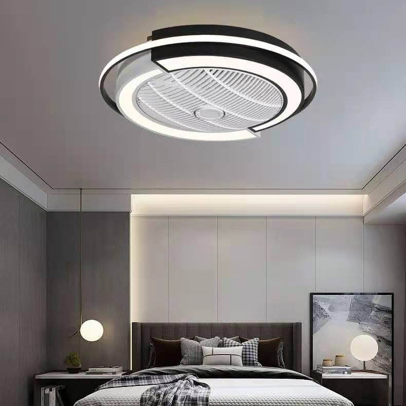 Modern Creative Round LED Semi-Flush Mount Ceiling Fan Light