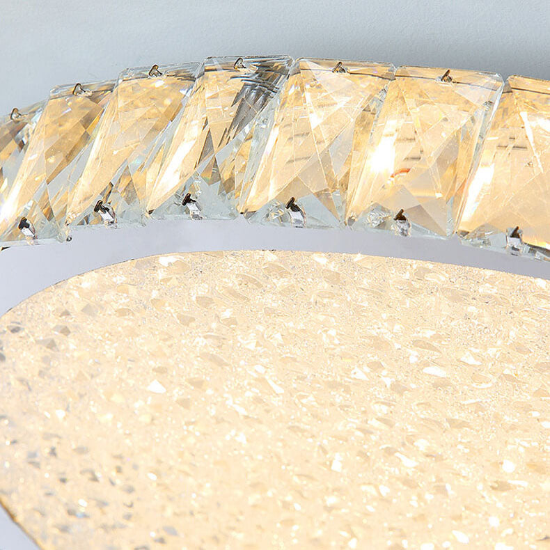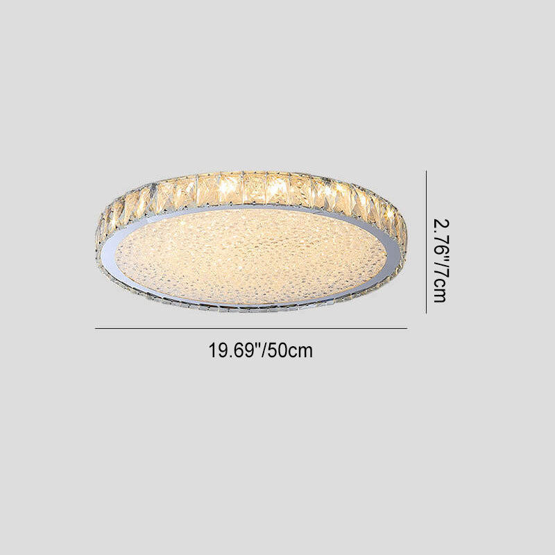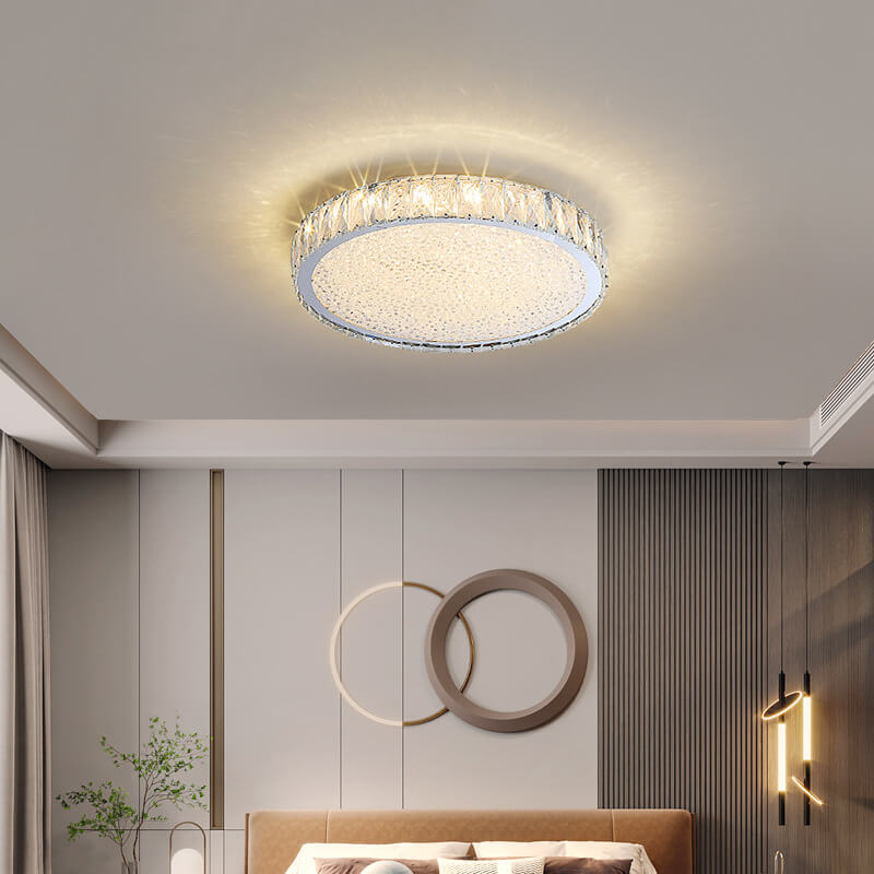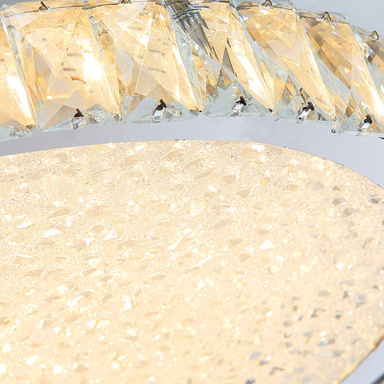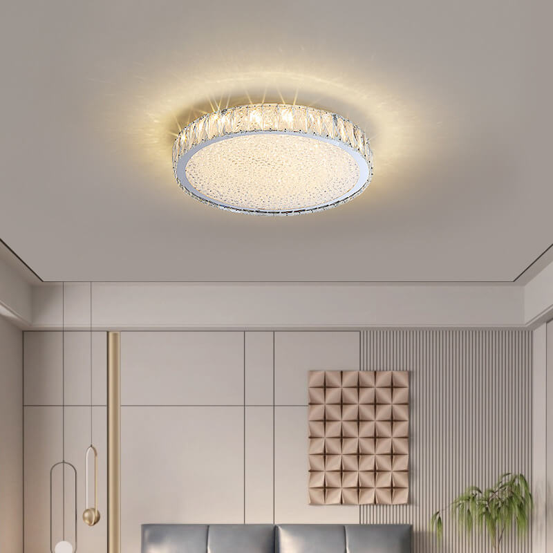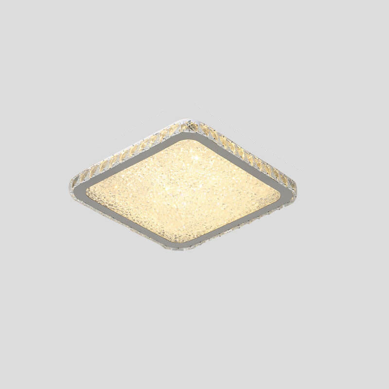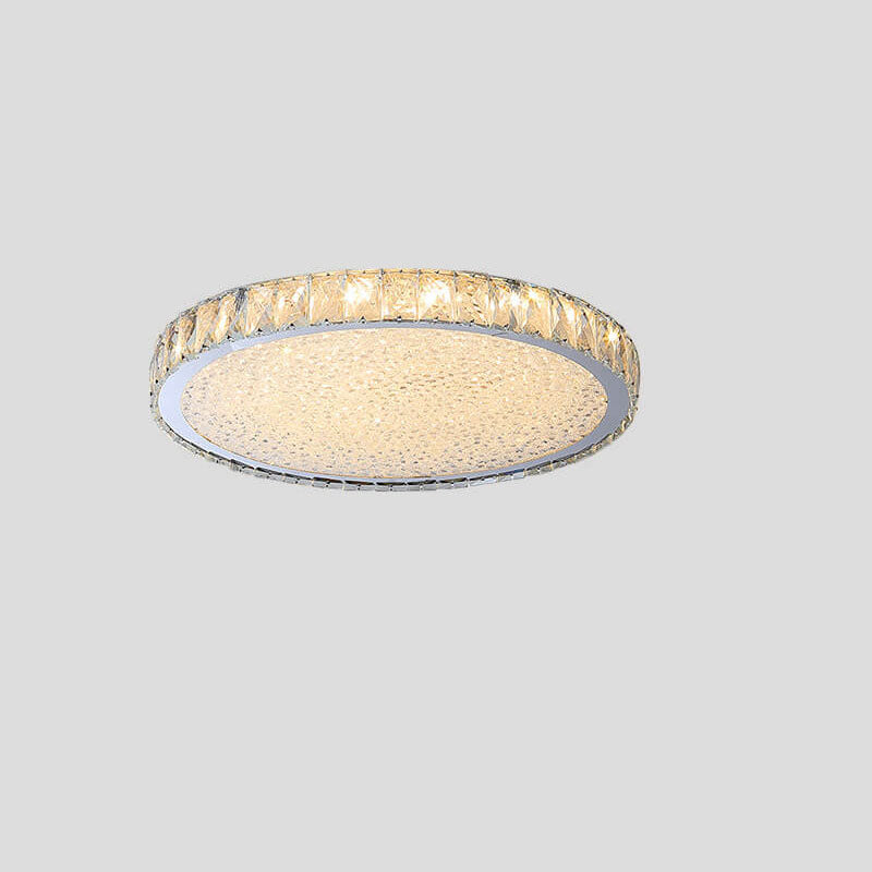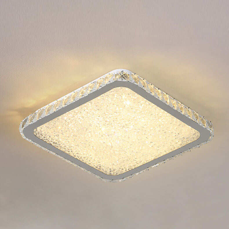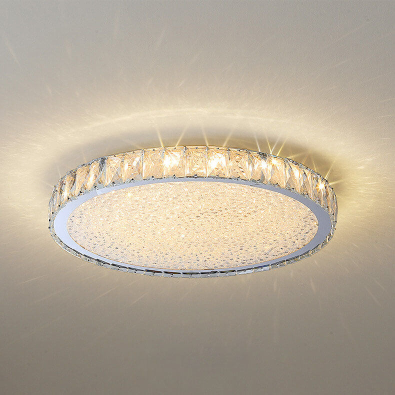 Modern Light Luxury Crystal Square Round Stainless Steel LED Flush Mount Ceiling Light