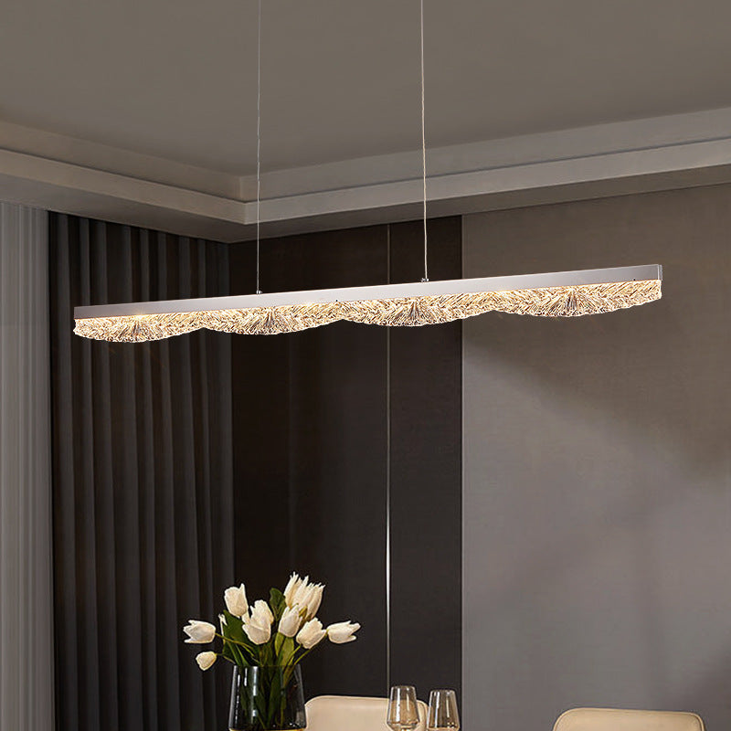 Modern Luxury Acrylic Stainless Steel Strip Wave Ice Texture LED Chandeliers Island Light For Dining Room
