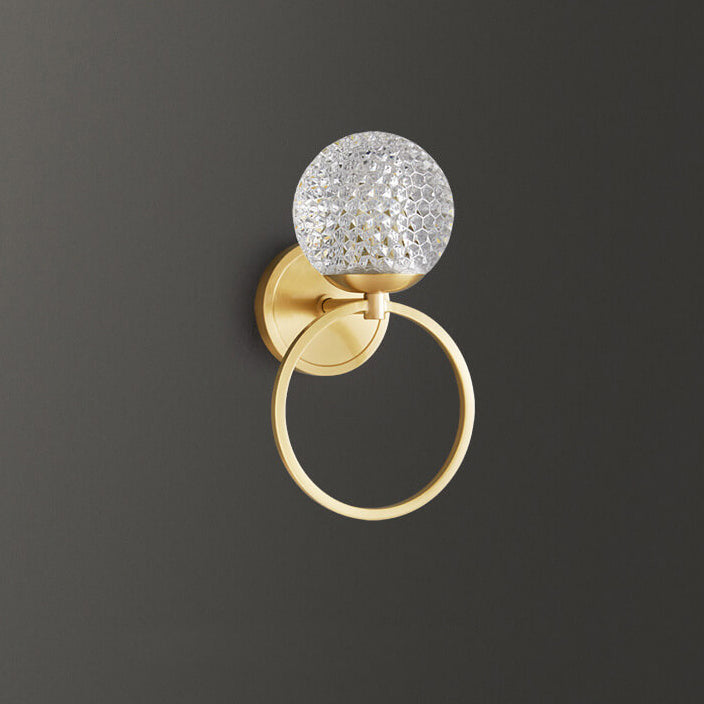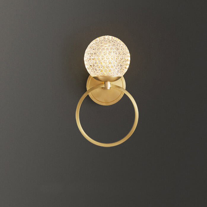 Modern Luxury Crystal Brass Hanging Ring 1-Light Wall Sconce Lamp