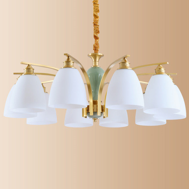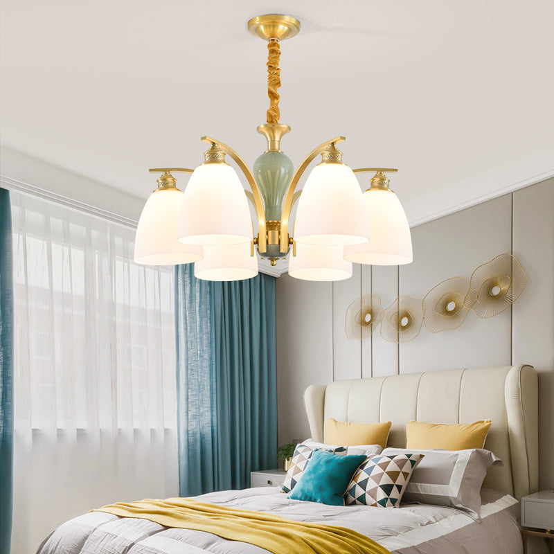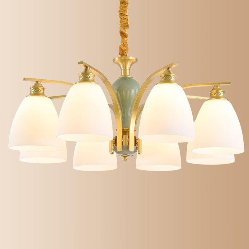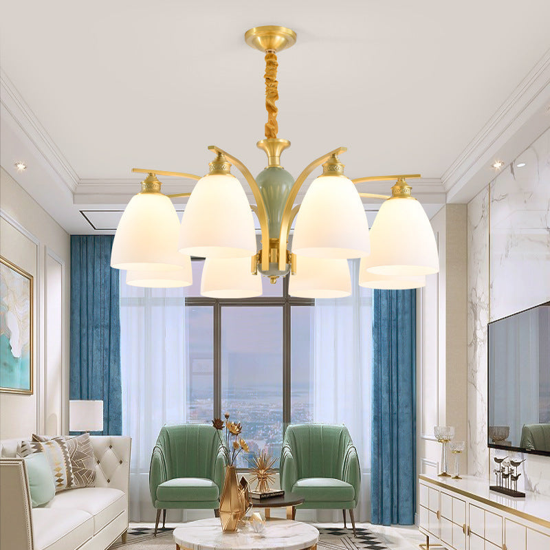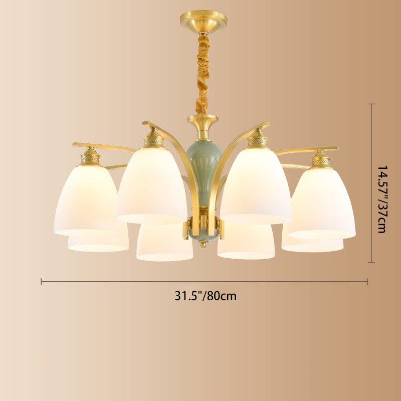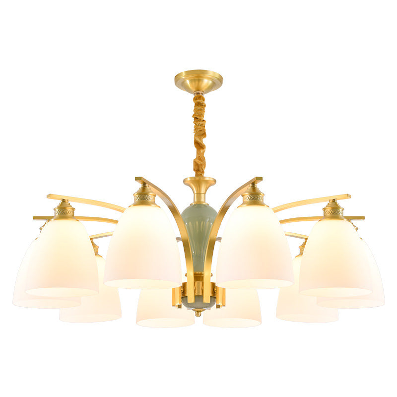 Modern Luxury Dome Copper Glass 3/6/8/10 Light Chandelier For Living Room