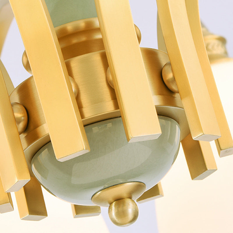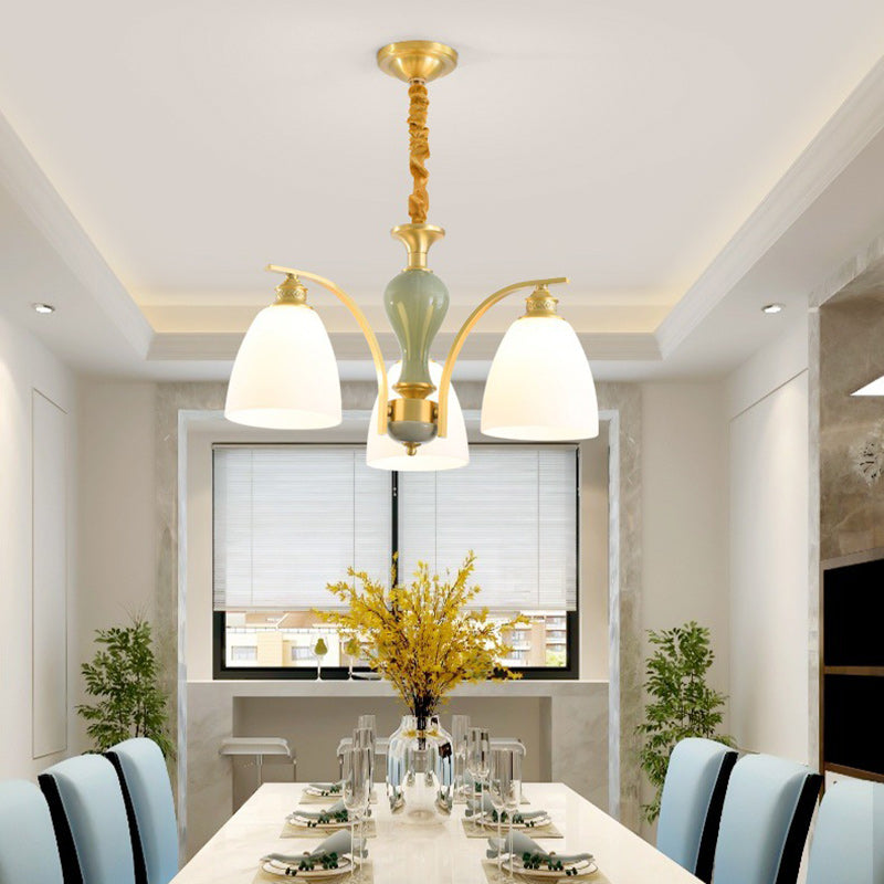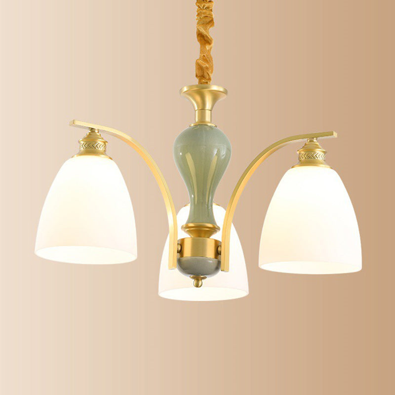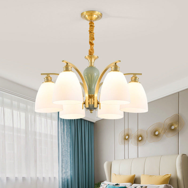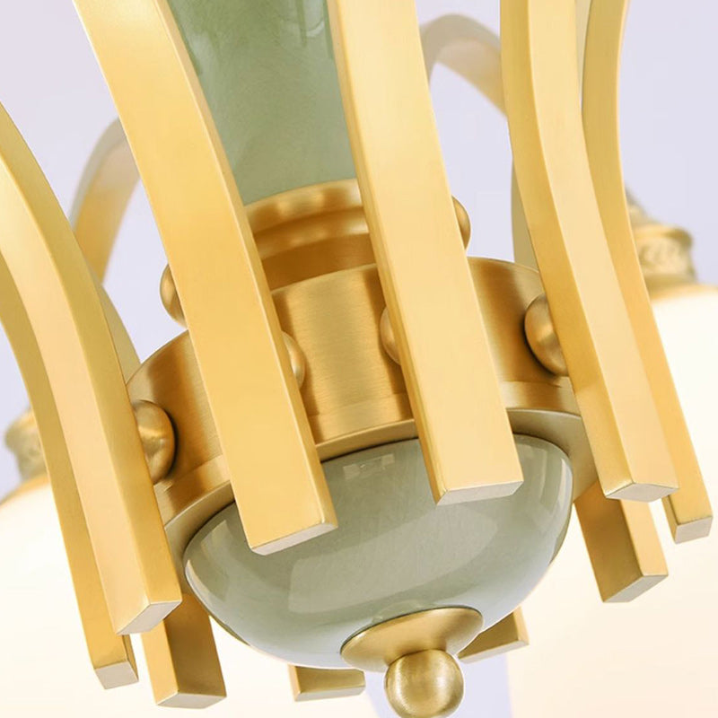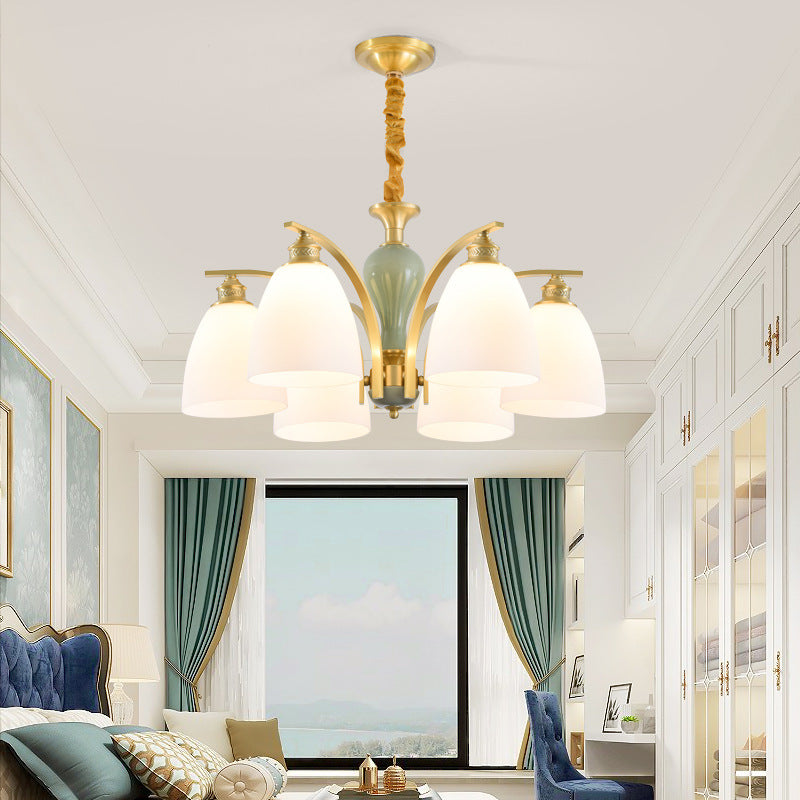 Modern Luxury Dome Copper Glass 3/6/8/10 Light Chandelier For Living Room