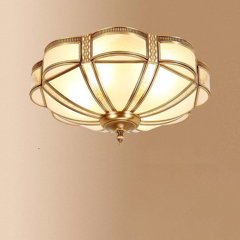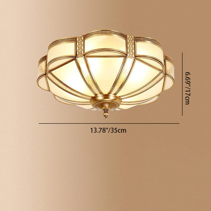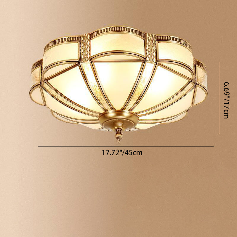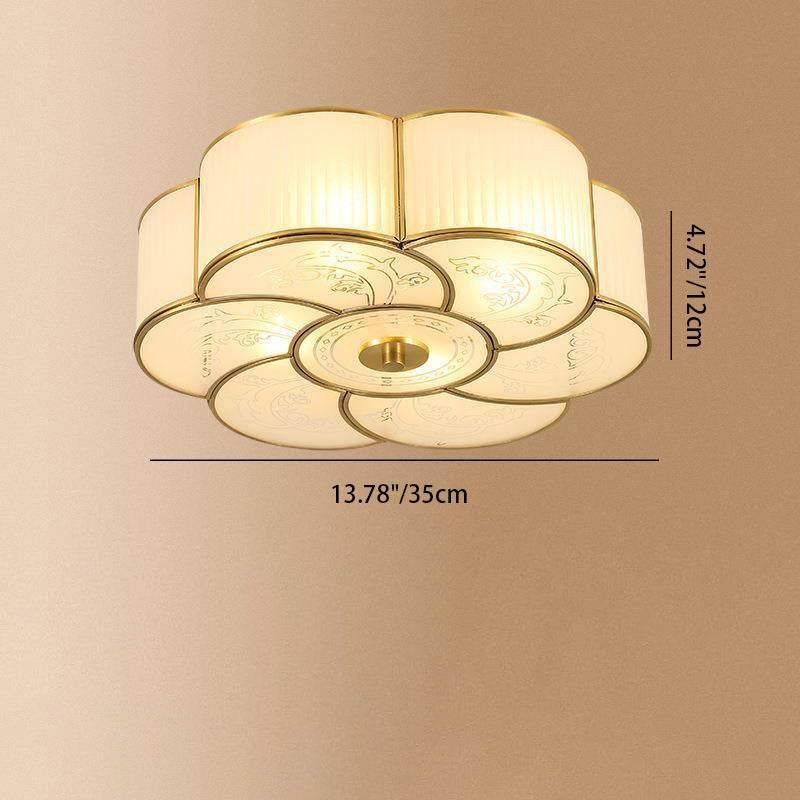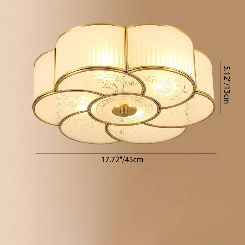 Modern Luxury Floral Pod Round Glass Copper 3/4 Light Flush Mount Ceiling Light For Living Room