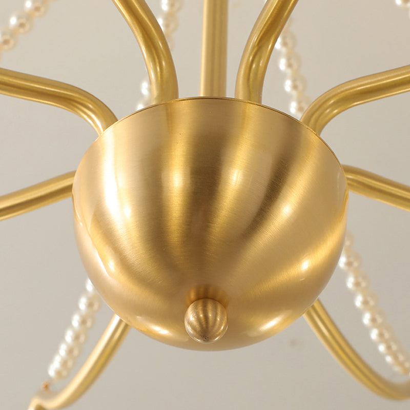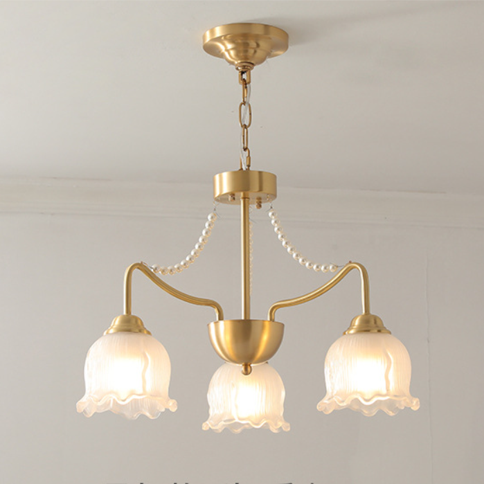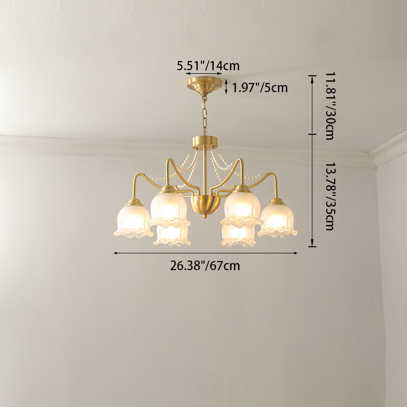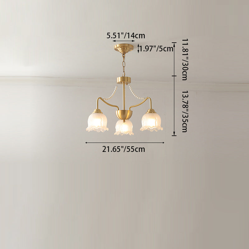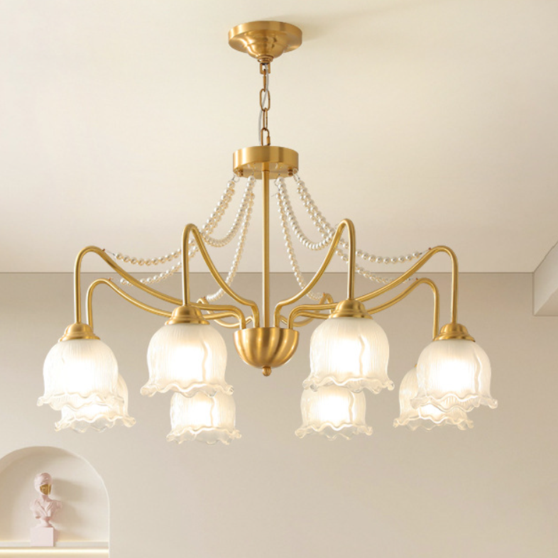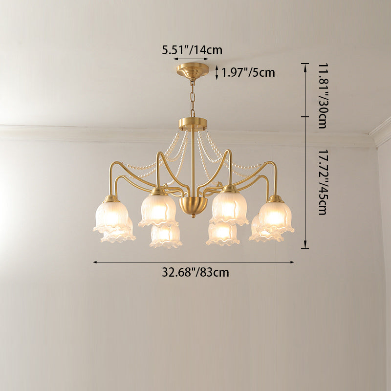 Modern Luxury Floral Round Branch Glass Pearl Brass 3/6/8 Light Chandelier For Living Room
