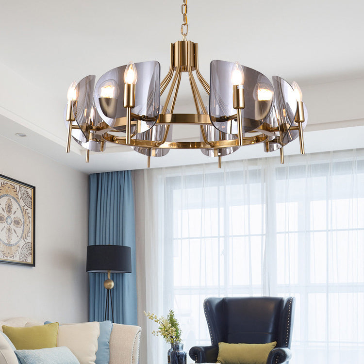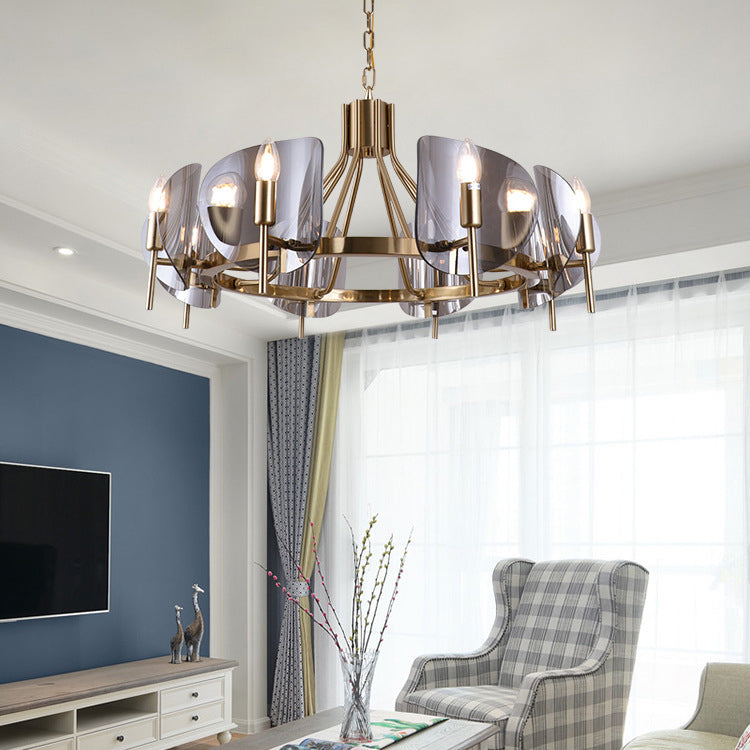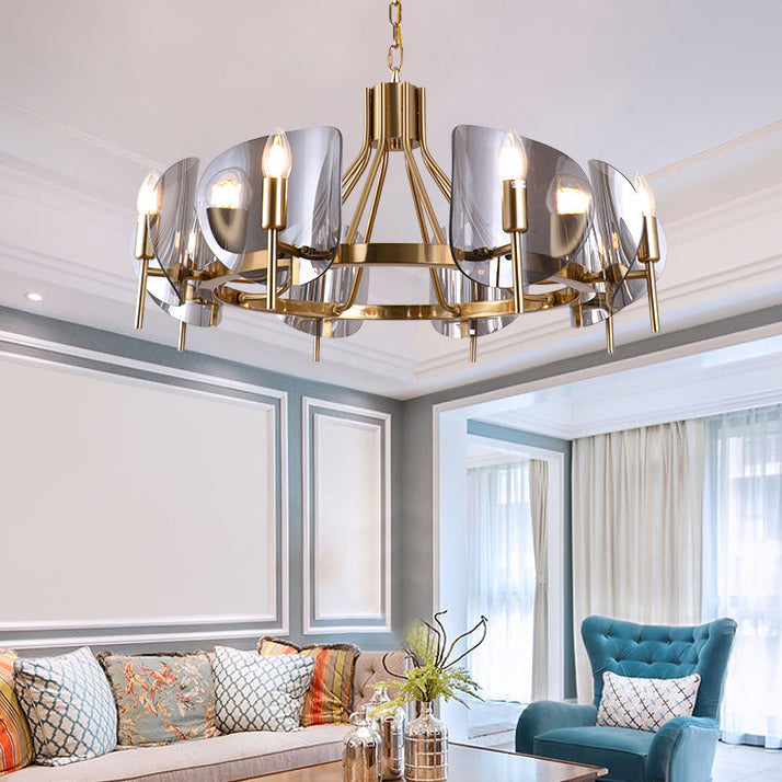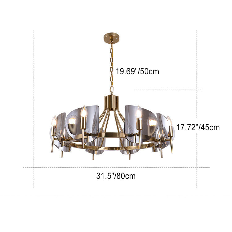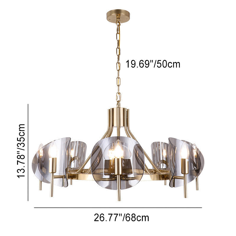 Modern Luxury Golden Finished Framed Curved Glass Panel 6/8-Light Chandelier For Dining Room