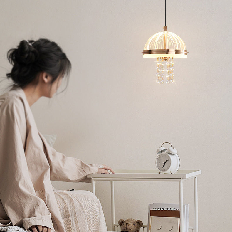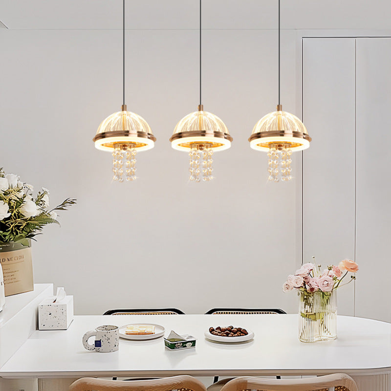 Modern Luxury Jellyfish Shape Iron Crystal Acrylic Lampshade LED Pendant Light For Dining Room