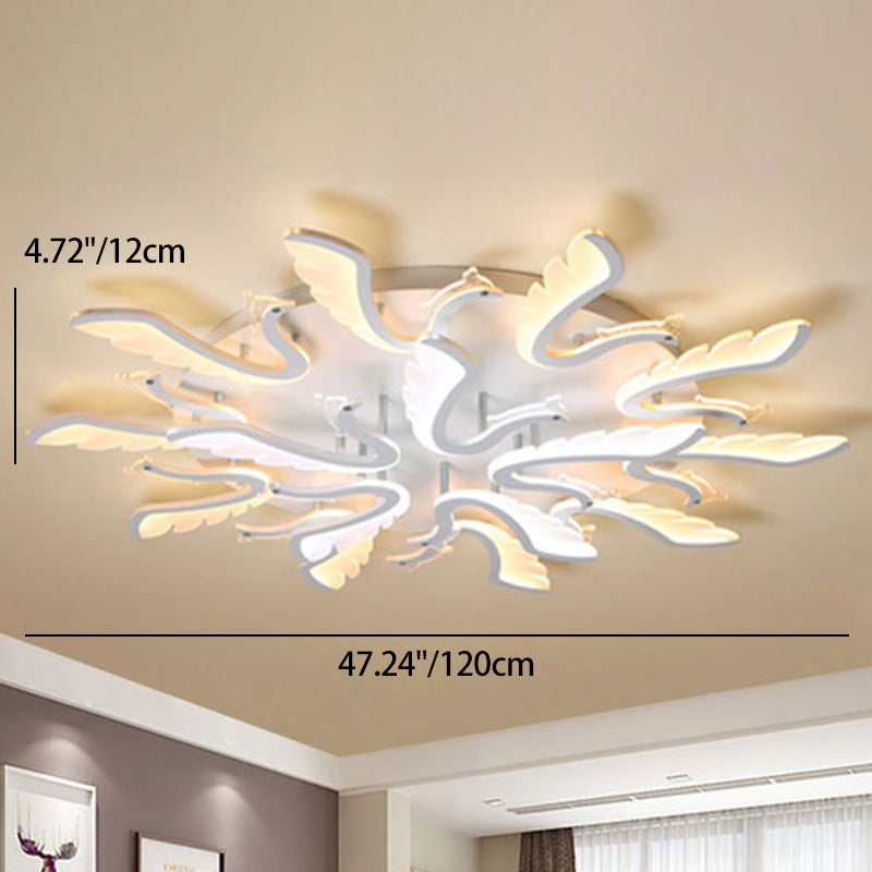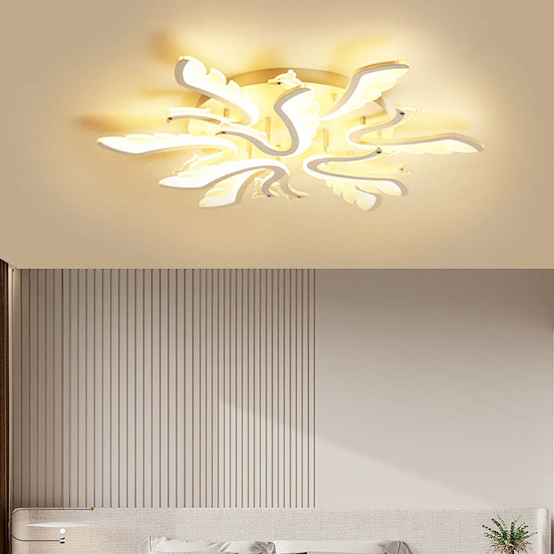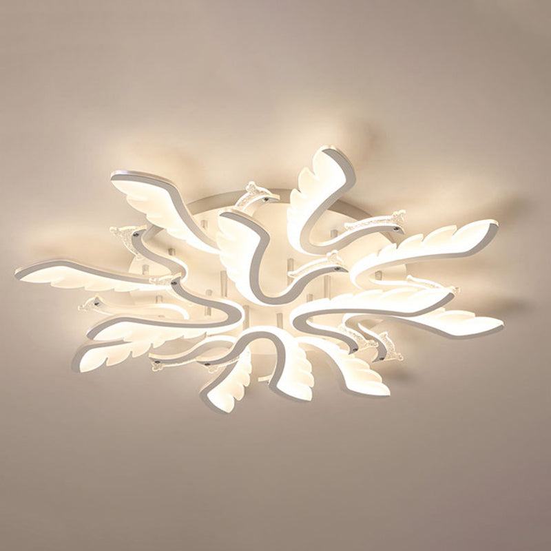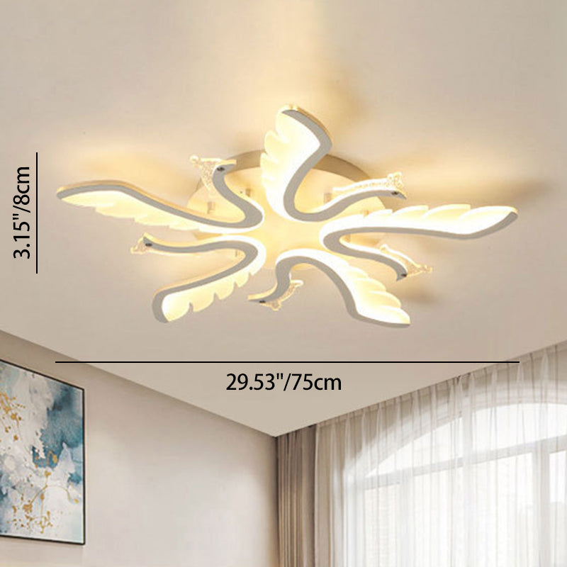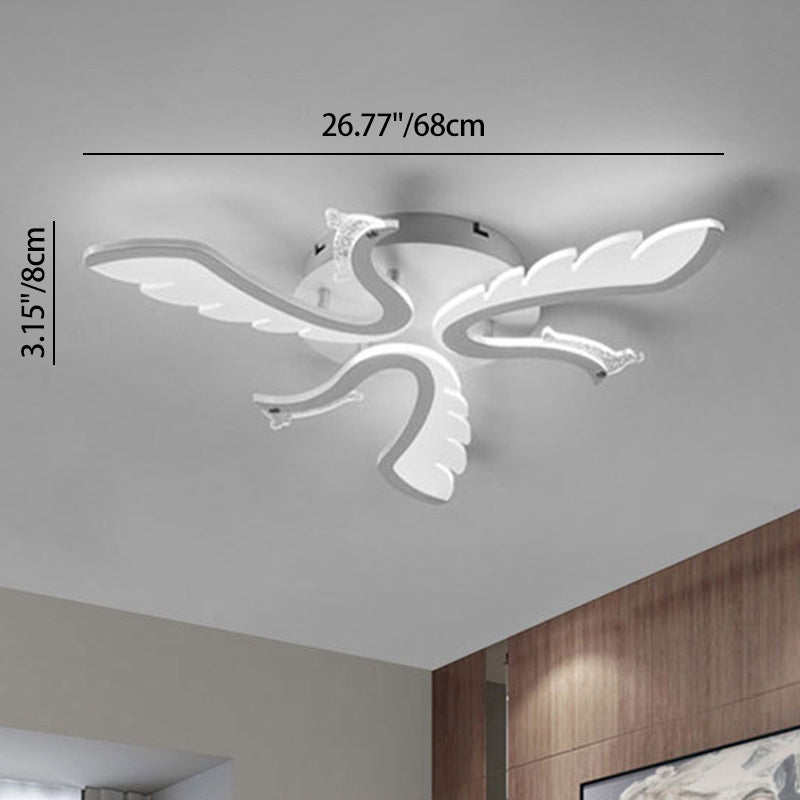 Modern Luxury Phoenix Shape Metal Acrylic LED Semi-Flush Mount Ceiling Light For Living Room