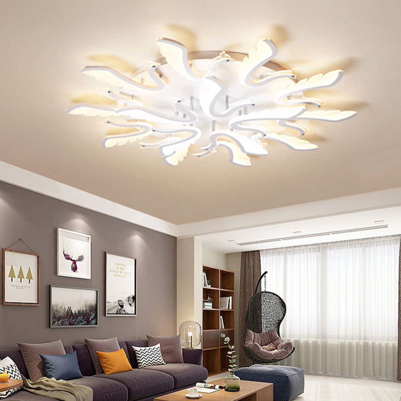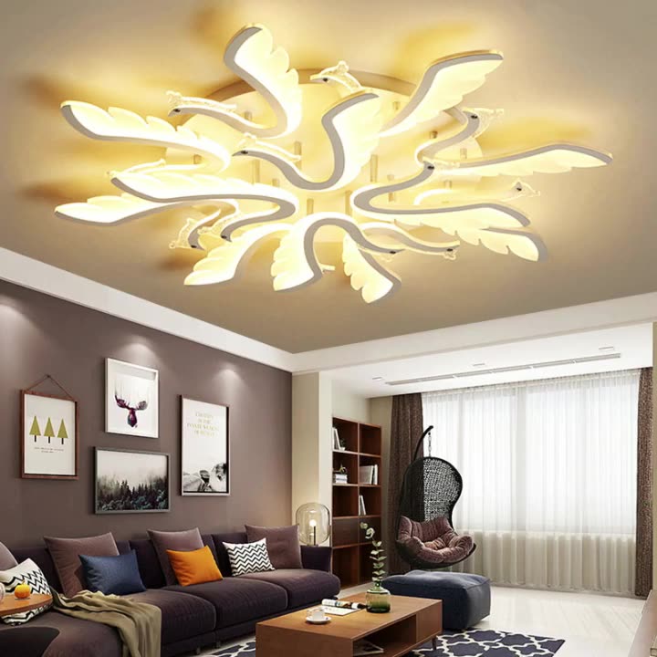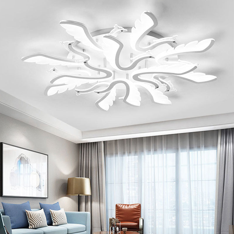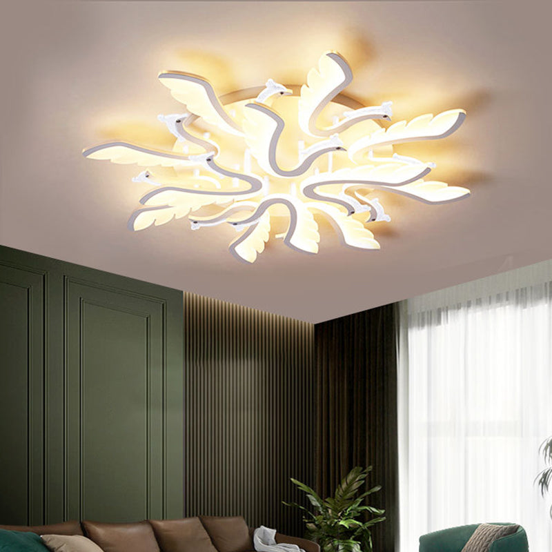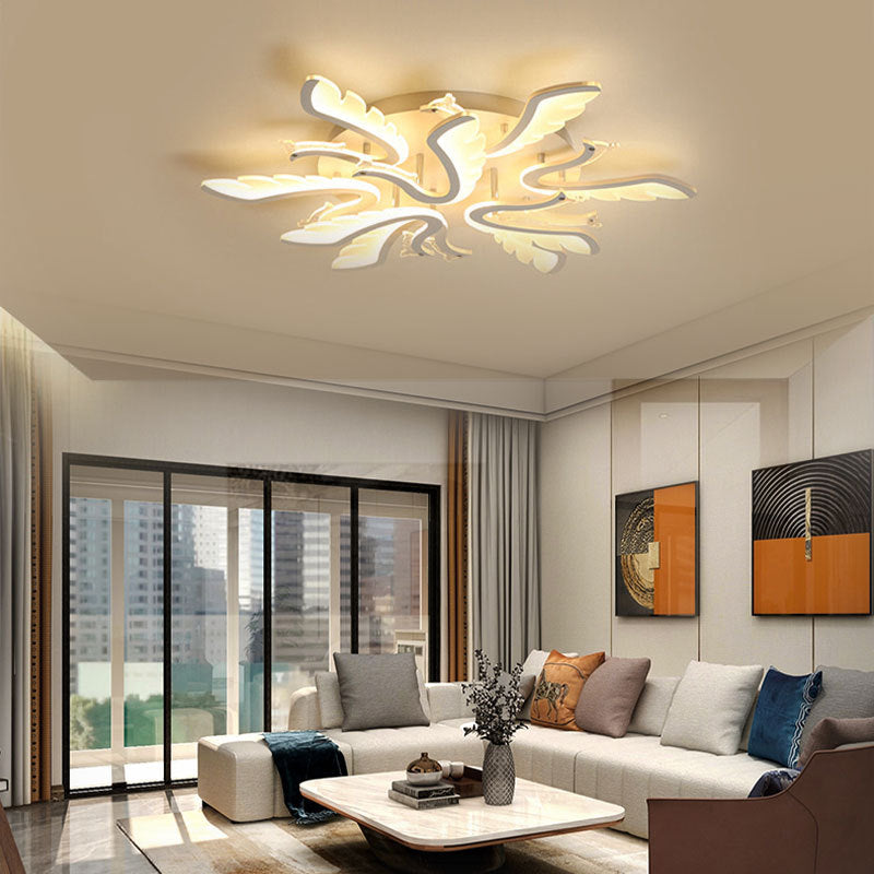 Modern Luxury Phoenix Shape Metal Acrylic LED Semi-Flush Mount Ceiling Light For Living Room