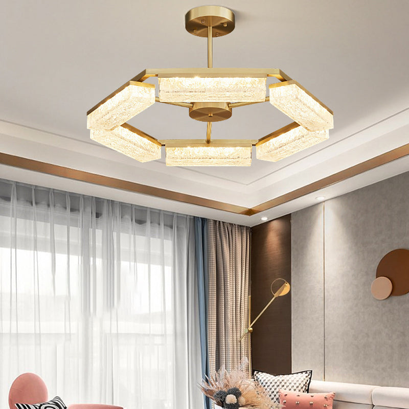 Modern Luxury Polygon Copper Green Resin LED Pendant Light For Living Room