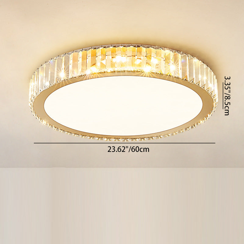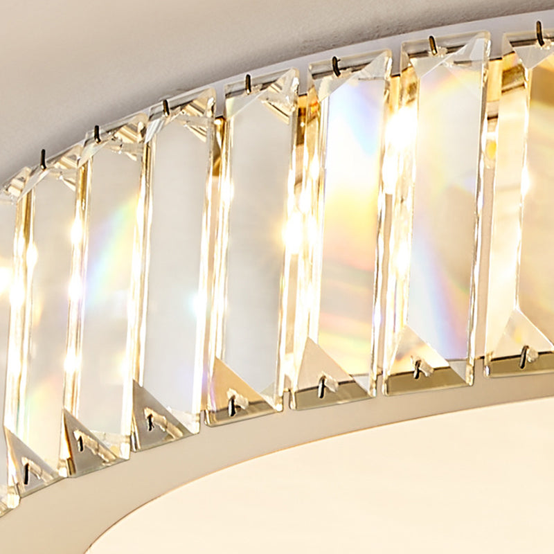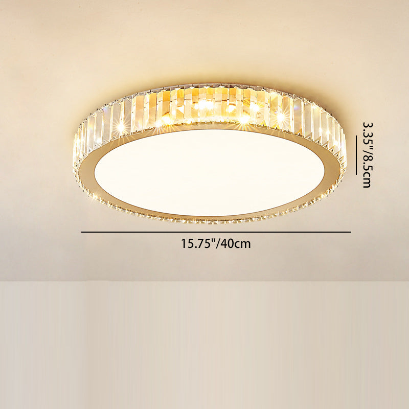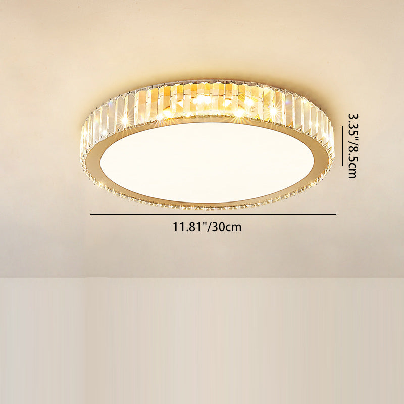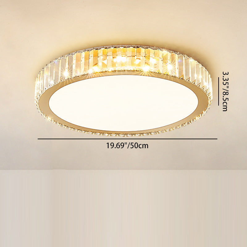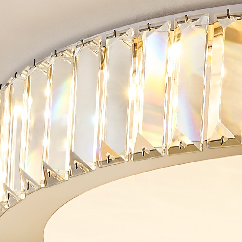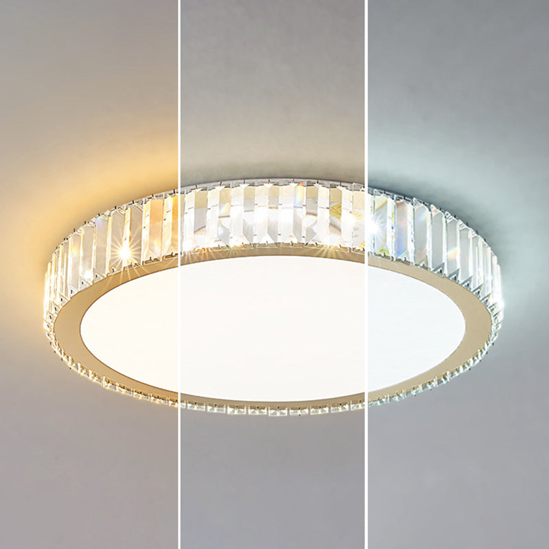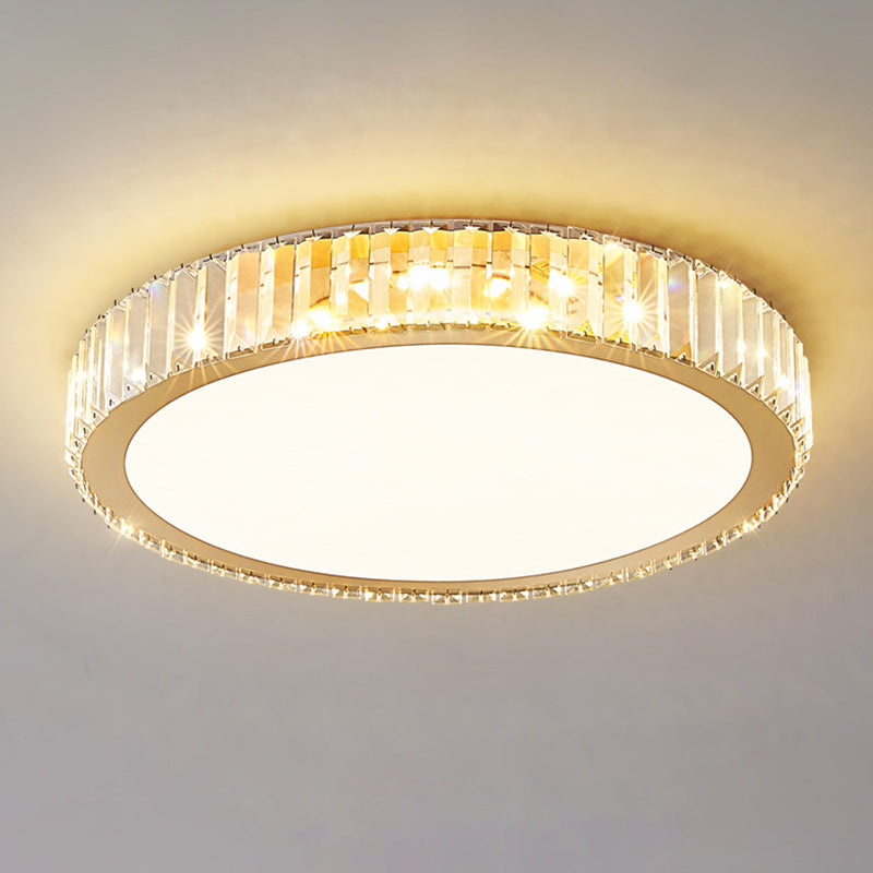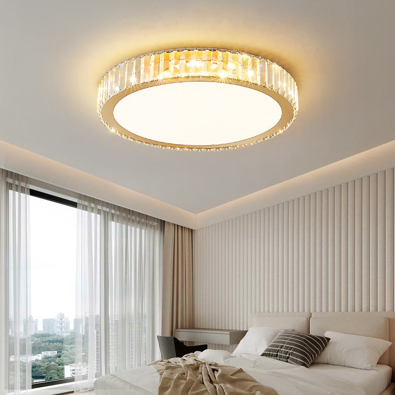 Modern Luxury Round Crystal Stainless Steel LED Flush Mount Ceiling Light For Bedroom