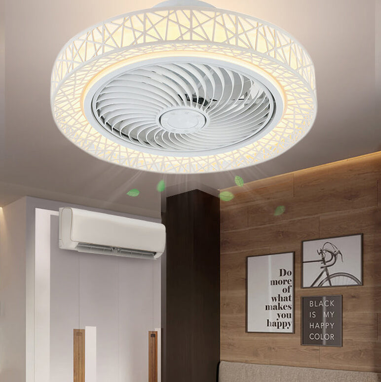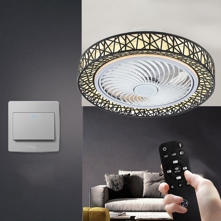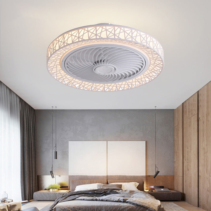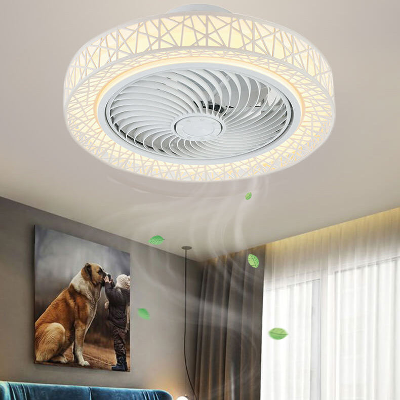 Modern Luxury Round Lace LED Flush Mount Ceiling Fan Light