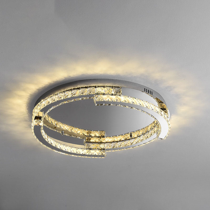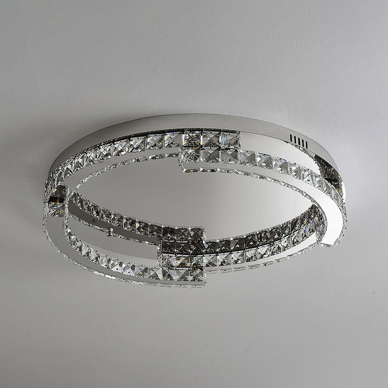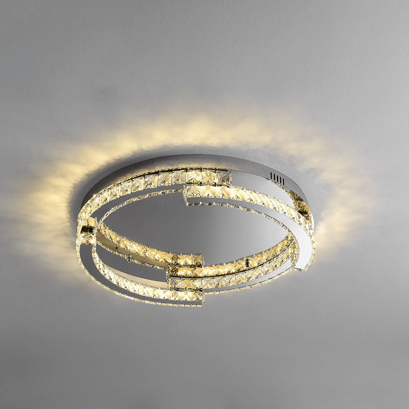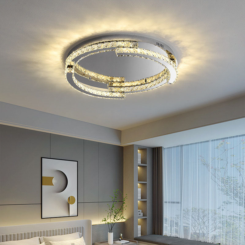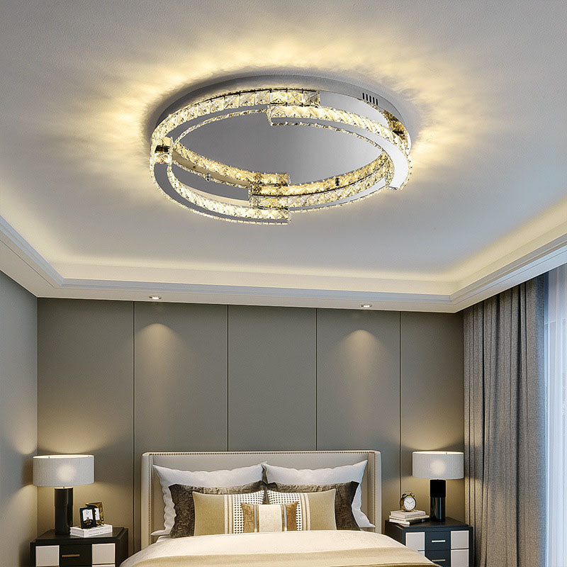 Modern Luxury Round Stainless Steel Crystal LED Flush Mount Ceiling Light For Bedroom