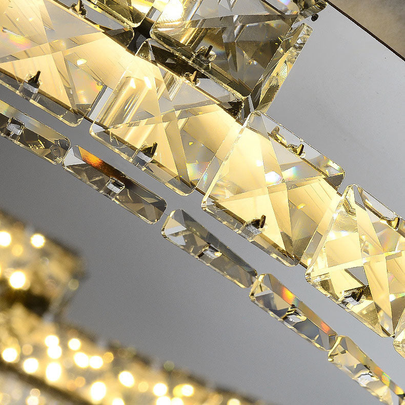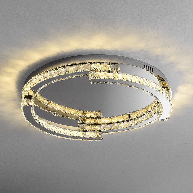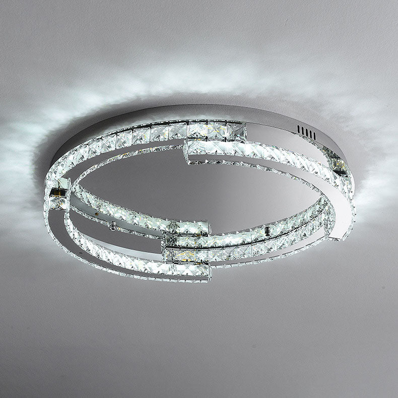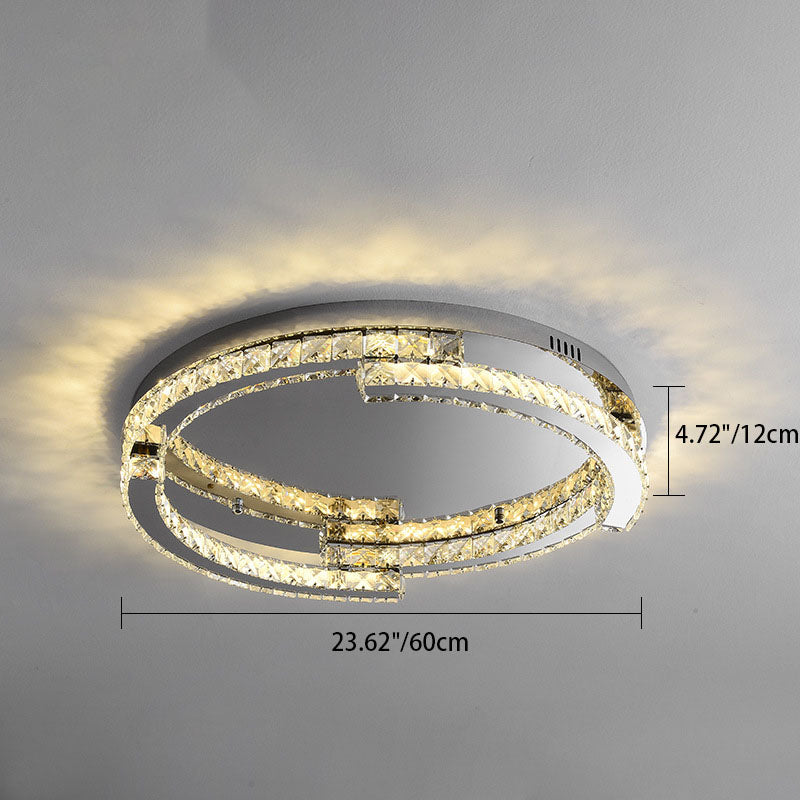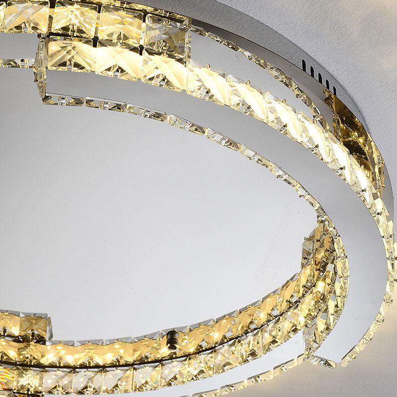 Modern Luxury Round Stainless Steel Crystal LED Flush Mount Ceiling Light For Bedroom