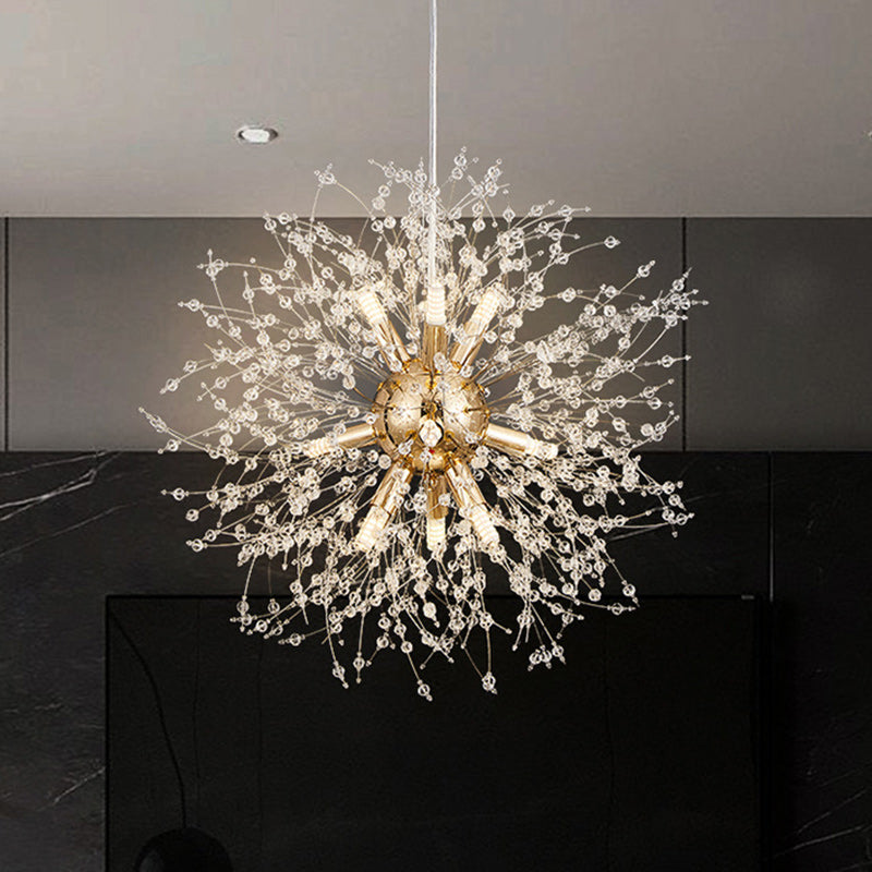 Modern Luxury Stainless Steel Crystal Hardware Ball Dandelion 9/12 Light Chandeliers For Dining Room
