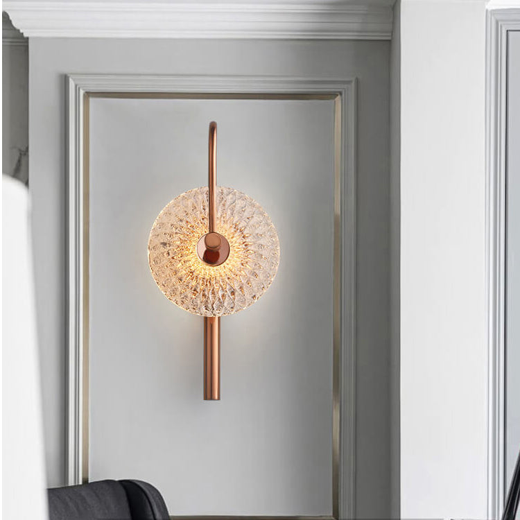Modern Luxury Textured Glass Round Curved Arm LED Wall Sconce Lamp