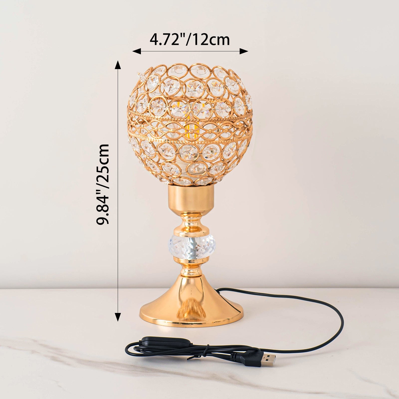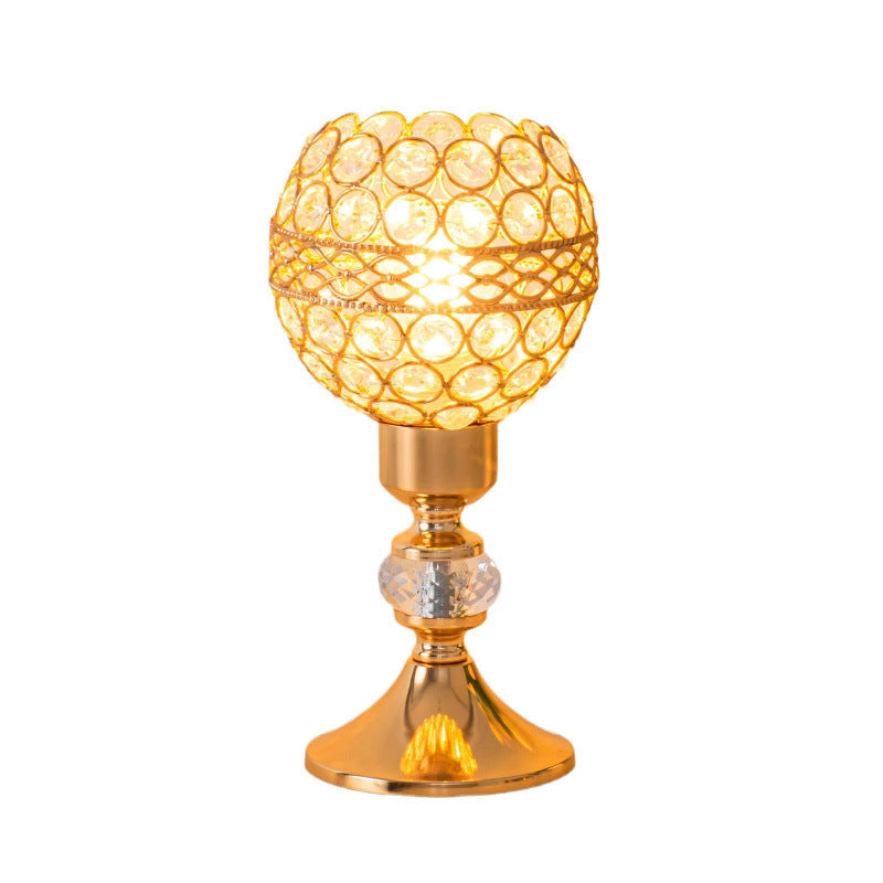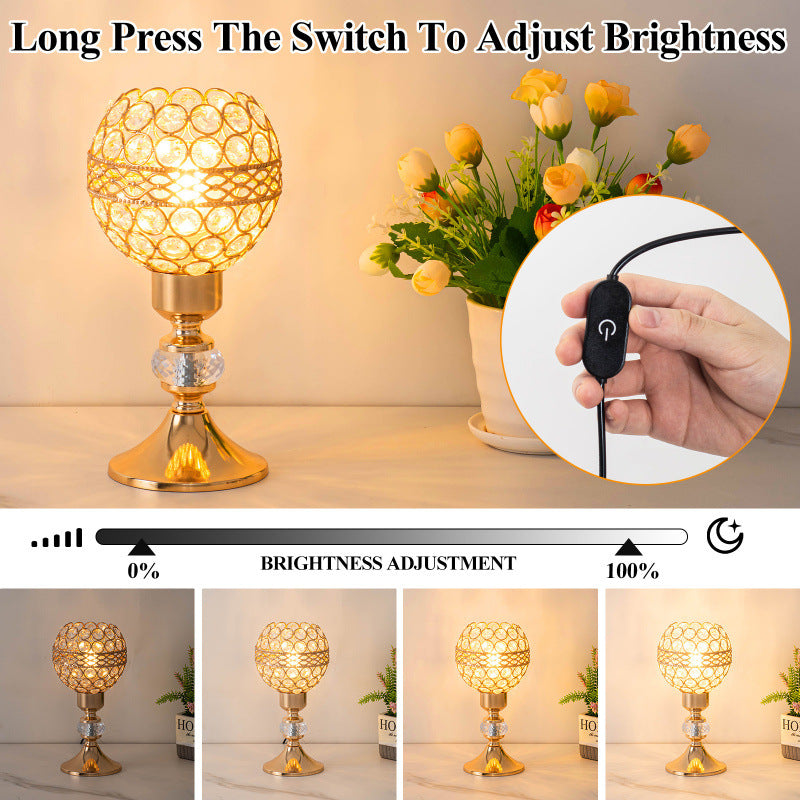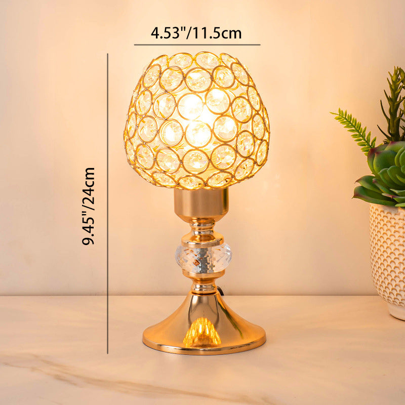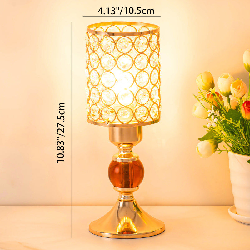 Modern Luxury USB Iron Crystal Cylinder Lattice Bead 1-Light Table Lamp For Bedside