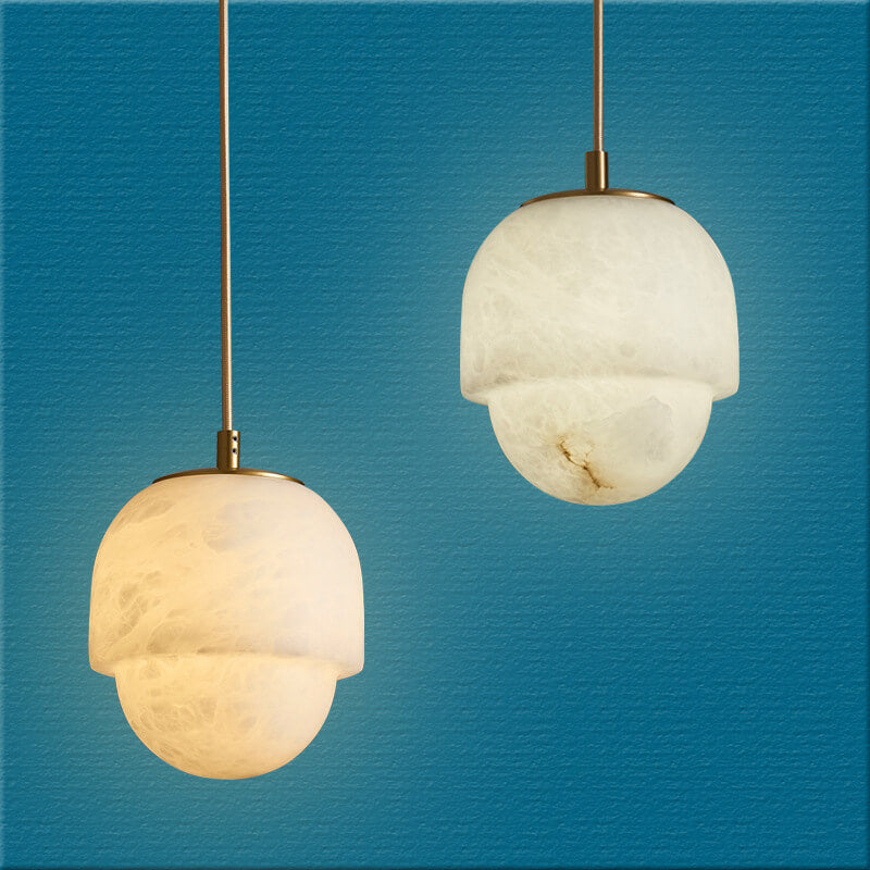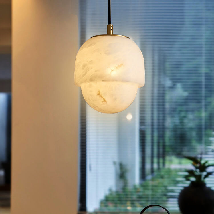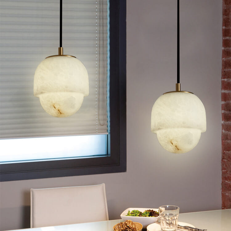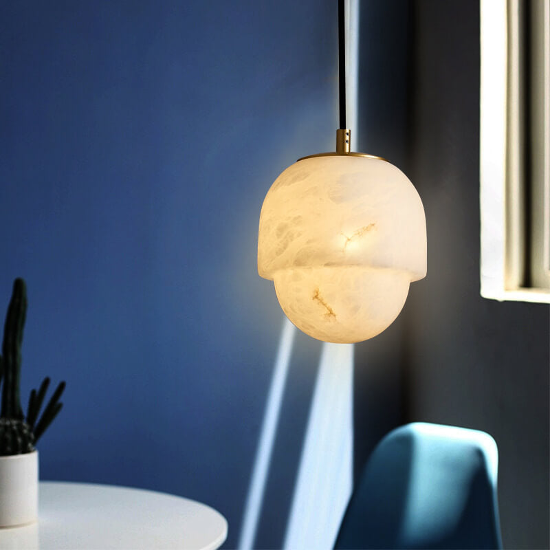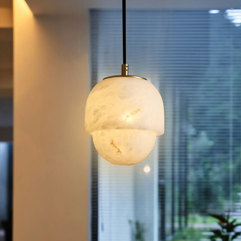 Modern Marble Minimalistic Spherical 1-Light Pendant Light