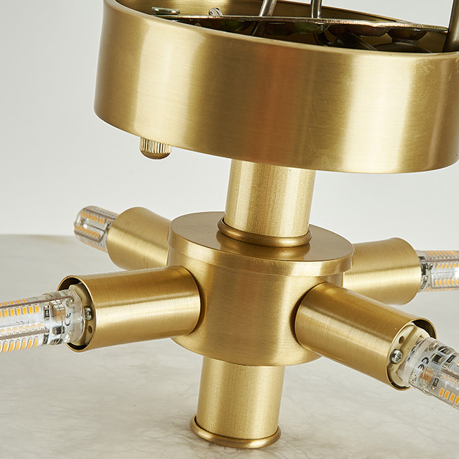 Modern Mid-Century Copper & Alabaster Clock-Inspired Round 3/4/5/6-Light Semi-Flush Mount Ceiling Light For Bedroom And Hallway