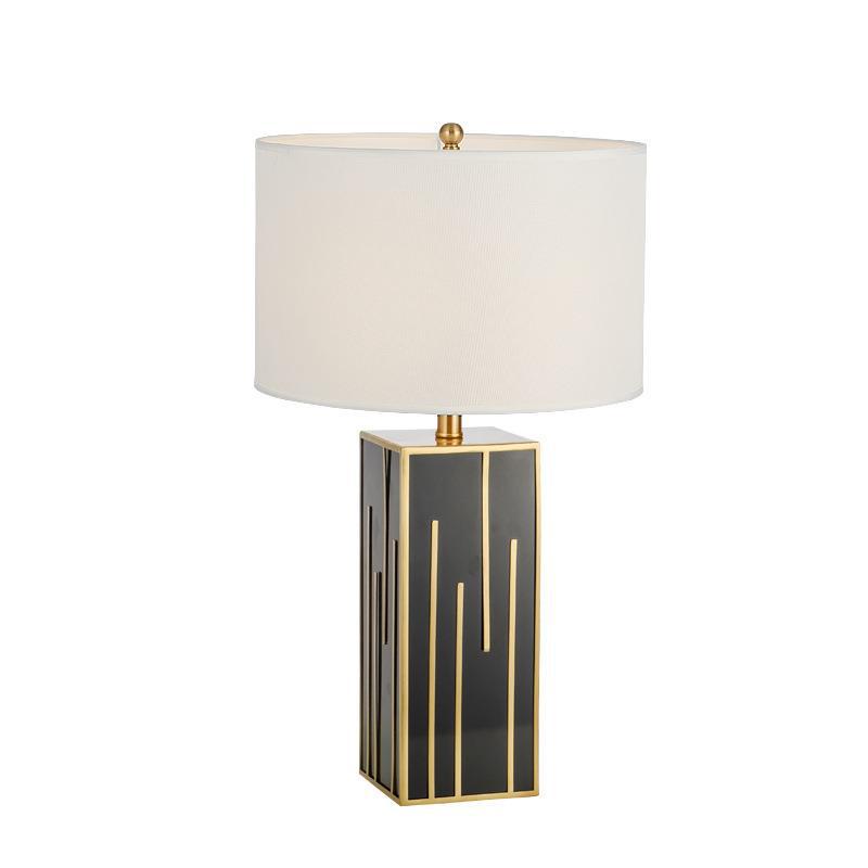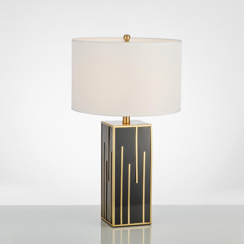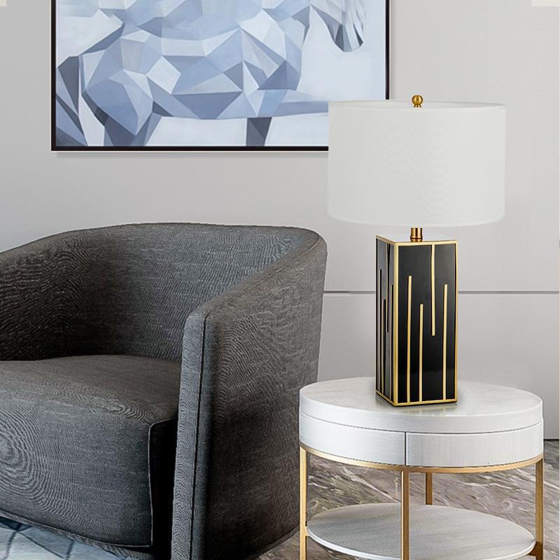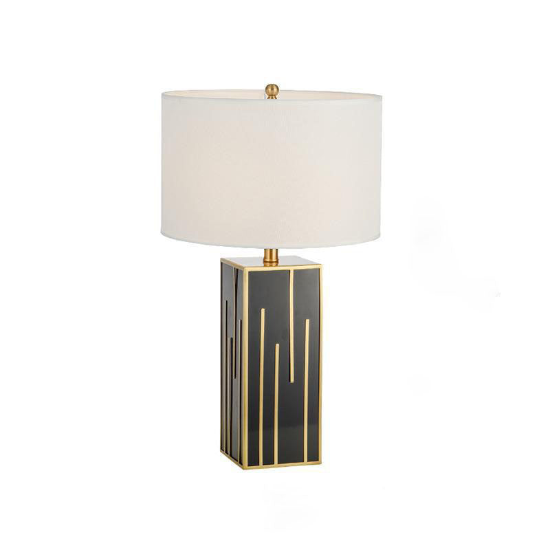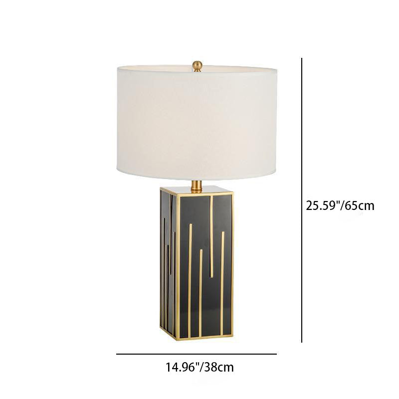 Modern Mid-Century Fabric Drum Square Column Hardware 1-Light Table Lamp For Study
