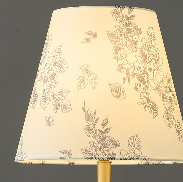 Modern Mid-Century Frustum Cone Copper Black Walnut Wood Fabric 1-Light Table Lamp For Bedroom