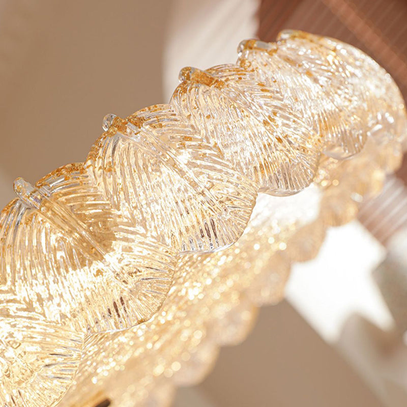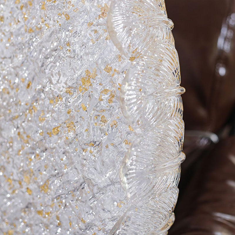 Modern Mid-Century Iron And Resin Round Leaf Texture LED Semi-Flush Mount Light For Living Room