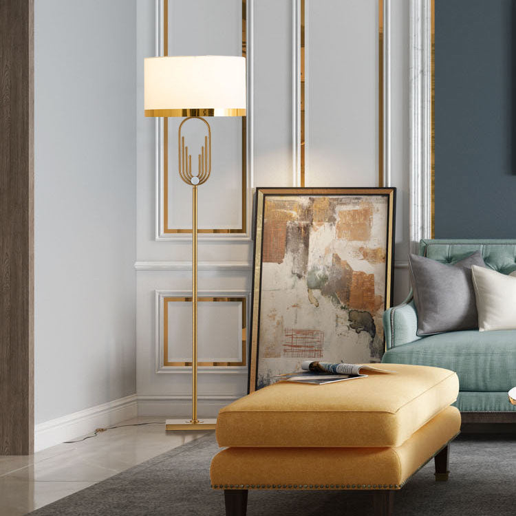 Modern Mid-Century Round Metal Fabric 1-Light Standing Floor Lamp For Living Room